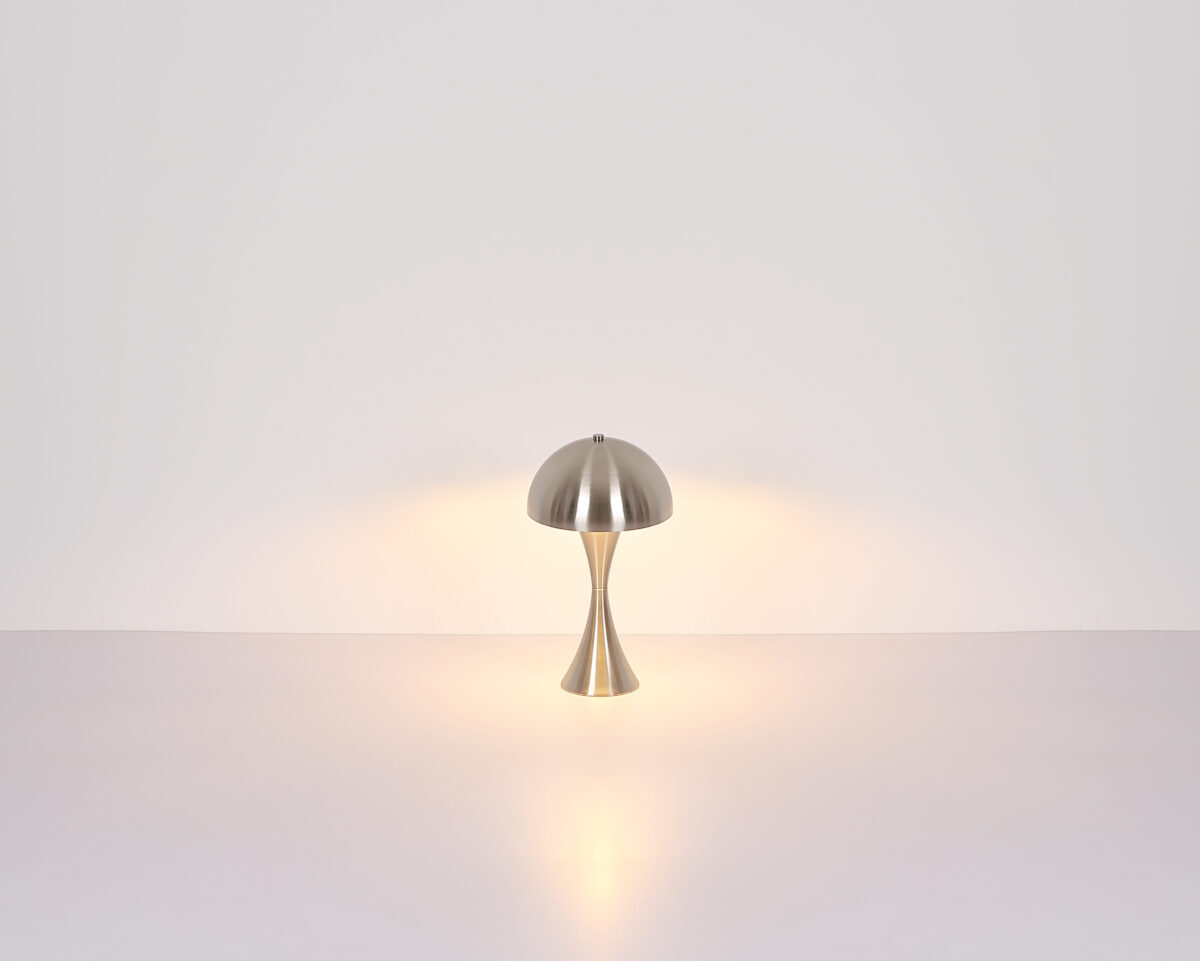 DIMA stolna lampa od mat nikla impresionira svojim jednostavnim, ali elegantnim dizajnom. Metalno kućište i sjenilo od nikla izgledaju uklapaju u moderne interijere. Sa preklopnim prekidačem na kablu, pogodan za E27 sijalice (ekskluzivno).