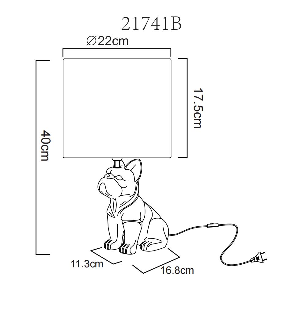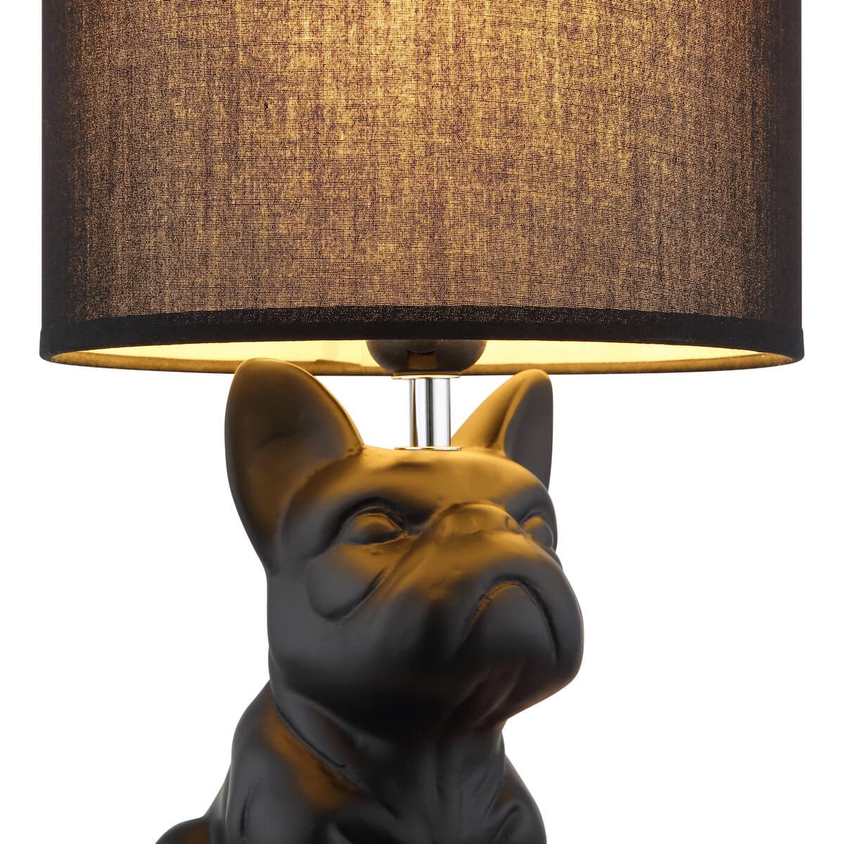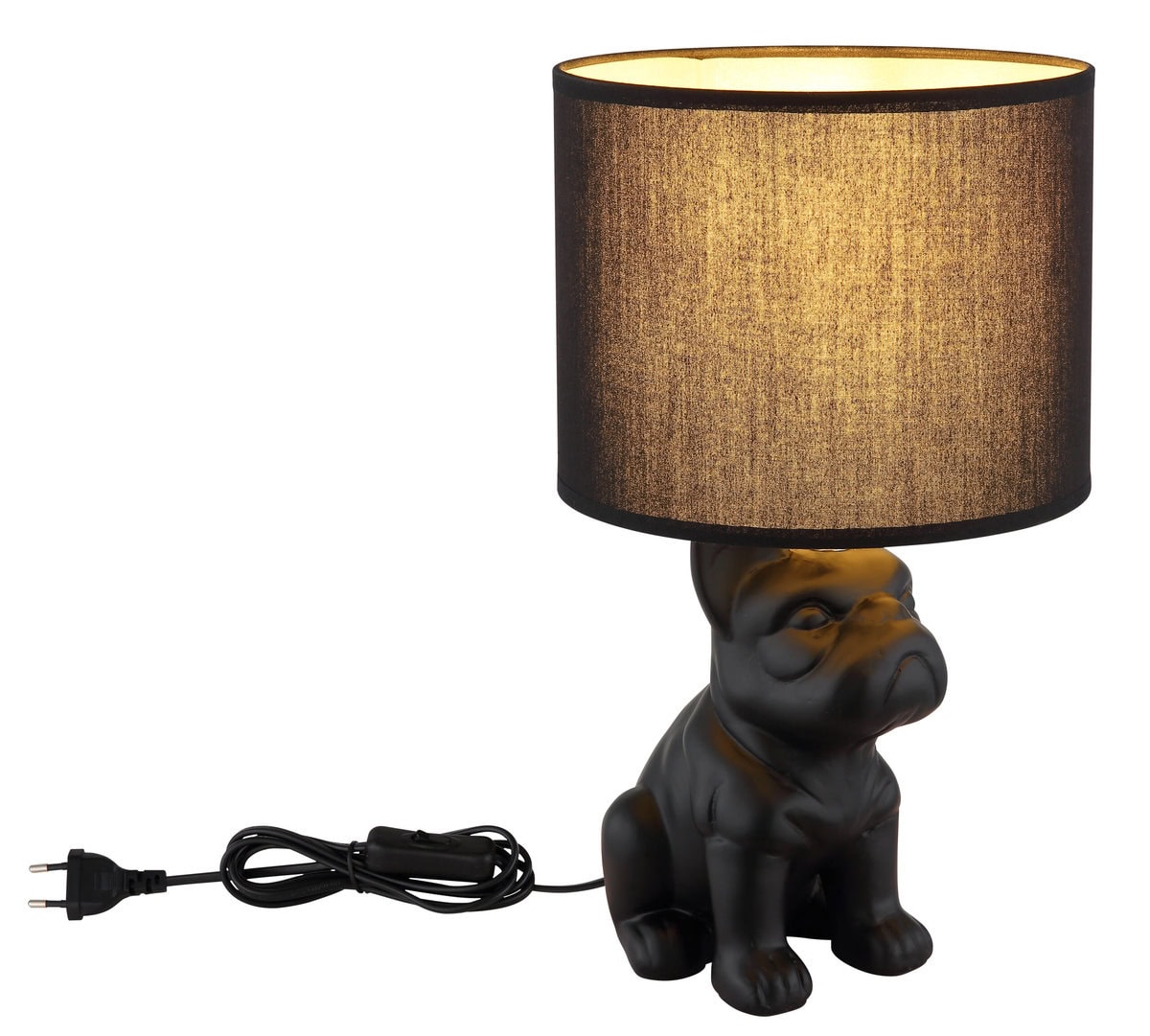 Stolna lampa DOGO kombinuje razigrani šarm sa stilskim dizajnom. Tijelo, u obliku sjedećeg francuskog buldoga i izrađeno od mat crne keramike, privlači pažnju i dodaje poseban štih svakoj prostoriji. Okrugla, crna sjenilo od tkanine stvara ugodno prigušenu svjetlosnu atmosferu i naglašava elegantan izgled lampe. Bilo na noćnom ormariću, u dnevnoj sobi ili u ulazu, DOGO nije samo izvor svjetlosti već i dekorativni element. Opremljen preklopnim prekidačem na kablu, lampa se može lako uključiti i isključiti. Opremljen je sijalicom E27 (nije uključena), što vam omogućava da individualno prilagodite boju i intenzitet svjetla. DOGO u vaš dom unosi životinjski šarm i elegantnu udobnost.