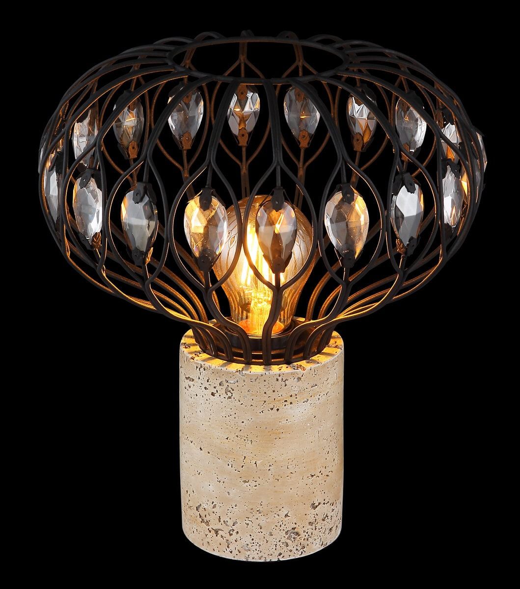 Stolna lampa DORTHY TRAVERTINE STEIN GREY unosi elegantan vintage šarm na bilo koji ormarić, noćni ormarić ili policu. Svojim okruglim dizajnom i prečnikom sjenila od 250 mm, skladno se uklapa u širok izbor stilova opremanja. Čvrsto kućište napravljeno od pravog travertina u sivoj boji daje lampi elegantan, prirodan izgled. Okrugla nijansa od mat crnog metala ukrašena je visokokvalitetnim kristalima K5 u dimljenim i jasnim bojama – za blistave svjetlosne akcente i atmosferski ambijent. Opremljen E27 grlom (osim sijalica), izvor svjetlosti se može individualno podesiti. Praktičan prekidač na kablu osigurava jednostavan rad. Bilo kao moderno dodatno osvjetljenje u dnevnoj sobi ili kao suptilno noćno svjetlo u spavaćoj sobi – DORTHY kombinuje visokokvalitetne materijale, bezvremenski dizajn i funkcionalnu udobnost. Ova stolna lampa pravi je vrhunac za ljubitelje klasičnih oblika i prirodne elegancije