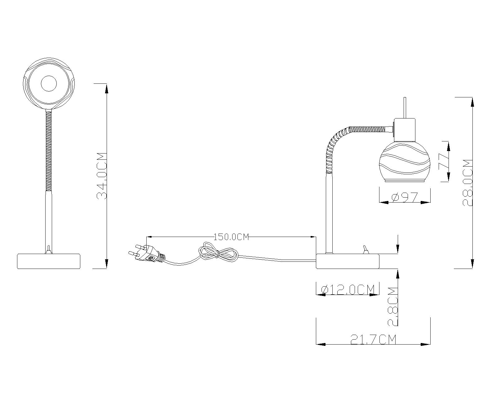 Ova stolna lampa modernog izgleda od nikla sa satenskom staklenom kuglom kao sjenilom lako se prilagođava brojnim stilovima opremanja. Kao rasvjeta koriste se LED diode koje su već uključene u obim isporuke. LED diode su izuzetno ekonomične i izdržljive i stoga odlična investicija. Zahvaljujući flexo elementu, ovaj model se može podesiti prema individualnim potrebama. Rukovanje je vrlo jednostavno pomoću prekidača za uključivanje/isključivanje.