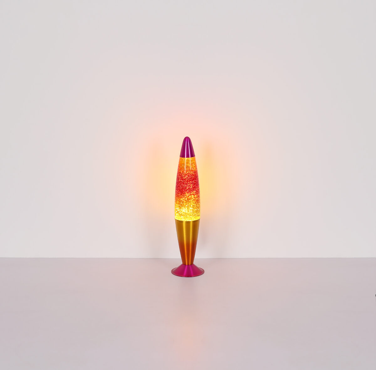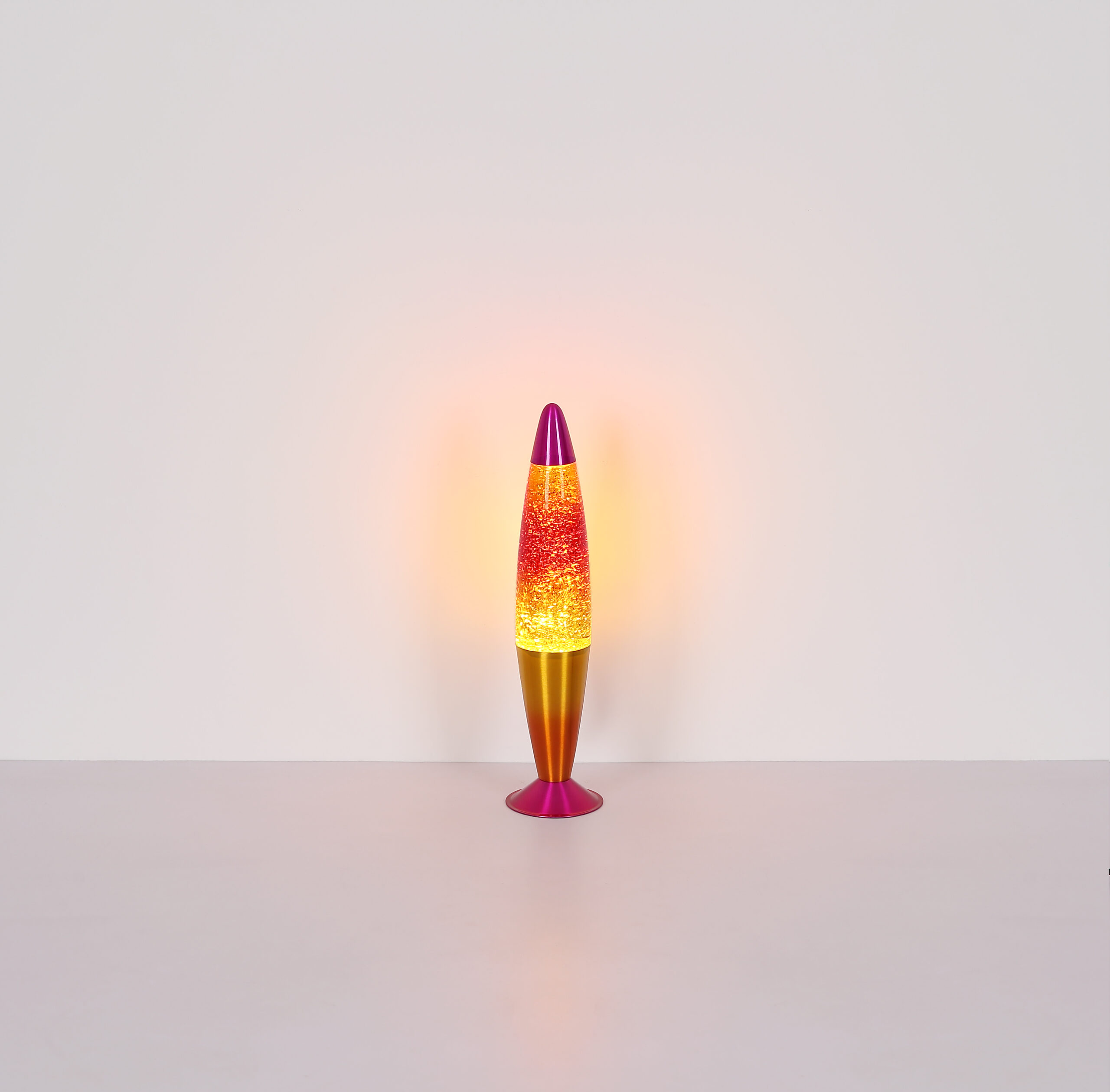ETNA stolna lampa inspirira svojim izvanrednim dizajnom rakete i šarenim akcentima. Kućište izrađeno od raznobojnog aluminijuma u kombinaciji sa žuto-narandžastom staklenom nijansom čini ga pravim privlačnim za oči. Sa prečnikom od 97 mm i praktičnim prekidačem na kablu, jednostavan je za upotrebu. Integrirana svjetlucava lampa uvjerava prozirnom tekućinom i srebrnim aluminijskim šljokicama, koje stvaraju impresivne efekte kada je osvijetljena. Savršen za dječje sobe ili kreativne kutke, ETNA unosi svjetlost i boje u svaku prostoriju. Ova stolna lampa kombinuje funkcionalno osvetljenje sa veselim dizajnom koji podstiče maštu i stvara živu atmosferu.