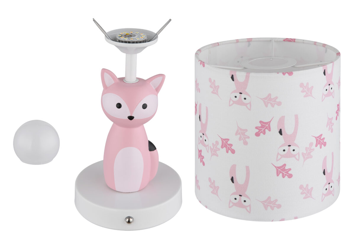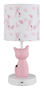 Stona lampa FOXY donosi razigrani šarm i modernu funkcionalnost u svaku prostoriju. Upadljivo postolje u obliku lisice, izrađeno od ružičaste keramike, daje ovoj lampi jedinstven karakter. Cilindrična platnena nijansa u roze i bijeloj boji zaokružuje živahan dizajn i osigurava meku, ravnomjernu distribuciju svjetlosti. Sa prečnikom od 150 mm, lampa FOXY je idealna za noćne ormariće ili male bočne stolove. Opremljen LED diodom i beskonačnim dimerom na dodir, svjetlina se može podesiti po želji. Temperatura boje može se podesiti između 3000 K i 6000 K, a zahvaljujući funkciji fiksiranja boje, željene postavke svjetla su sačuvane. Svjetlo također ima praktičnu funkciju za uključivanje/isključivanje na dodir i USB kabel za punjenje. Sa svojim IP41 certifikatom, također je robustan i izdržljiv. Stolna lampa FOXY kombinuje jedinstven dizajn sa visokom funkcionalnošću – savršena za svaki moderan dom.