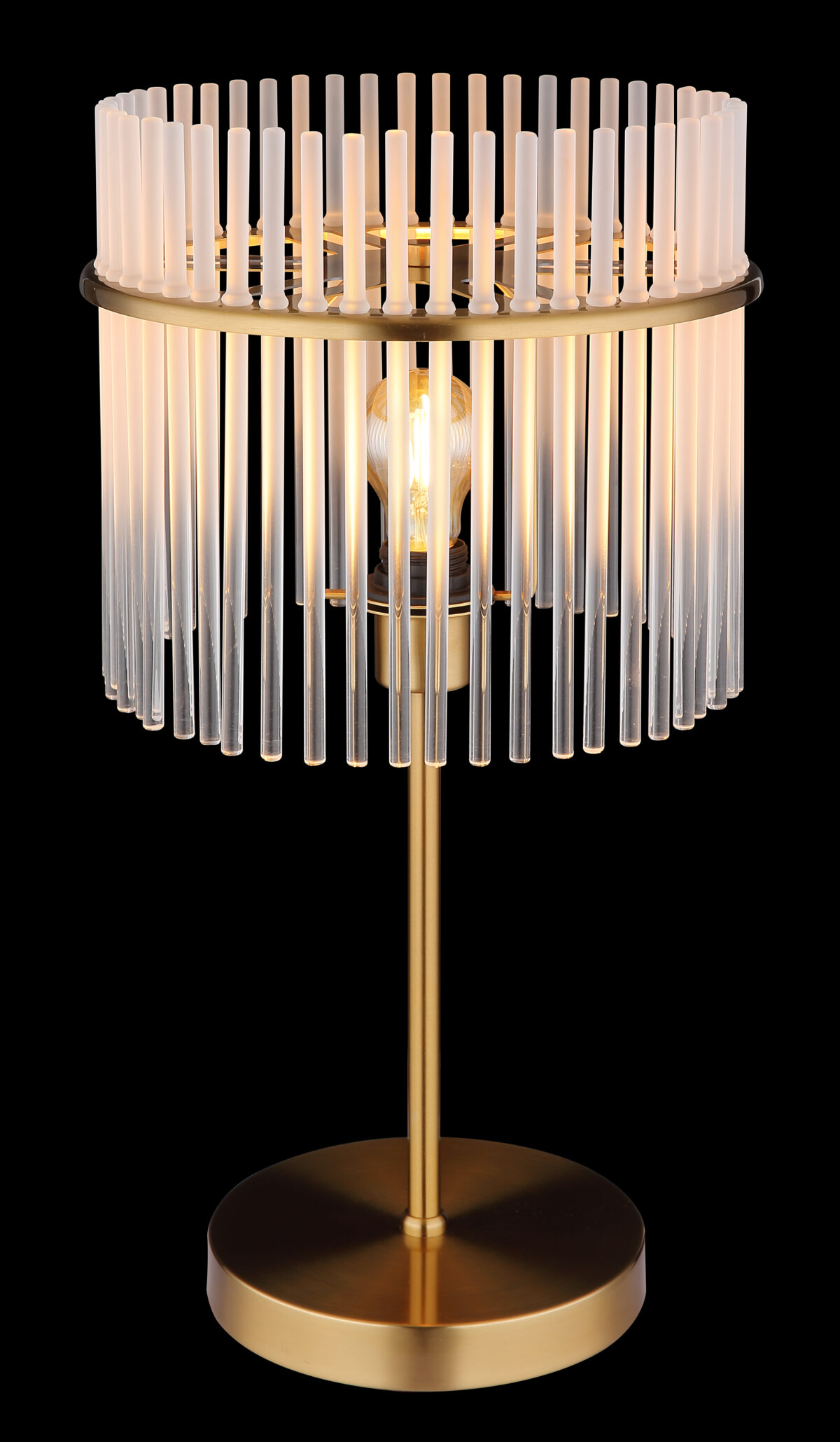 Stolna lampa GORLEY kombinuje elegantan dizajn sa funkcionalnom sofisticiranošću. Njegovo okruglo tijelo izrađeno od mat metala zlatne boje podržava jednako okruglu nijansu opal bijelih i prozirnih staklenih šipki, koje su vješto i nježno raspoređene. To stvara ugodnu igru svjetla i toplu atmosferu u prostoriji. Stolna lampa GORLEY savršena je kao elegantan rasvjetni element za stolove, noćne ormariće ili konzole u dnevnim sobama, spavaćim sobama ili kancelarijama. Preklopni prekidač na kablu omogućava praktičan rad i čini svetlo posebno jednostavnim za korišćenje. Zahvaljujući visokokvalitetnom materijalu i dobro osmišljenom dizajnu, stolna lampa GORLEY se neprimjetno uklapa u moderne stilove opremanja i dodaje elegantan štih svakoj prostoriji. Nije samo funkcionalan, već i dekorativni dodatak koji oplemenjuje prostoriju i obogaćuje ambijent.