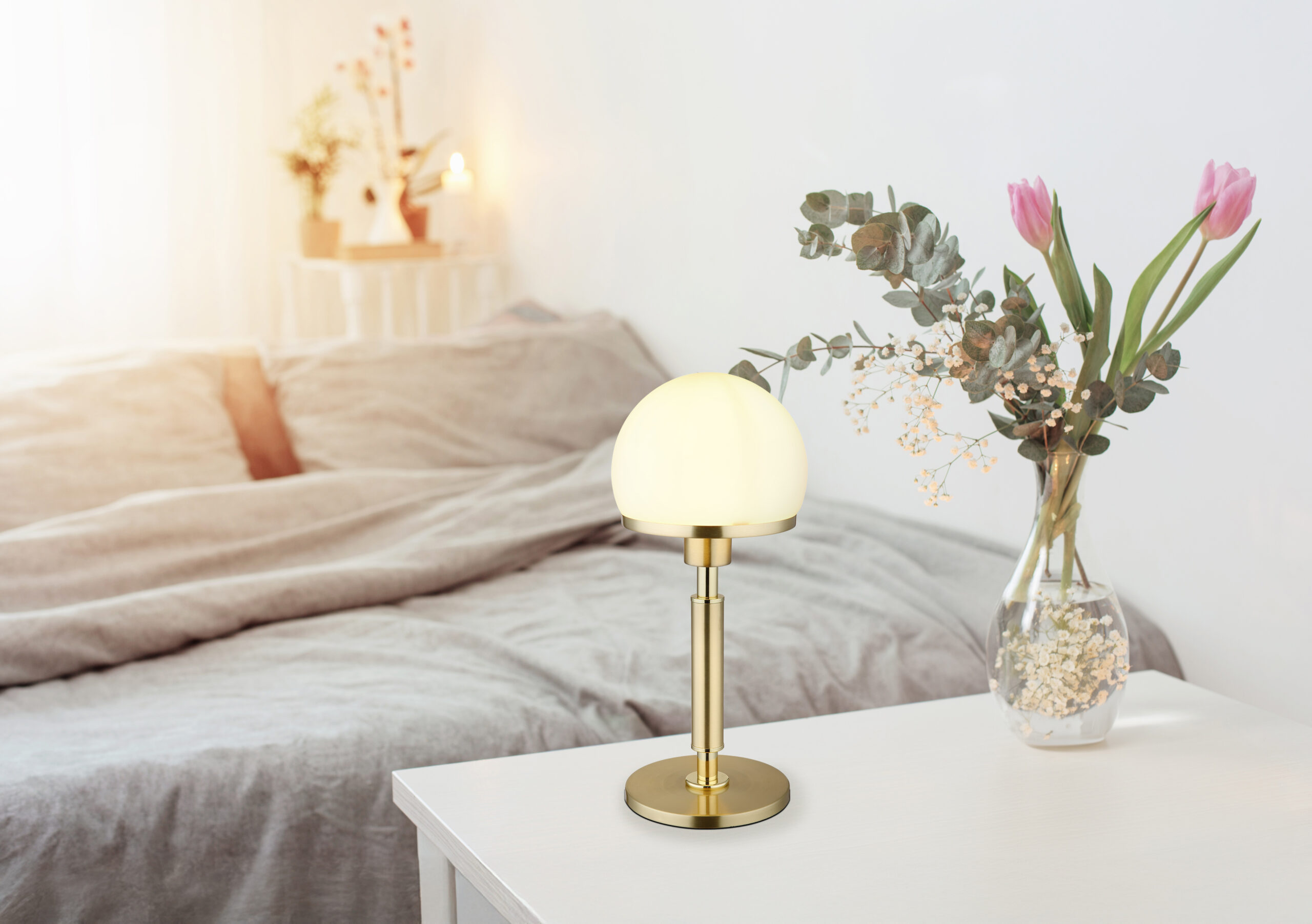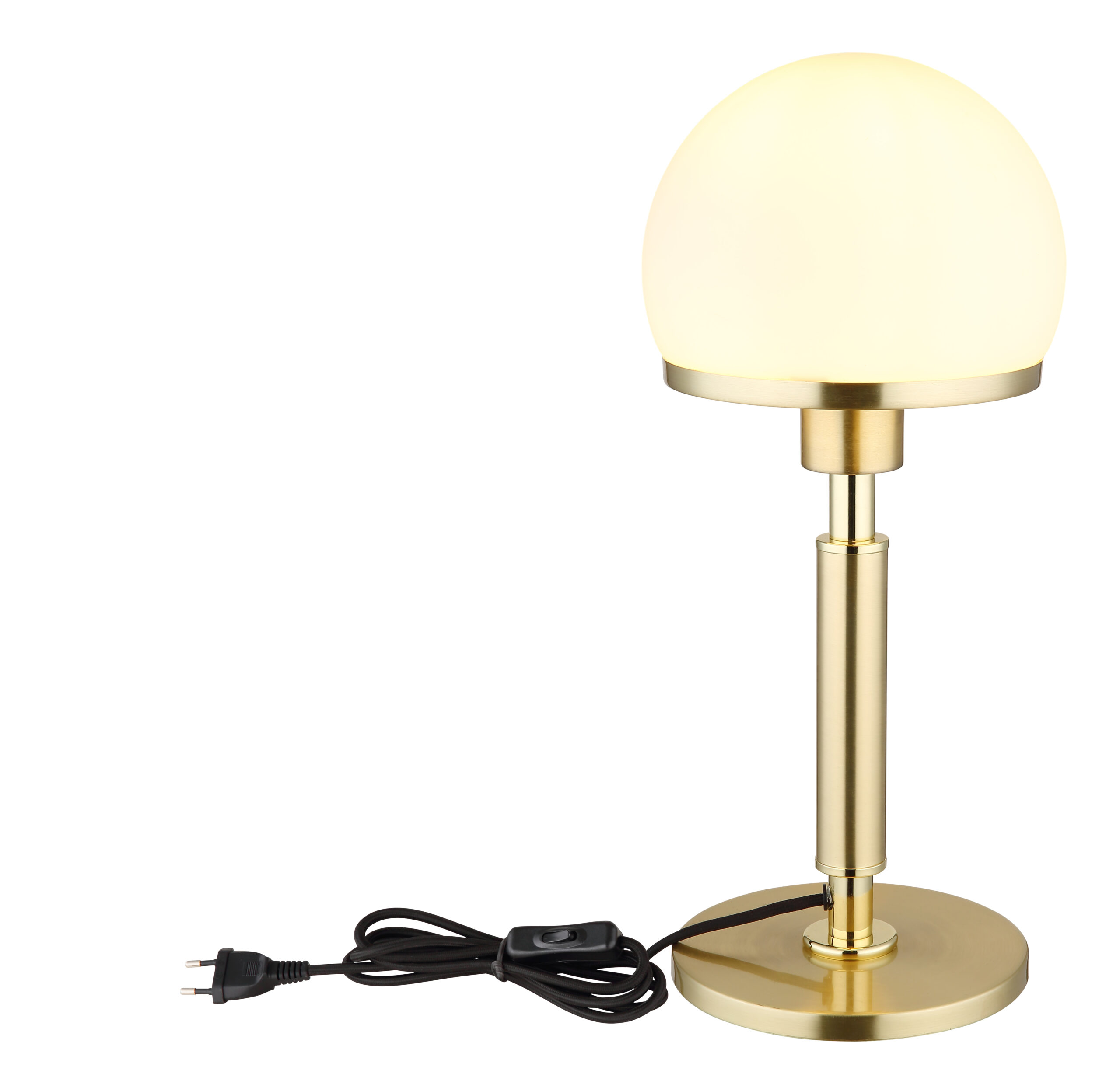 Klasična stolna lampa s polukružnim sjenilom i prozirnim staklenim postoljem je bezvremenski vrhunac u svakom interijeru. Kućište od mat metala boje mesinga daje lampi plemenit i topao izgled. Sjenilo od prozirnog stakla i baza od opal stakla pružaju ugodnu igru svjetla. Sa prečnikom od 180 mm i snagom od 40 W, stona lampa nudi svetlo i udobno osvetljenje. Utičnica E27 omogućava korištenje različitih izvora svjetlosti prema individualnim željama. Praktičan prekidač na kablu olakšava rukovanje svetiljkom. Idealna za one koji cijene klasični dizajn s dozom elegancije, ova stolna lampa stvara atmosfersku atmosferu u svakoj prostoriji.