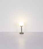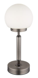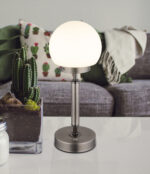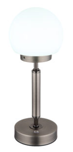 Osvijetlite svoje sobe sa stolnom lampom HAKU u elegantnom dizajnu. Njegov polukružni sjenilo od opal stakla daje meko svjetlo, podržano robusnom metalnom bazom u antracit mat i sjaju. Ova stolna lampa nudi beskonačni dimer za individualne postavke svjetline i memorijsku funkciju za spremanje željenih postavki. Sa mehanizmom za uključivanje/isključivanje dodirom, rad je intuitivan. Svetiljka se može prigušiti i omogućava podešavanje temperature boje od 2700 K do 4000 K za željeni ambijent. Uključen je USB kabl za punjenje za punjenje punjive baterije u roku od oko 4 sata, uz uključeno svjetlo tokom punjenja. HAKU stolna lampa ima snagu od 160 lumena i pruža do 6 sati ugodnog svjetla.