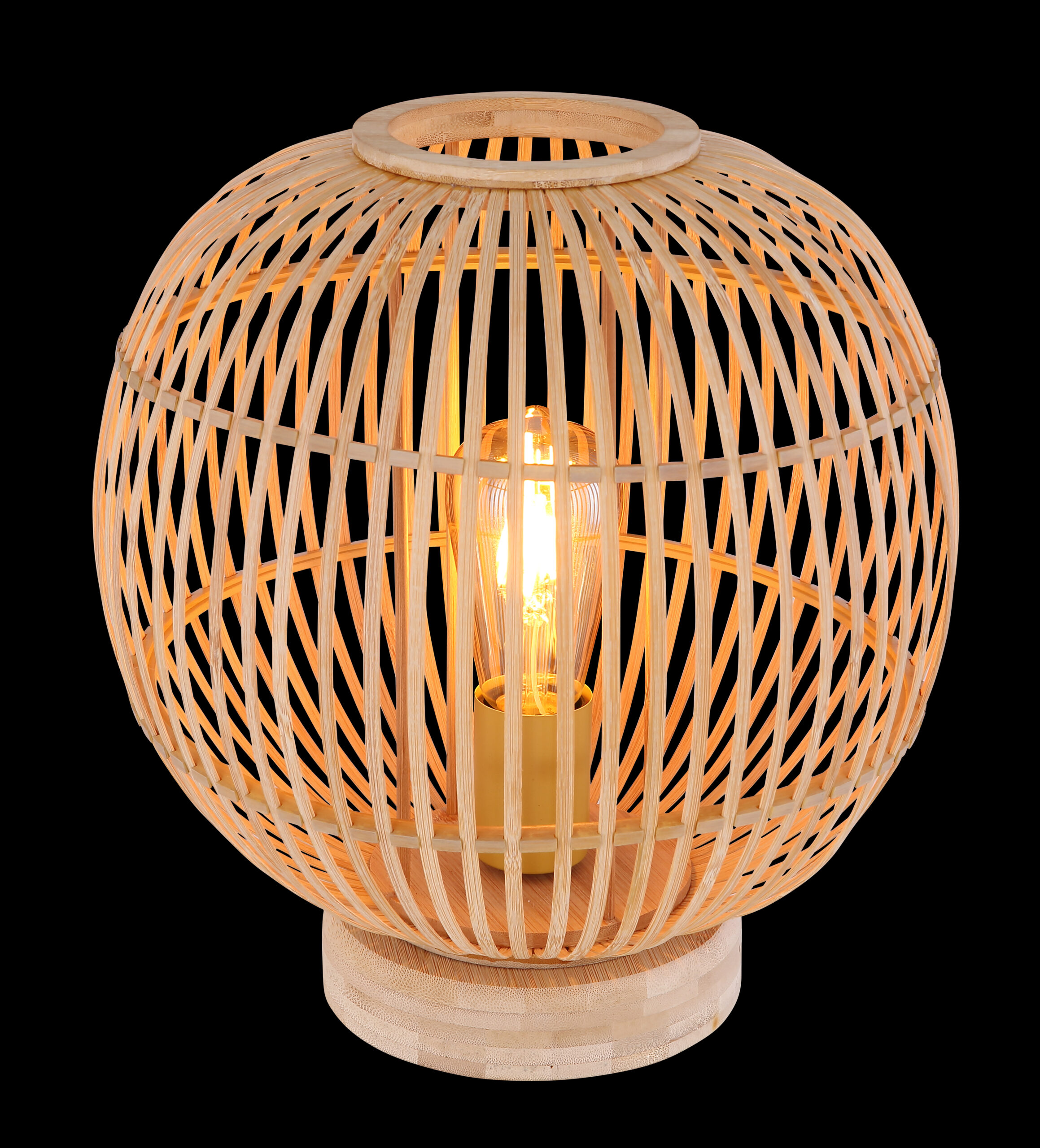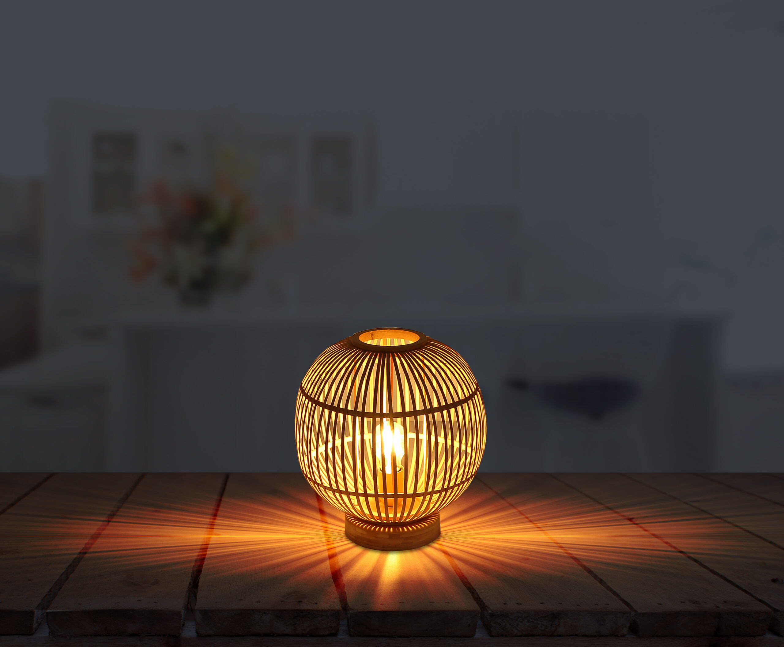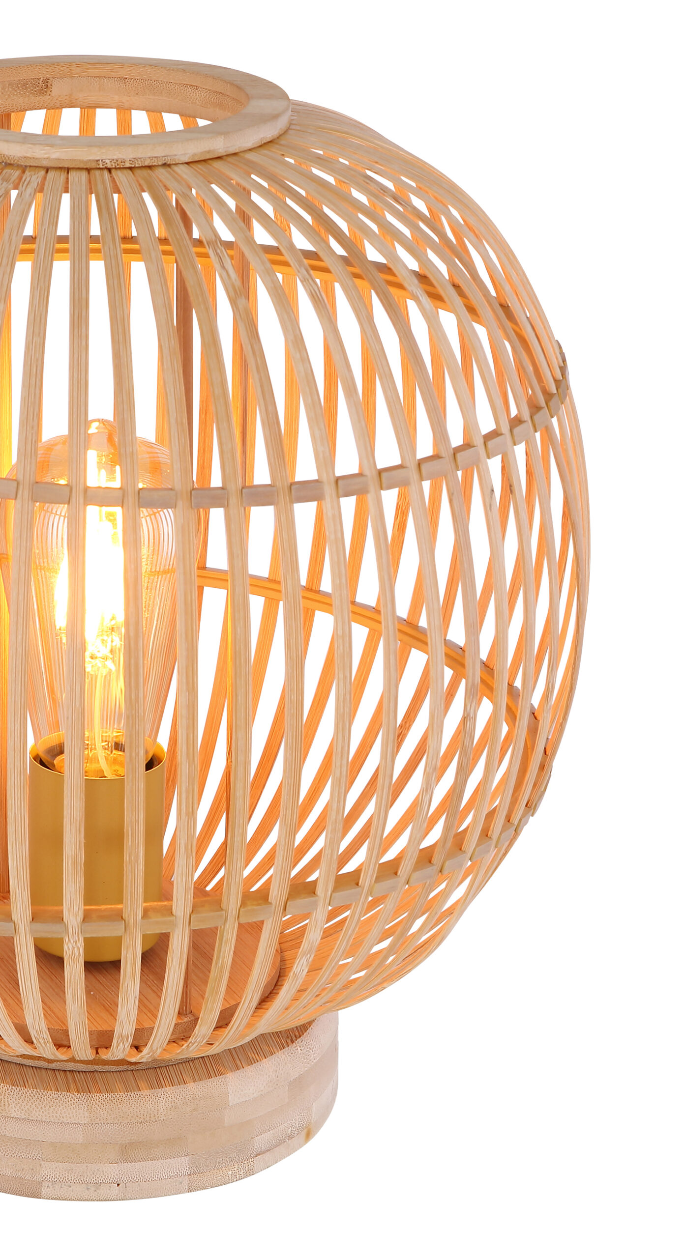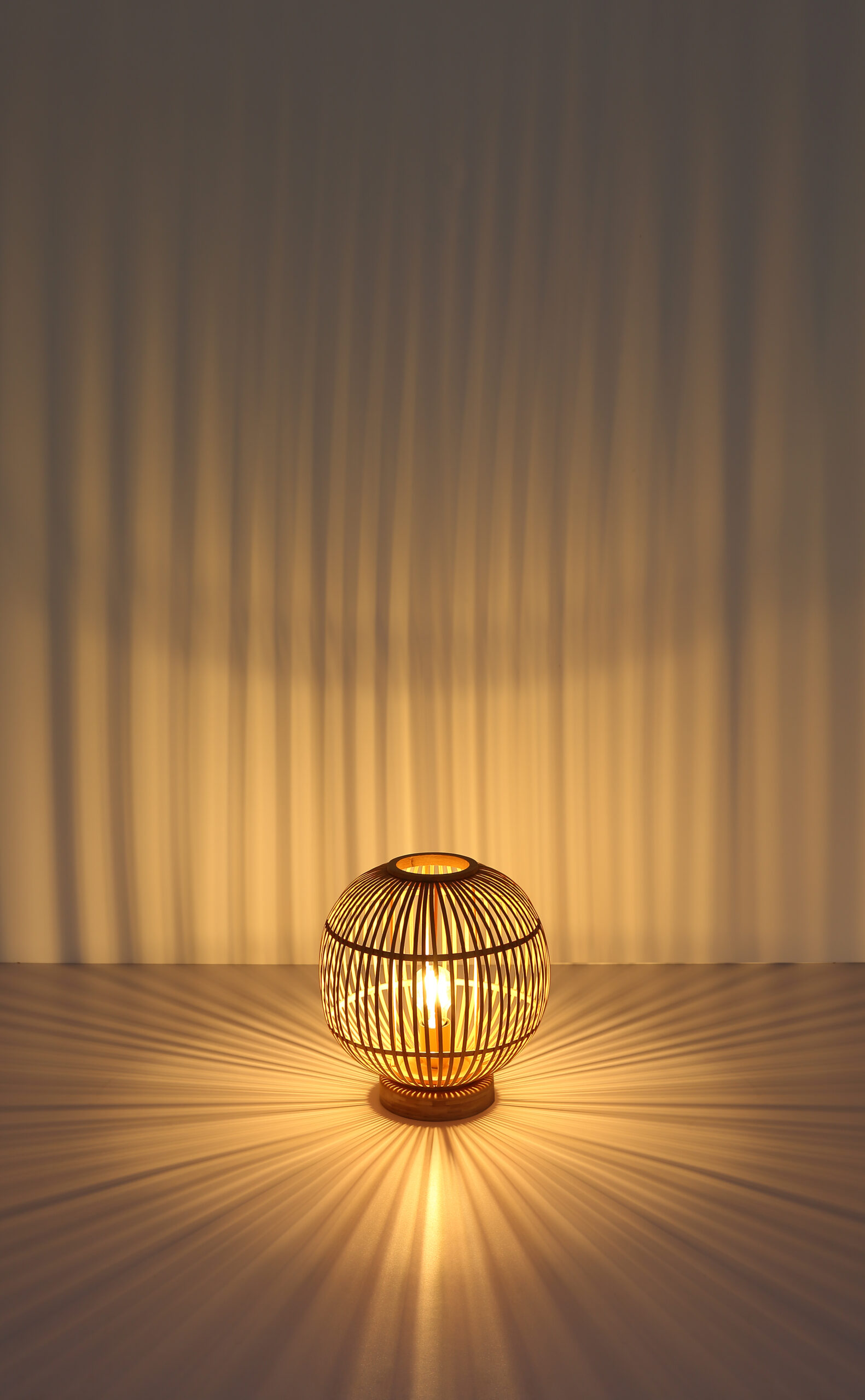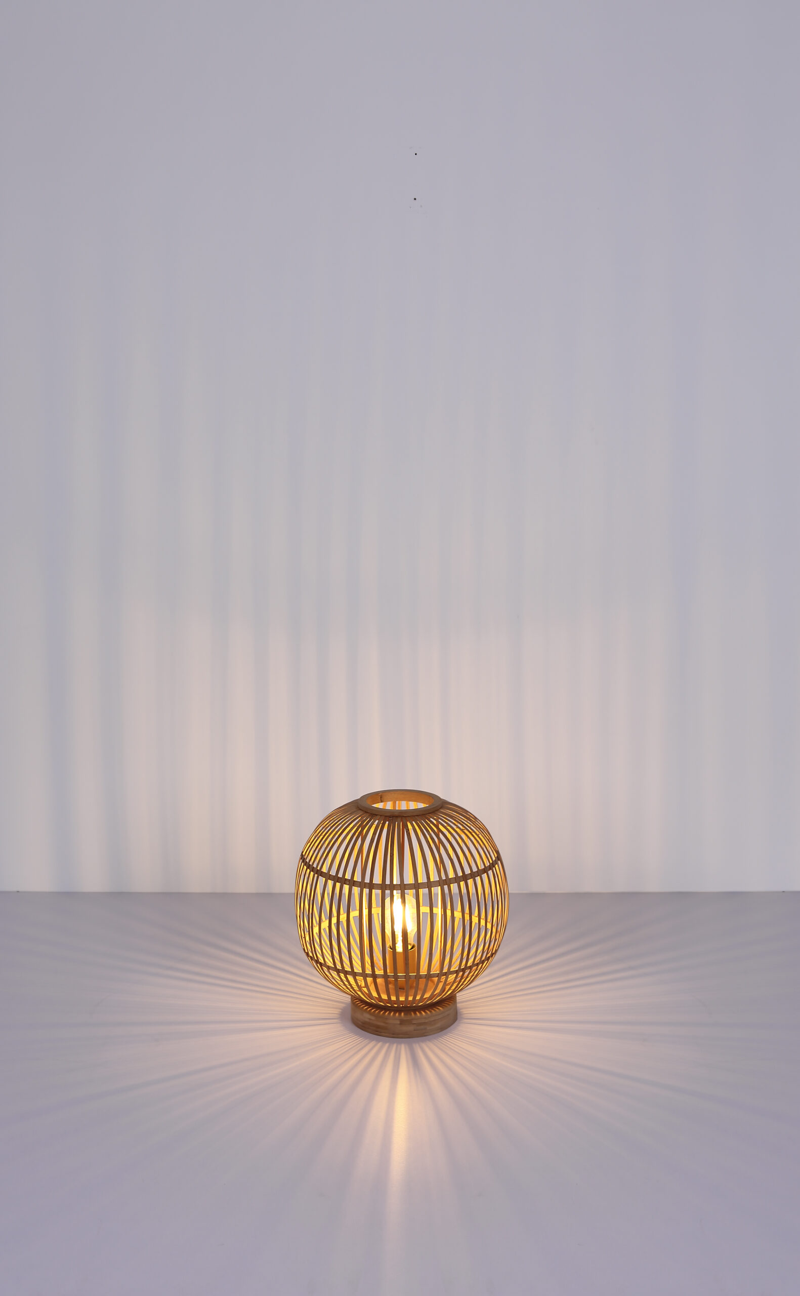 Ova stolna lampa sija u mekom svjetlu i na taj način osigurava opuštajući osjećaj blagostanja u vašoj sobi. Sijalica se prodaje zasebno. Vidljiva je sijalica E27, što omogućava alternativno korištenje ukrasne sijalice. Preporučujemo korištenje LED žarulje za još veću održivost. Sa prečnikom od 30 cm, ova lampa od bambusa ukrašava svaku prostoriju na veoma poseban način.