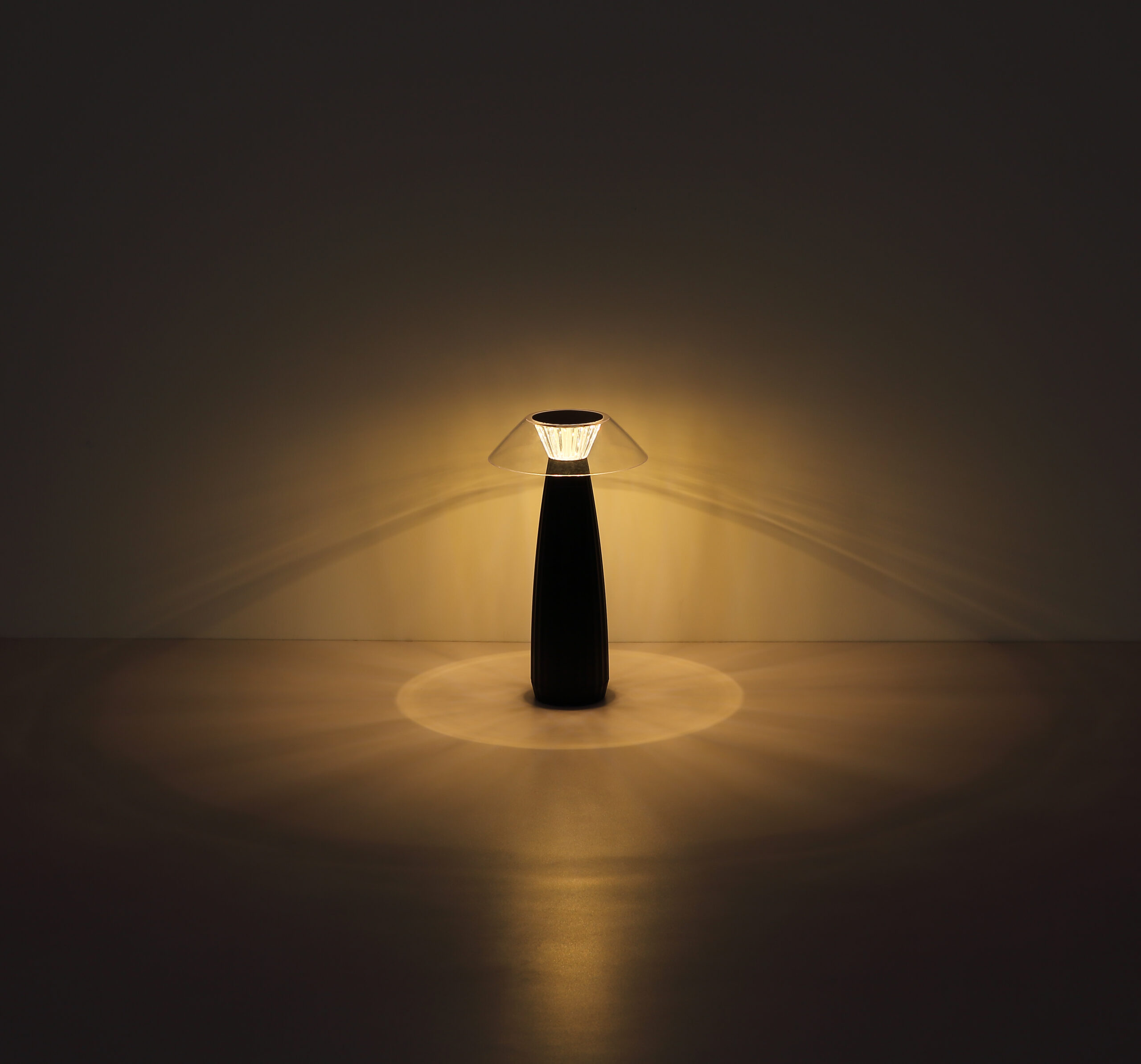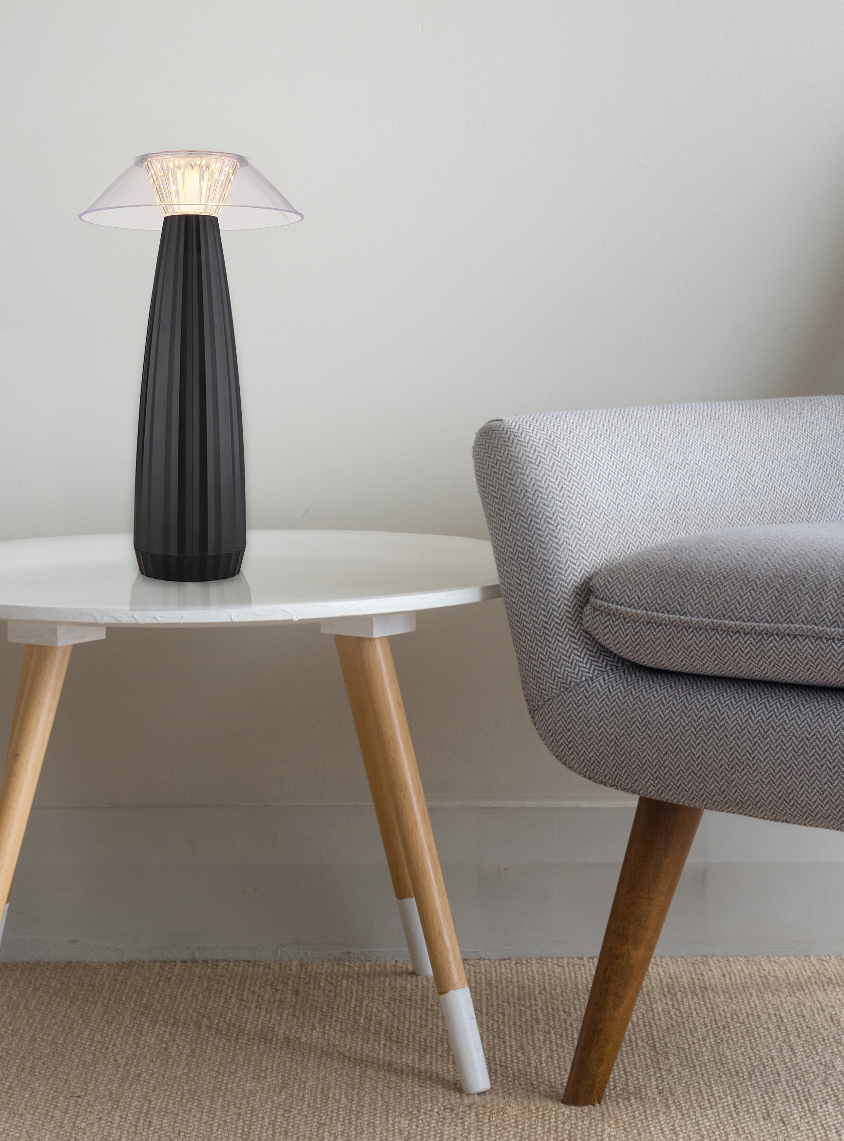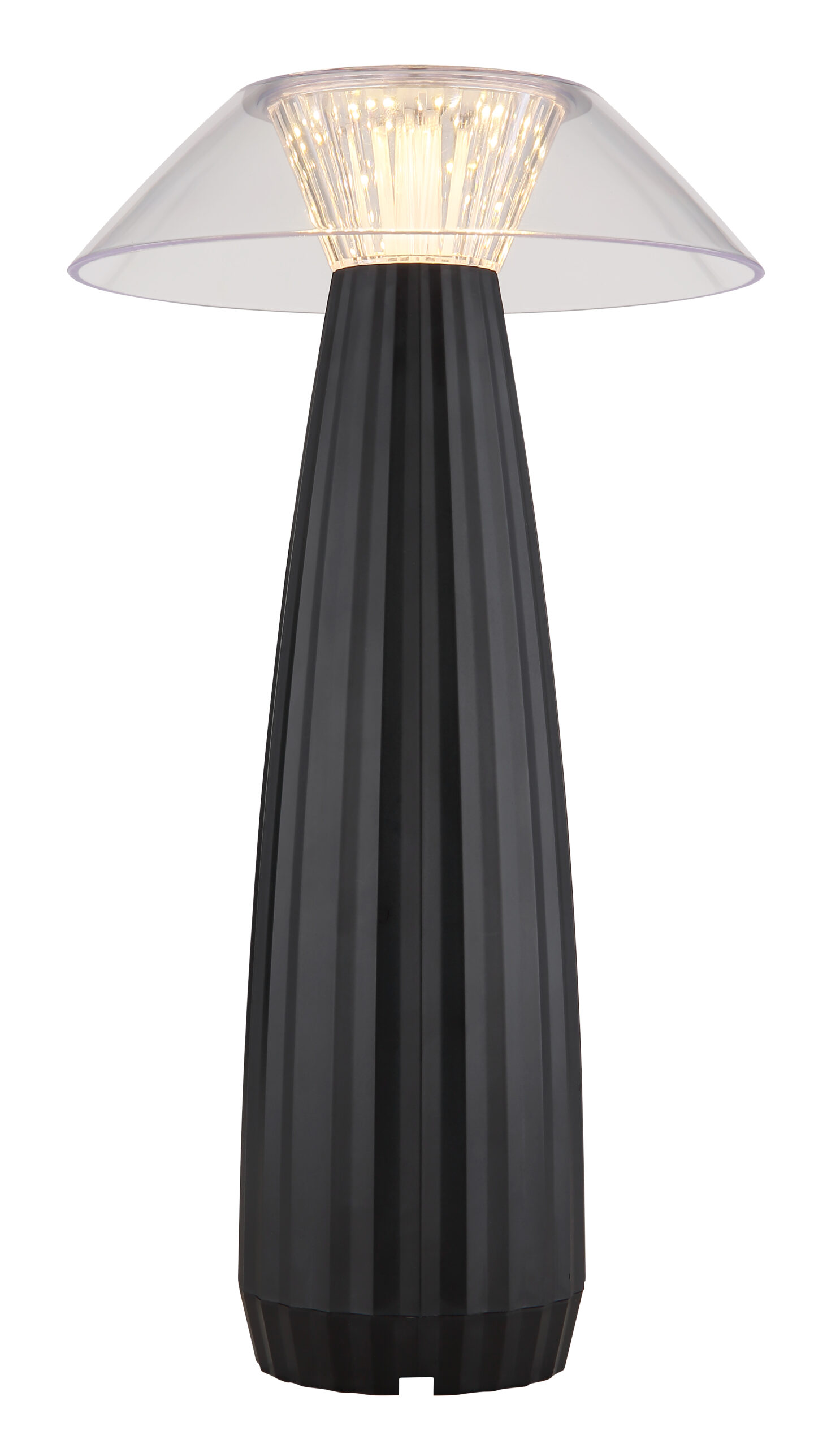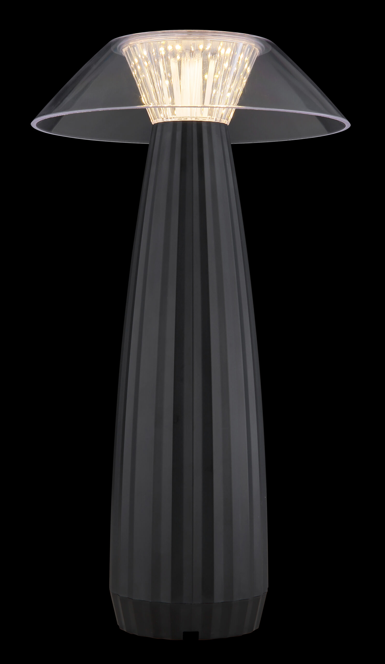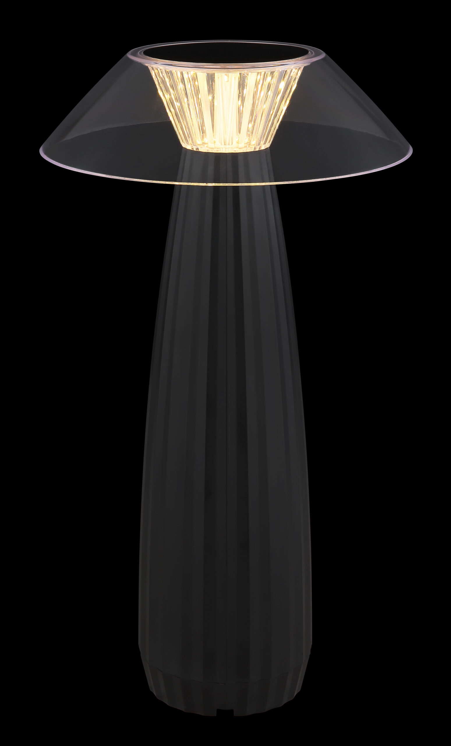 Elegantna stolna lampa ILLUMI od mat crne plastike i prozirne plastike uvjerava svojim modernim dizajnom. Sa crnim PVC kablom i praktičnim prekidačem za uključivanje/isključivanje na dodir, osvetljenje se može lako kontrolisati. Stolna lampa se može prigušiti i ima beskonačni dimer za individualna podešavanja svjetline. Baterija (CR18650 1200mAh 3.7V) nudi vrijeme gorenja do 6 sati i može se napuniti za samo oko 4 sata. Svjetlo se ne može koristiti tokom punjenja. Sa LED 1W i izlaznom snagom od 80lm, svetiljka proizvodi prijatno toplo belo svetlo sa temperaturom boje od 3000K. Obim isporuke uključuje USB kabl dužine 154mm, adapter nije dostupan u obimu isporuke.