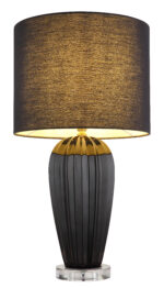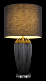 Otkrijte elegantnu stonu lampu IRINA koja se ističe svojim jedinstvenim elementima dizajna. Okrugli oblik i lukovičasta keramička baza s ukrasnim žljebovima rezultiraju jedinstvenim dizajnom koji karakterizira njegova ekskluzivna elegancija. Tijelo je izrađeno od crne keramike, koja ima prozirni akrilni poklopac koji obezbjeđuje hromirani metalni držač. Nijansa od tekstila u crnoj boji stvara harmoničan izgled. Preklopni prekidač na kablu omogućava lako i direktno prebacivanje osvetljenja. IRINA je bezvremensko i elegantno rješenje za vašu rasvjetu koja se prilagođava svakoj dekoraciji. Bilo da se radi o dnevnim sobama, kancelarijama ili prestižnim sobama, IRINA je savršen izbor za one koji traže moderan i elegantan sistem rasvjete.
