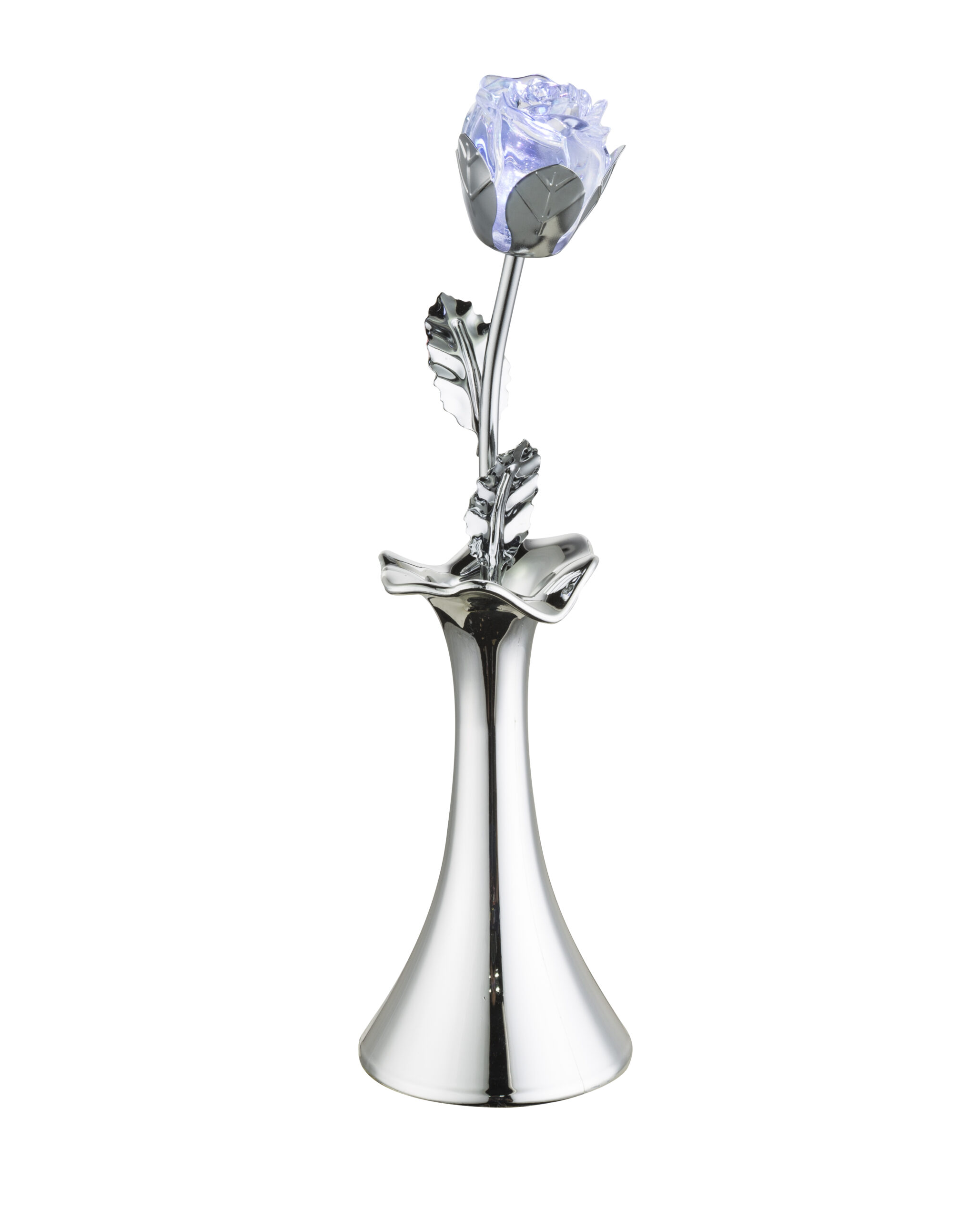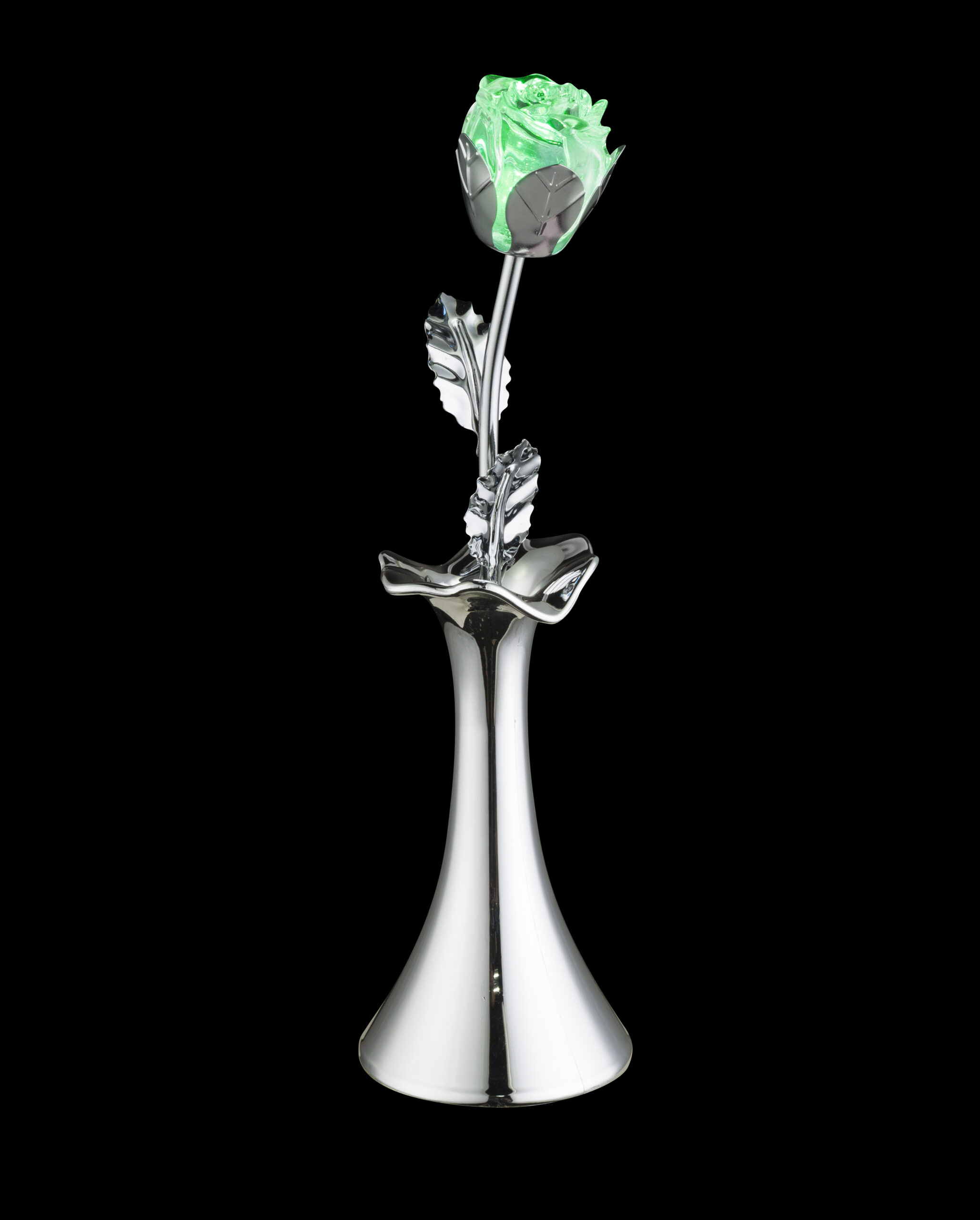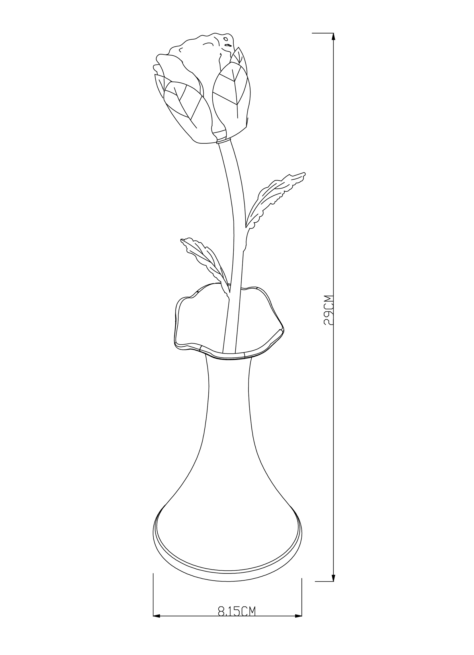 Ova hromirana stolna lampa je zasnovana na vazi sa ružom. Zahvaljujući akrilnom cvijetu, boje dolaze na svoje, a lampa od 30 cm se može uključiti i isključiti prekidačem.