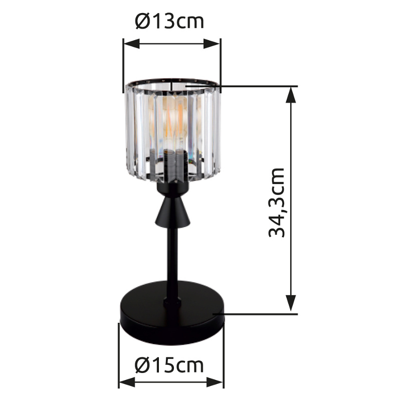 JORDANA je moderna i elegantno dizajnirana stolna lampa koja se ističe okruglim oblikom i jedinstvenim dizajnom cijevi. Jednocevno pravo telo je izrađeno od crnog metala mat boje, dok je sjenilo izrađeno od prozirnih lakiranih akrilnih kristala. Viseća lampa je ostavljena na kablu i može se lako kontrolisati zahvaljujući preklopnom prekidaču na kablu. Prozirni akrilni kristali bacaju toplo i privlačno svjetlo koje zagrijava svaki prostor. Sa prečnikom od 150 mm, JORDANA je savršen ulazak u svet modernih rasvetnih rešenja. Idealan je za svaku prostoriju, bilo da je spavaća soba, trpezarija ili kancelarija. JORDANA je savršena kombinacija funkcije i dizajna koja će sigurno izazvati vaše interesovanje!