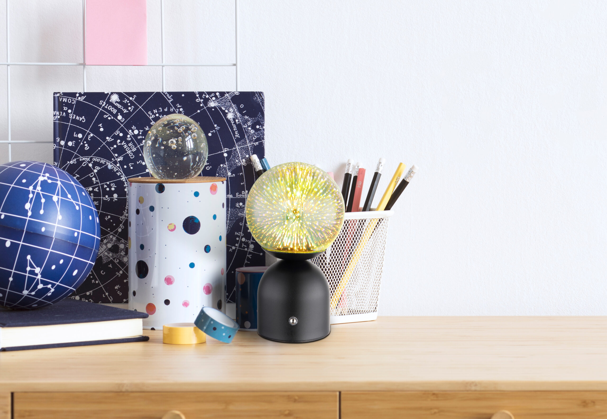 Naša moderna stolna lampa elegantno kombinuje mat crni metal sa jedinstvenim prozirnim staklom sa 3D efektom. Sa praktičnim prekidačem za uključivanje/isključivanje na dodir, možete lako upravljati svetiljkom i individualno podešavati osvetljenost pomoću beskonačnog prigušivača na dodir. Šema boja se može popraviti po želji. Ugrađena CR18650 baterija od 1800 mAh omogućava vrijeme rada do 6 sati i može se napuniti za samo 4 sata. Sa visinom od 210 mm, lampa je prava privlačna za oko na svakom stolu. Velika dužina kabla je 500 mm, a svetiljka ima štedljiv LED sa 2,5 W snage i izlaznom snagom od 22 lm. Takođe nudi tri različite temperature boje (2700/6500/4000K) koje odgovaraju raspoloženju. USB kabl za punjenje je uključen, odgovarajući adapter se mora kupiti posebno.