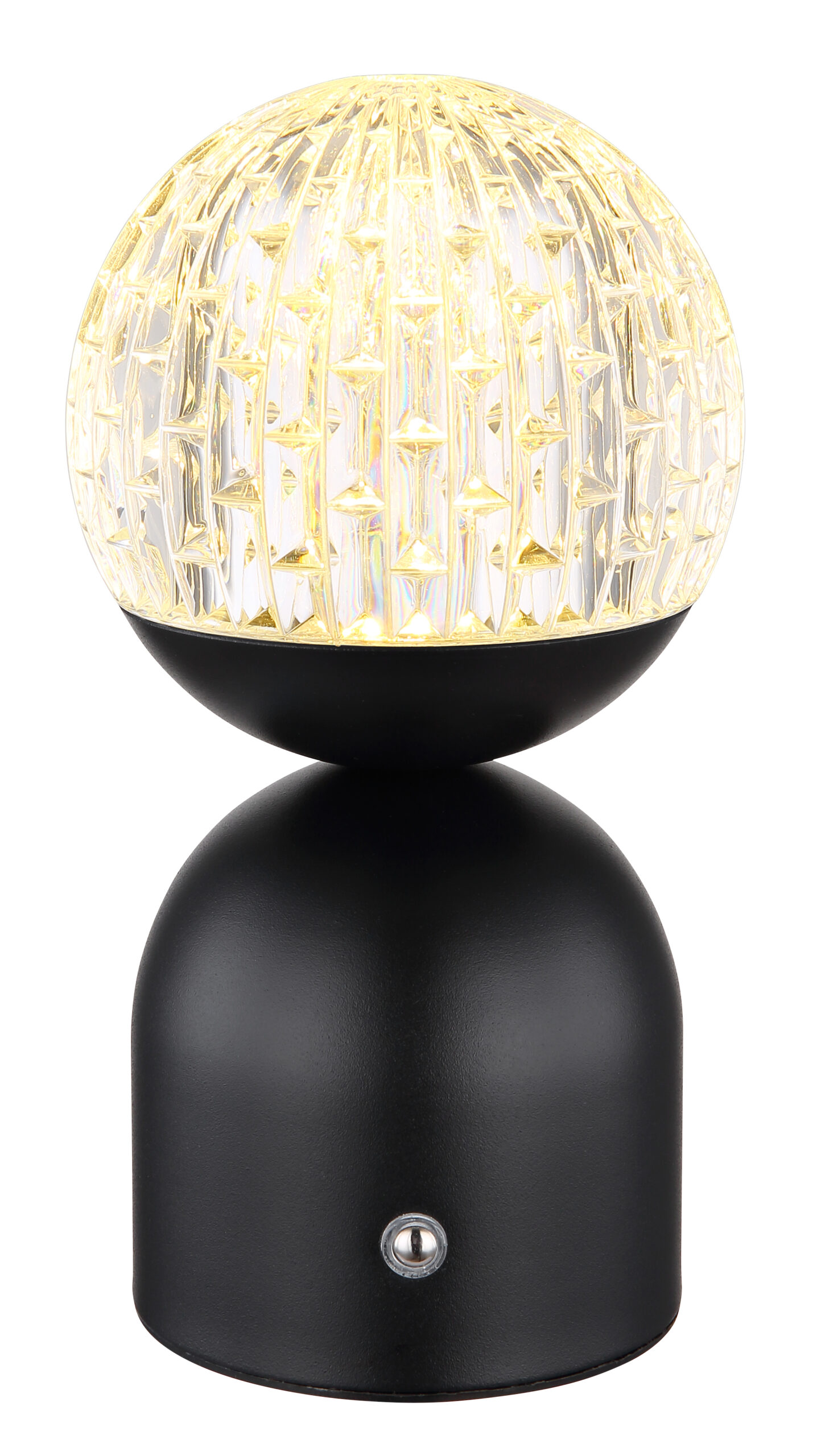 Naša moderna stolna lampa kombinuje crni mat metal i prozirni akril sa blistavim kristalnim efektom i daje svakoj prostoriji stilski ambijent. Pomoću praktičnog prekidača za uključivanje/isključivanje na dodir i beskonačnog dimera na dodir, možete podesiti svjetlinu prema svojim željama. Boje se mogu fiksirati kako bi se stvorila željena atmosfera. Ugrađena CR18650 baterija od 1200 mAh omogućava vrijeme rada do 6 sati i može se napuniti za oko 4 sata. Sa prečnikom od 105 mm, svetiljka se neupadljivo uklapa u vaš enterijer. Kabl od 500 mm pruža fleksibilnost u postavljanju. Svetiljka je opremljena štedljivom LED diodom snage 2,5W i izlaznom snagom od 173lm. Nudi tri različite temperature boje (2700/4000/6500K) za različita raspoloženja osvjetljenja. USB kabl za punjenje je uključen, odgovarajući adapter se mora kupiti posebno.