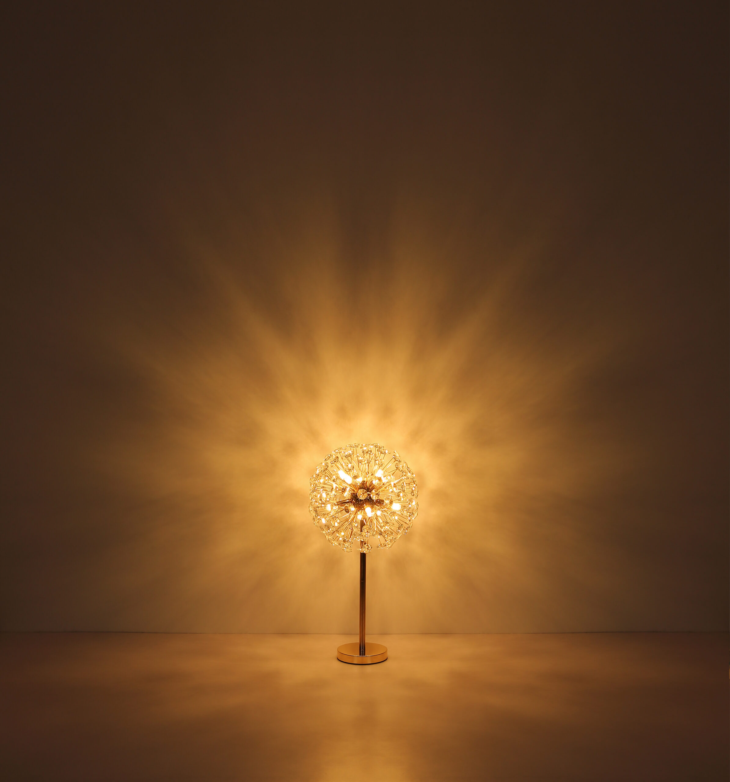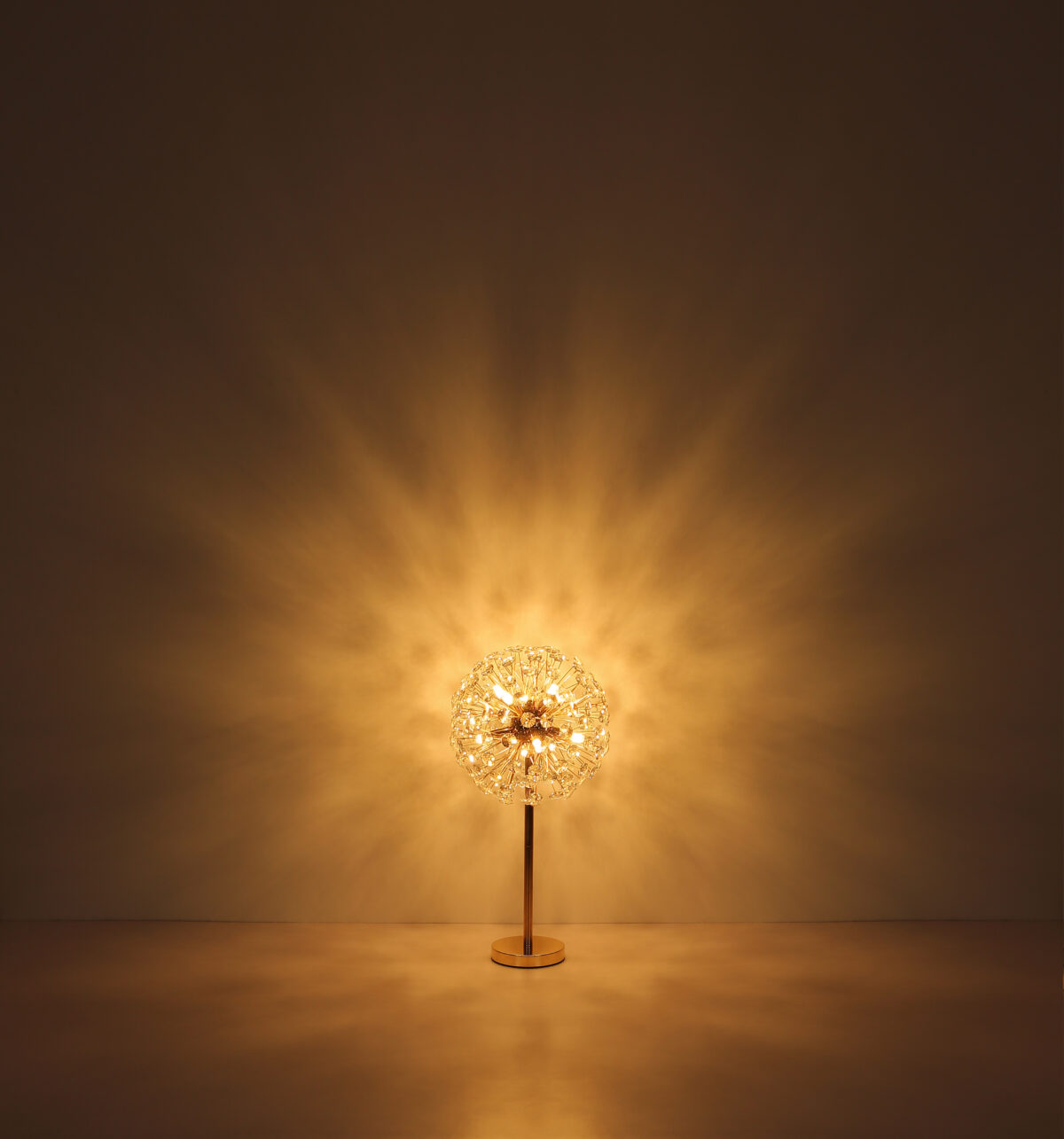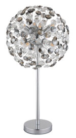 Otkrijte bezvremensku ljepotu okrugle stolne lampe “KATRINA”, koja svojim hromiranim metalnim tijelom i zadimljenim, prozirnim K9 kristalima stvara elegantnu atmosferu. Ovo sjajno dizajnirano rasvjetno tijelo sadrži 8XG9 LED sijalice koje proizvode toplo svjetlo od 3000K i pružaju svjetlinu od 350 lumena. Sjenilo od K9 kristala lomi svjetlost na umjetnički način i osigurava magično raspršivanje svjetlosti u prostoriji. Praktičan prekidač na kablu omogućava praktičan rad. Bilo da se nalazi na noćnom ormariću, u dnevnoj sobi ili na kredencu, stolna lampa “KATRINA” harmonično se uklapa u svaki interijer i daje vašoj sobi glamurozan štih. Savršeno za ljubitelje tradicionalne izrade i bezvremenske elegancije.