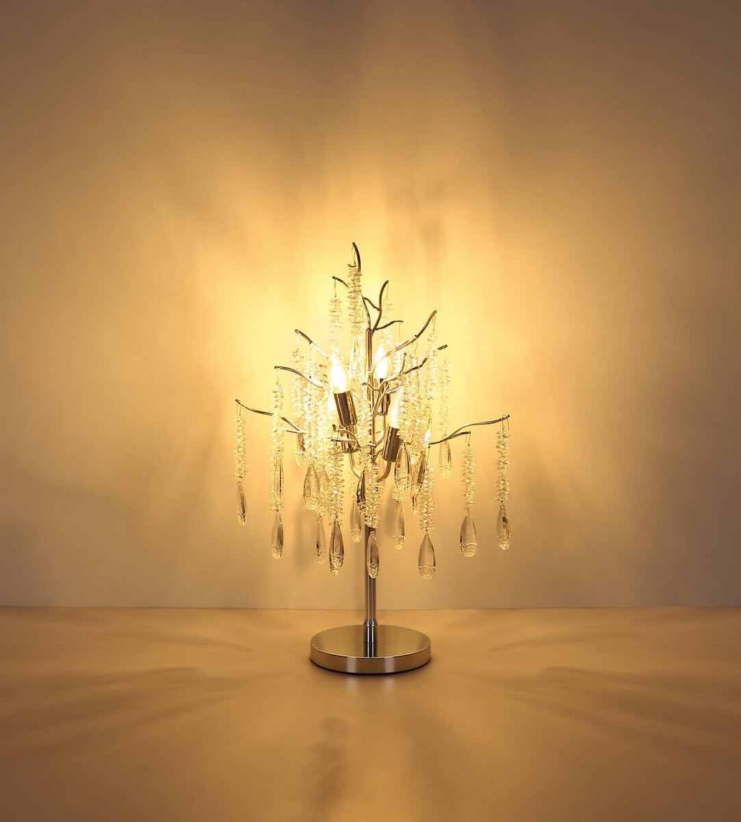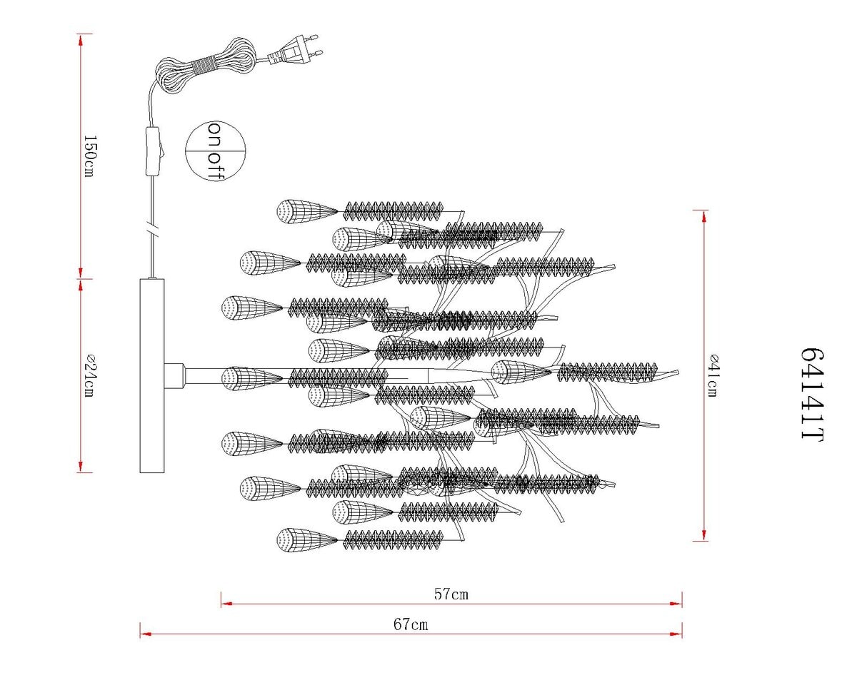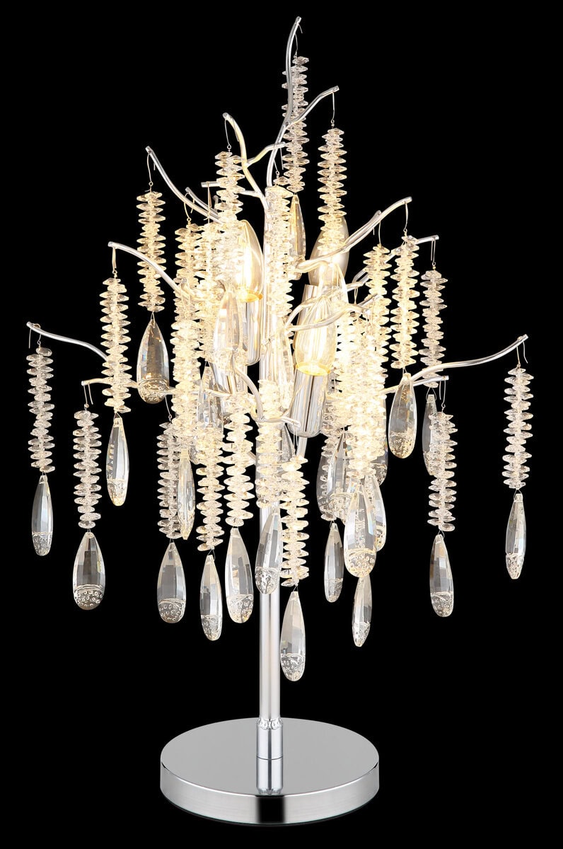 Stolna lampa KINGA impresionira svojim izvanrednim dizajnom, vješto spajajući prirodnu inspiraciju s daškom glamura. Njegovo okruglo tijelo, izrađeno od mat metala srebrne boje, ima nježno grananje koje je ukrašeno prozirnim staklenim kristalima. Ove iskričave kapljice elegantno prelamaju svjetlost. Sa prečnikom od 410 mm, KINGA postaje upečatljiva žarišna tačka na komodi, komodi ili kao dekorativni element u bilo kom životnom prostoru. Integrirani prekidač na kabelu osigurava jednostavan rad. Uz E14 grlo (sijalica nije uključena), možete odabrati izvor svjetlosti—toplo bijelo za ugodan ambijent ili neutralno bijelo za jasnije osvjetljenje. KINGA spaja suvremeni dizajn sa suptilnim luksuzom i savršena je za one koji traže rasvjetu sa prepoznatljivim karakterom.