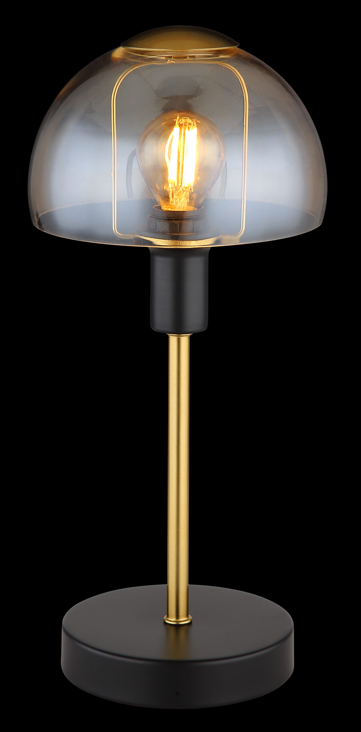 Stolna lampa je izrađena od metala u mat crnoj boji i metala od brušenog zlata i stakla u ćilibaru. Ima crni PVC kabel i opremljen je prekidačem za uključivanje/isključivanje na dodir. Dimenzije su ø: 150mm i H: 320mm, dužina kabla je 1500mm. Za svetiljku je potrebna 1 sijalica E14 maksimalne snage 25W i napona 230V, koja nije uključena. Nadamo se da ćete biti zadovoljni ovom stolnom lampom.