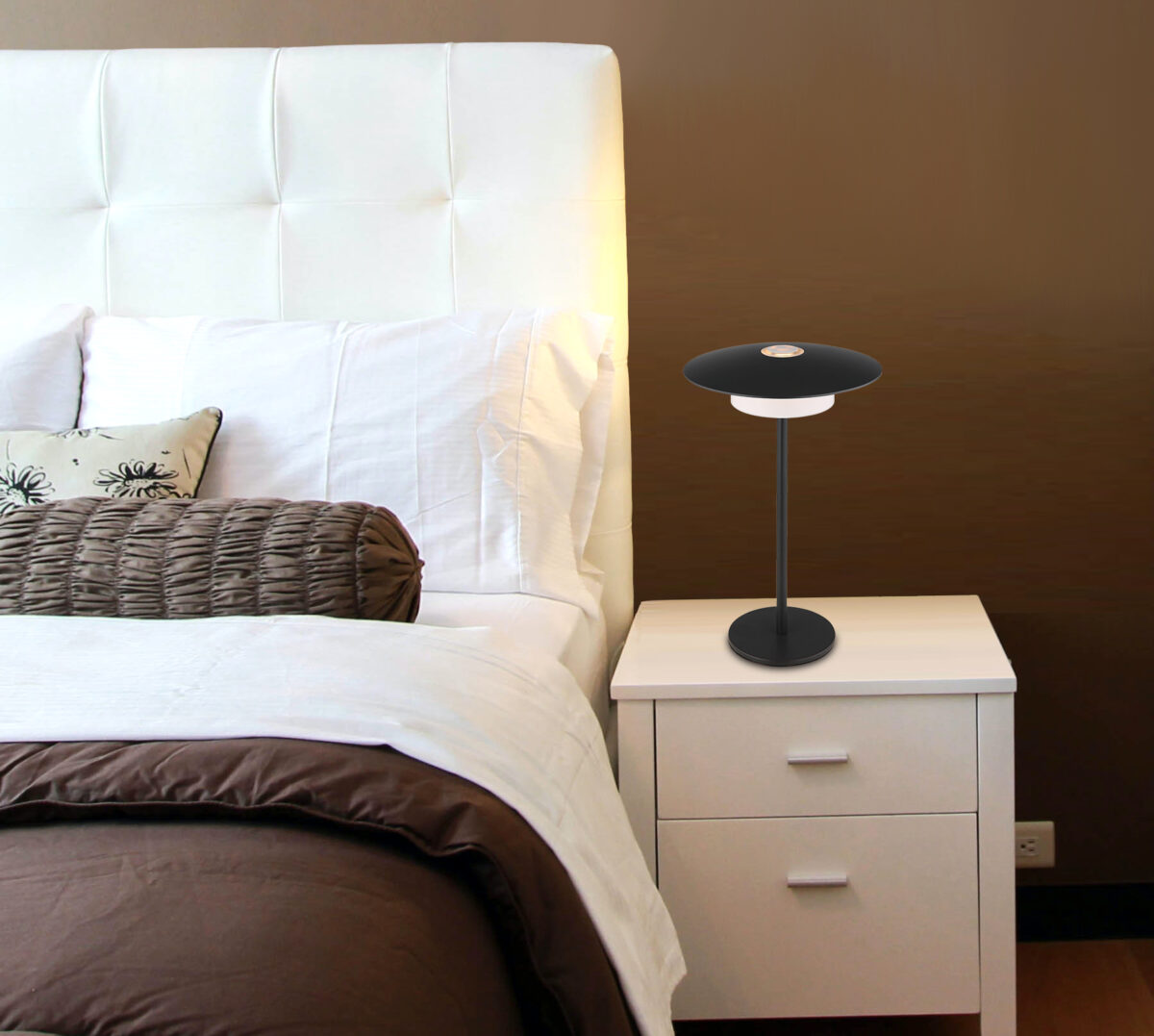 KYLER stolna lampa je elegantno i svestrano rješenje za rasvjetu za vaš dom. Sa svojom ravnom, okruglom bojom i prečnikom od 180 mm, savršeno se uklapa na svaki stol. Mat crno metalno kućište daje lampi moderan i bezvremenski izgled. Sjenilo je izrađeno od crne, mat aluminija i plastike, što lampi daje plemenit izgled. KYLER stolna lampa se može zatamniti i ima beskonačni dimer na dodir, kao i memorijsku funkciju koja čuva željena podešavanja. Sa snagom od 140 lumena i beskonačnim podešavanjem temperature svjetlosti od 1800 K do 3000 K, nudi raznovrsno osvjetljenje za svaku priliku. Lampa je opremljena nosačem za montažu i magnetom za zidnu montažu i ima USB-C priključak za punjenje. Vrijeme punjenja je oko 7 sati, a vrijeme osvjetljenja je oko 25 sati. Sa IP44, pogodan je i za upotrebu na otvorenom.