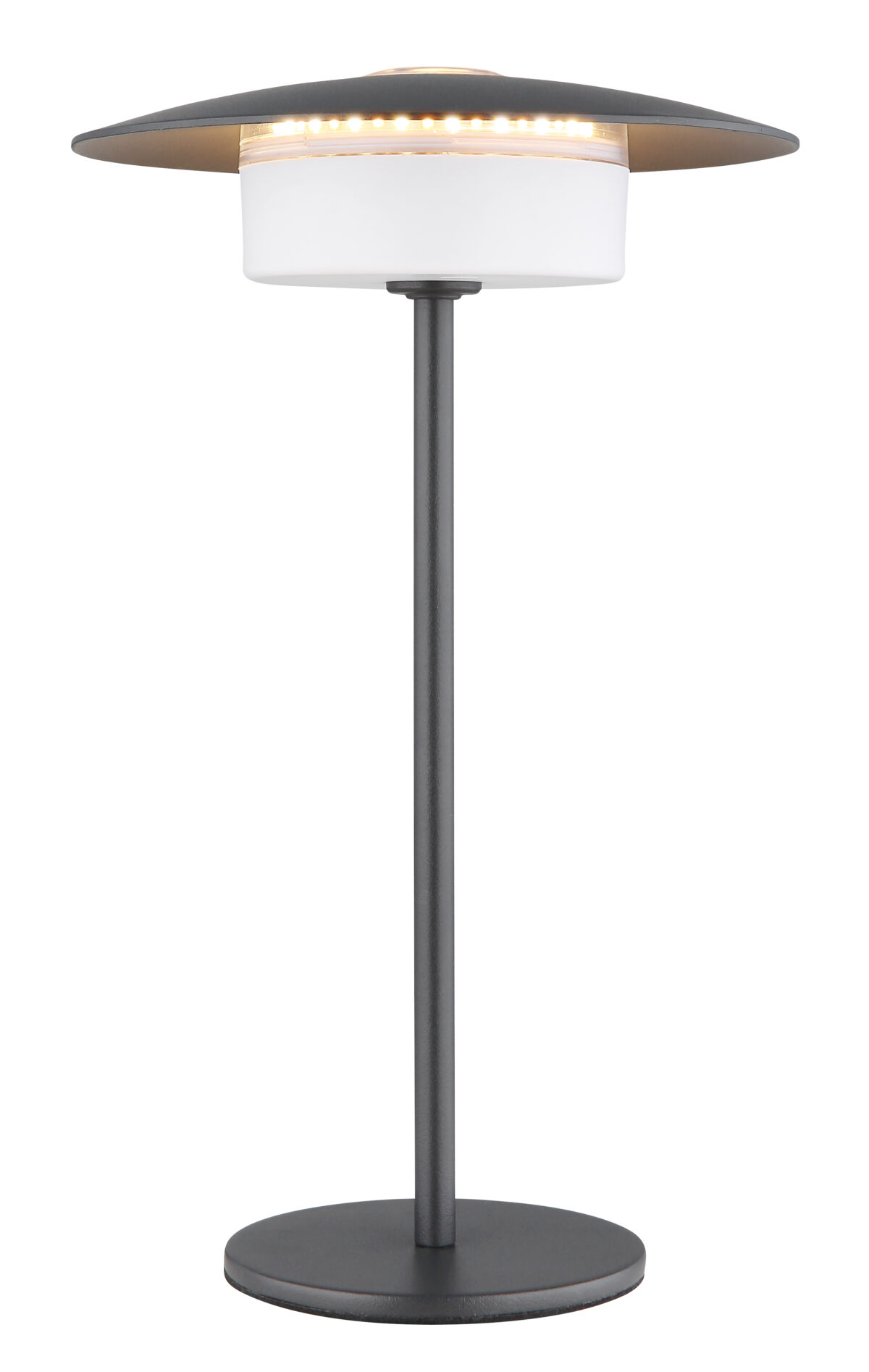 KYLER stolna lampa kombinuje moderan dizajn sa praktičnom funkcionalnošću. Sa svojom ravnom, okruglom bojom i prečnikom od 180 mm, neprimetno se uklapa u svako okruženje. Mat sivo metalno kućište daje lampi savremeni izgled. Sjenilo je izrađeno od sivog, mat aluminija i plastike, što lampi daje plemenit izgled. KYLER stolna lampa se može zatamniti i ima beskonačni dimer na dodir, kao i memorijsku funkciju koja čuva željena podešavanja. Sa snagom od 140 lumena i beskonačnim podešavanjem temperature svjetlosti od 1800 K do 3000 K, nudi raznovrsne mogućnosti osvjetljenja. Lampa je opremljena nosačem za montažu i magnetom za zidnu montažu i ima USB-C priključak za punjenje. Vrijeme punjenja je oko 7 sati, a vrijeme osvjetljenja je oko 25 sati. Sa IP44, pogodan je i za upotrebu na otvorenom.