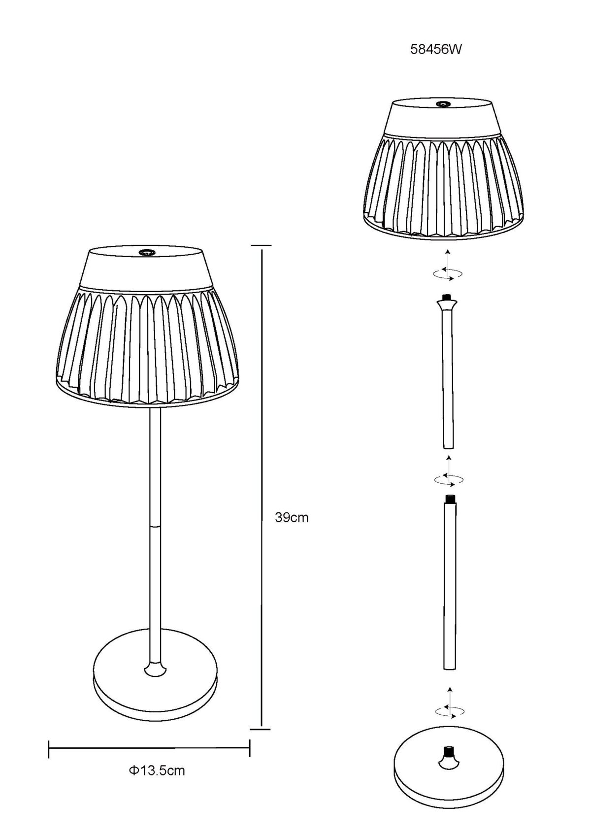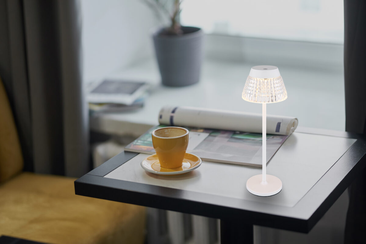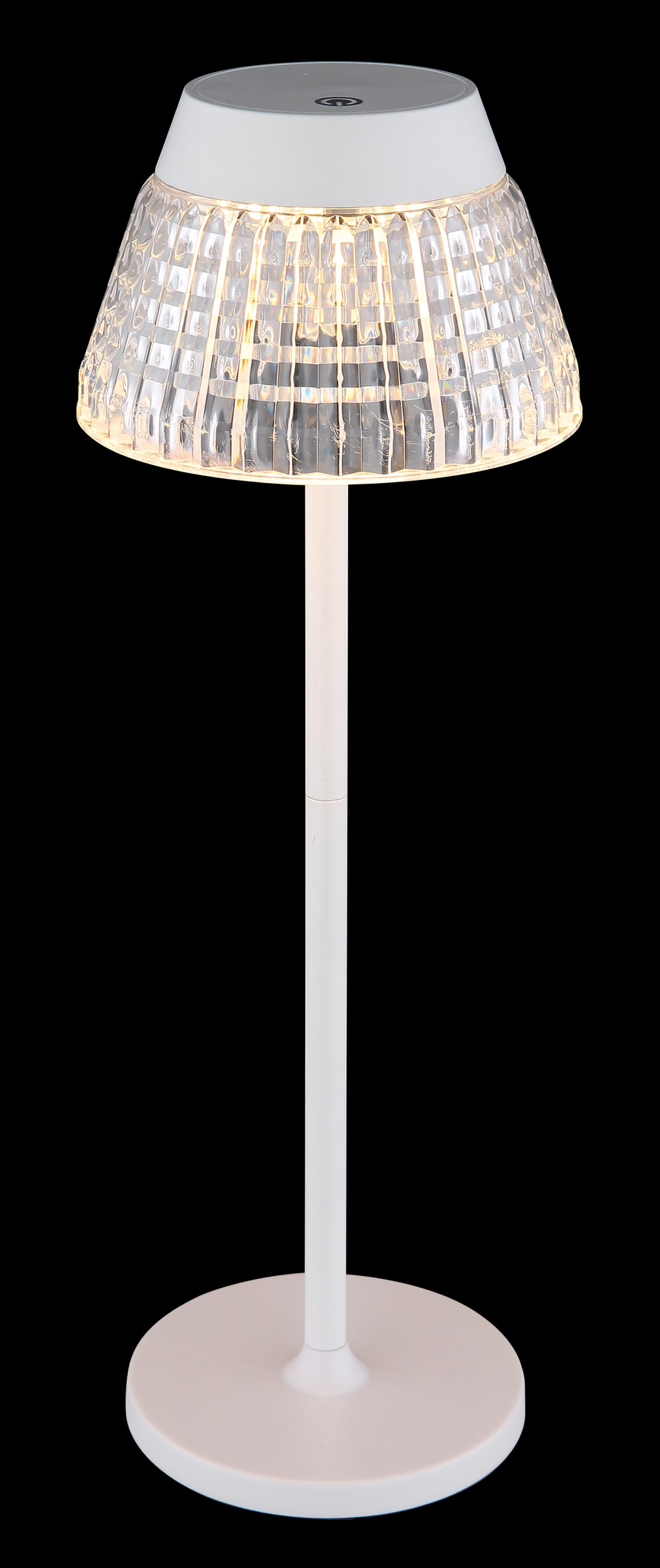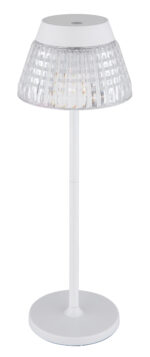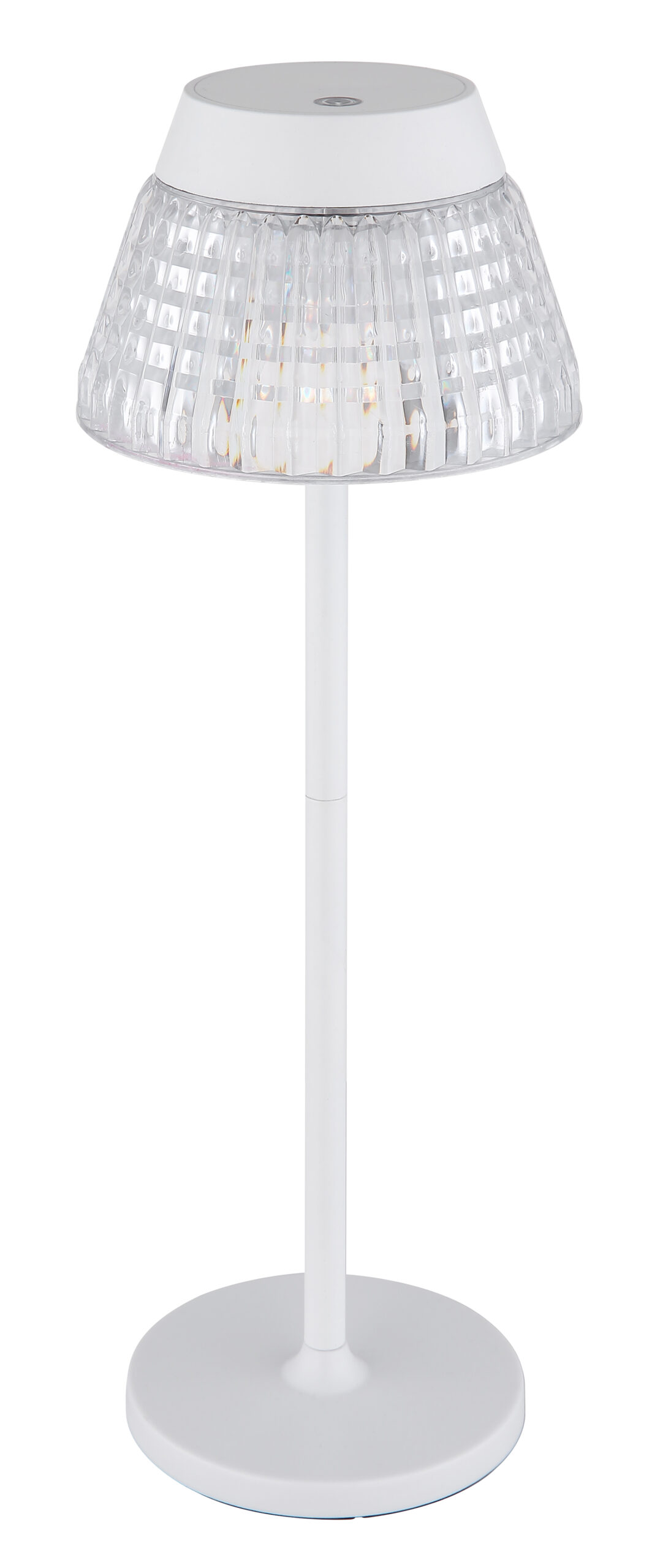 Stona lampa LORA se predstavlja u jasnom i modernom dizajnu, koji je definisan okruglim kućištem od bijelog mat lakiranog metala. Tijelo je zaokruženo sjenilom s kristalnim dekorom od prozirnog akrila i bijele mat lakirane plastike. Još jedan vrhunac je moderna funkcija dodira, koja vam omogućava da uključite i isključite svjetiljku jednim dodirom. Dimer na dodir vam omogućava da prilagodite svjetlinu. Dimenzije sjenila su ø 135 mm i daju cjelini elegantan i kompaktan oblik. Stona lampa LORA je idealan izbor za sve koji traže bezvremensko i elegantno rješenje za svoju rasvjetu. Sa svojim jasnim i modernim karakteristikama, savršeno privlači poglede na vašem stolu.