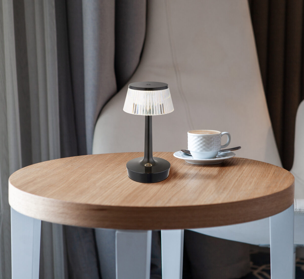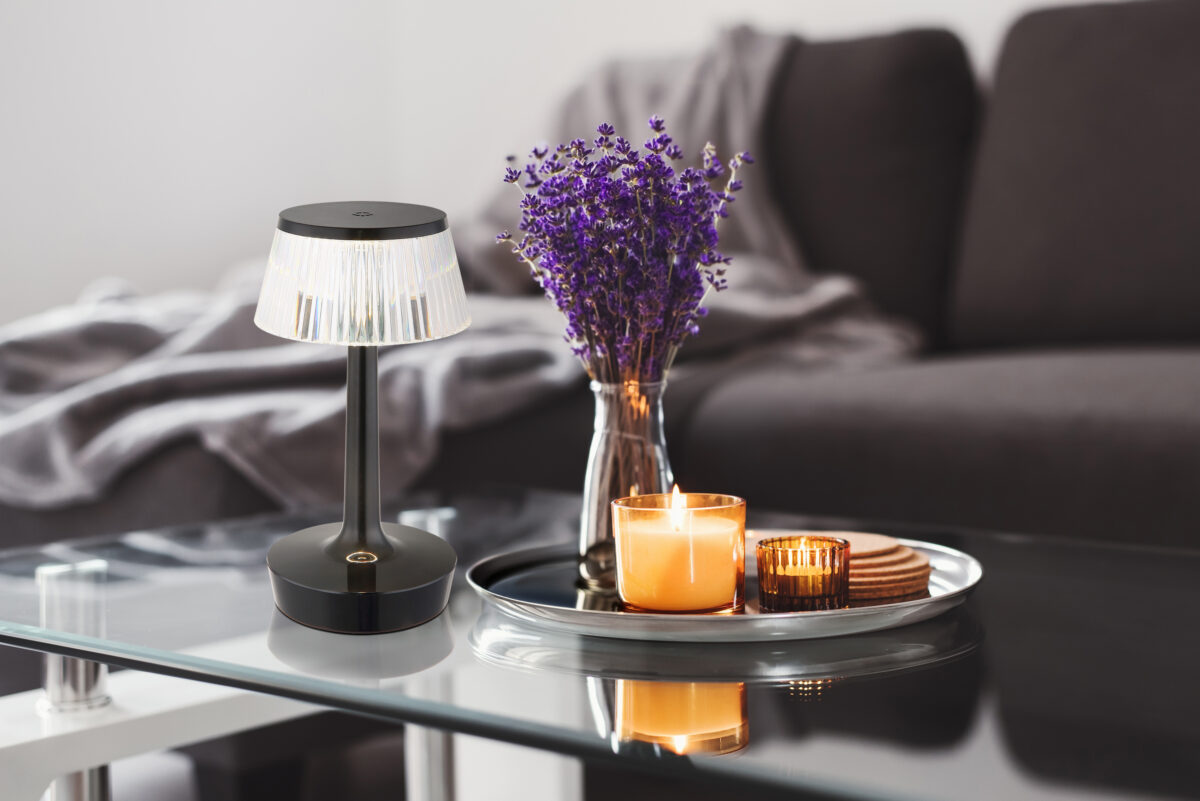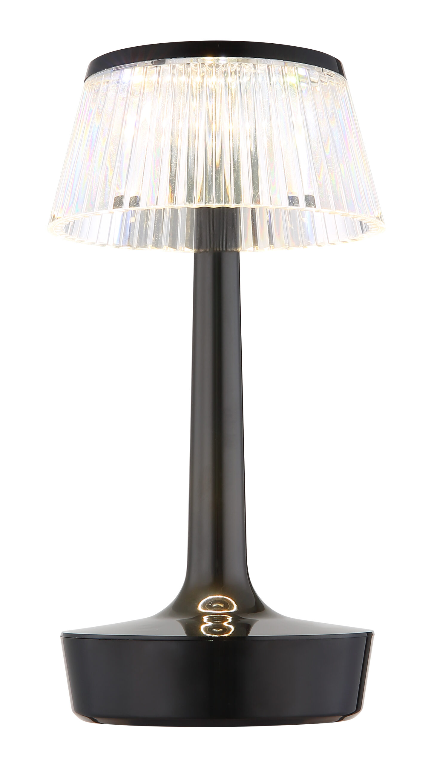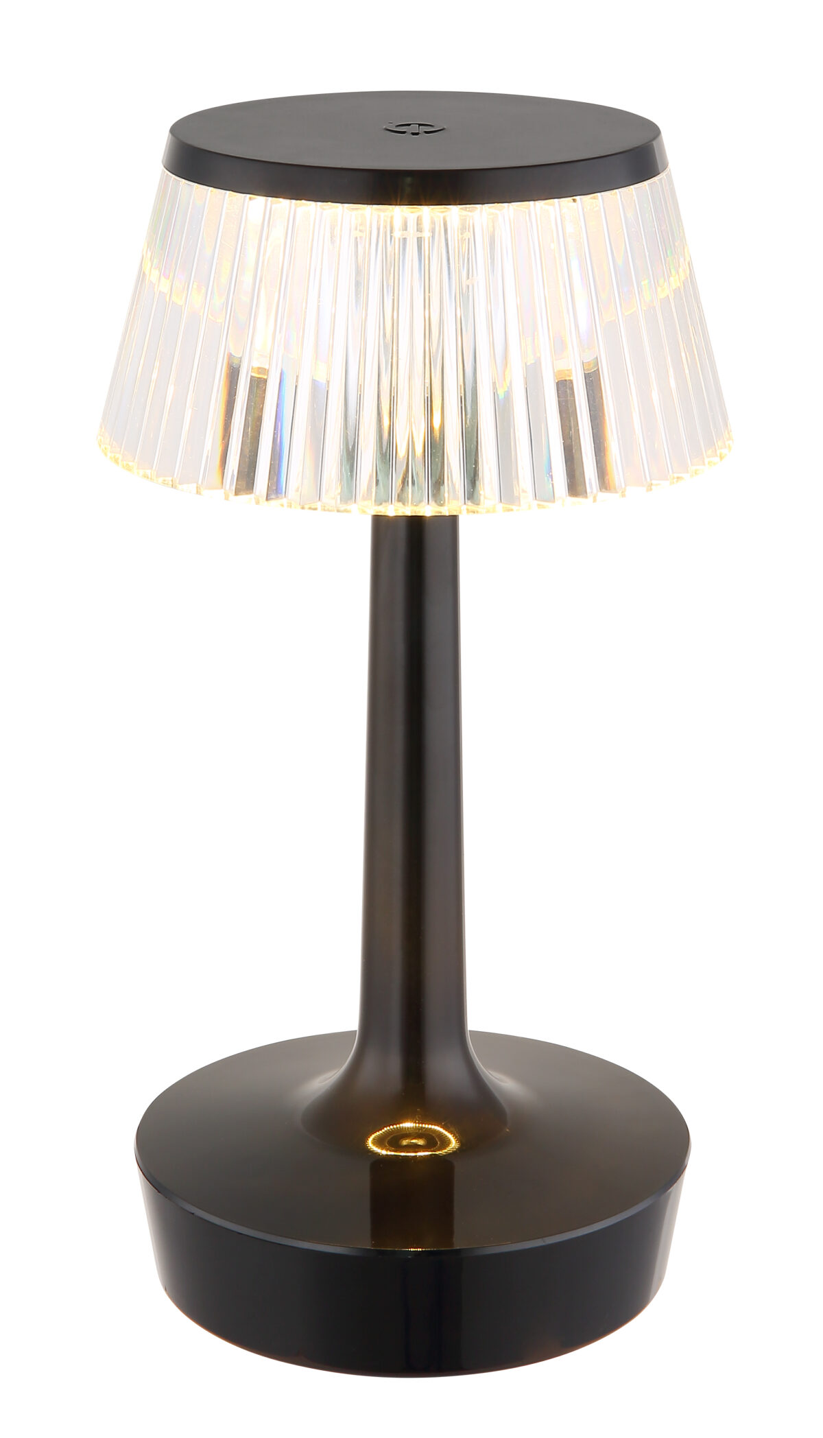 LUCIO PLASTIC BLACK MATT STOL LAMP je elegantna, okrugla stolna lampa sa fascinantnim sjenilom kristalnog izgleda. Tijelo je izrađeno od mat crne plastike, što lampi daje moderan i moderan izgled. Prozirna nijansa sa kristalnim efektom stvara blistavu igru svjetla i stvara posebnu atmosferu u svakoj prostoriji. LUCIO je opremljen beskonačnim dimerom na dodir koji omogućava individualno podešavanje intenziteta svjetlosti, a boje se mogu fiksirati po želji. Praktični prekidač za uključivanje/isključivanje na dodir i priloženi USB kabl za punjenje čine rad lakim i praktičnim. Sa prečnikom od 120 mm i svetlosnom snagom od 84 lumena, stona lampa nudi prijatnu svetlost. Temperatura boje se kreće od 2724 K do 3737 K. Nakon vremena punjenja od cca. 3 sata, svjetiljka nudi vrijeme osvjetljenja od cca. 8 sati i ostaje uključen dok se puni.