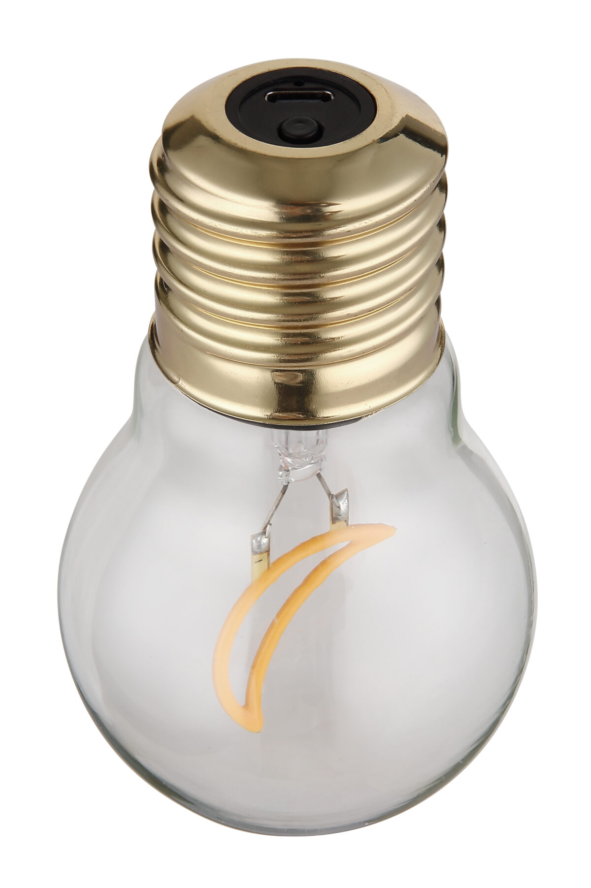 LUMI STOLNA LAMPA donosi elegantan dizajn i praktičnu funkcionalnost u šarmantnom pakovanju. Njegova AGL sijalica u obliku kruške stilski je upotpunjena kućištem od metala zlatne boje i mat crne plastike, dok prozirno staklo sjenilo nježno i ravnomjerno raspoređuje svjetlost. Sa prečnikom od 70 mm, lampa se savršeno uklapa u svaki ambijent. LED tehnologija pruža prijatno osvetljenje od 8 lumena i toplu svetlosnu boju od 3000 K. Stona lampa je ukrašena motivima poput srca, leptira i meseca, koji daju dodatnu vizuelnu privlačnost. Dolazi sa adapterom i USB kablom za punjenje. Vrijeme punjenja je oko 3 sata, a svjetlo nudi vrijeme gorenja od oko 4 sata. Može se koristiti i tokom punjenja. Prekidač na dugme omogućava jednostavnu upotrebu i praktičnost.