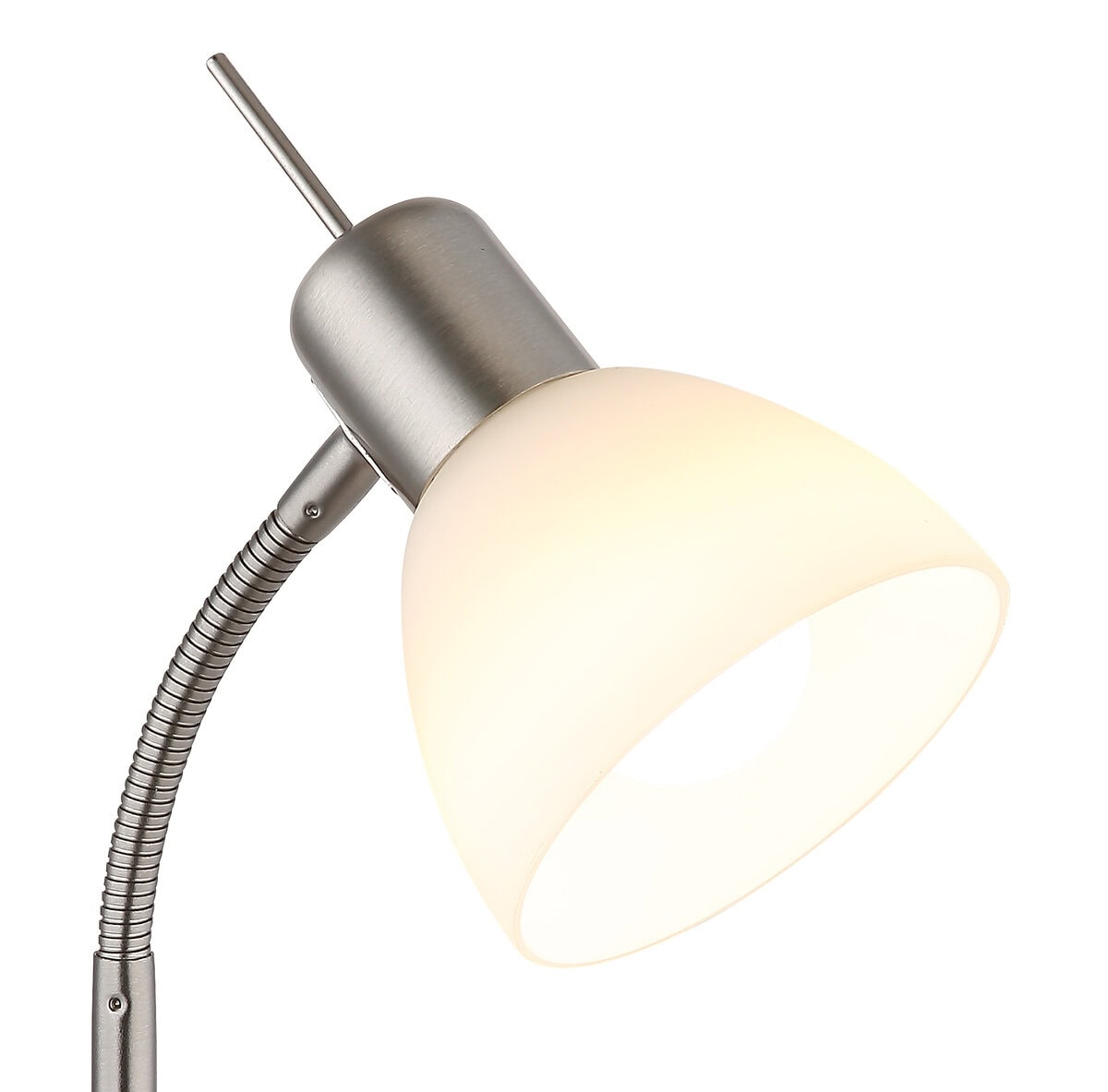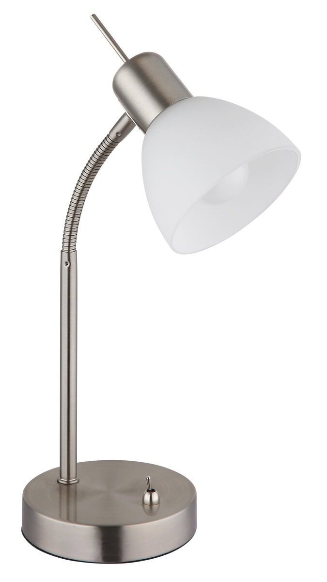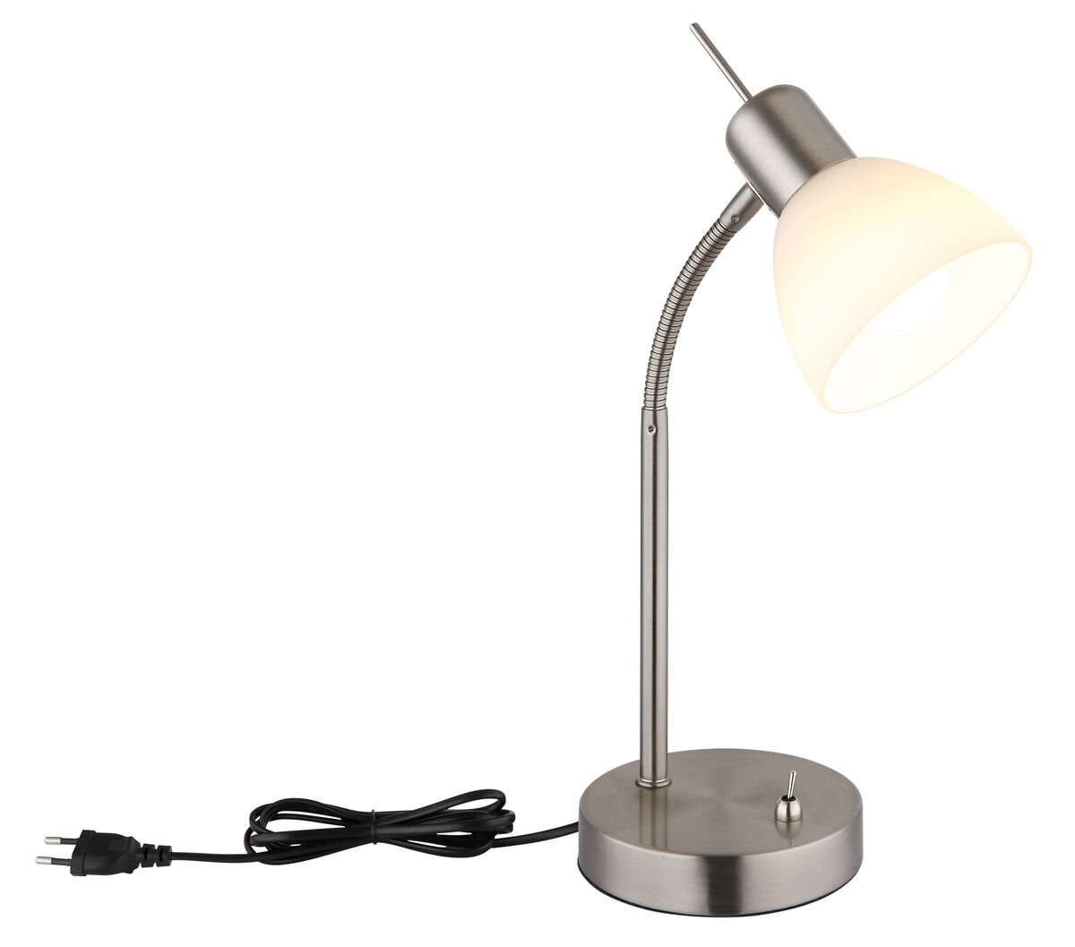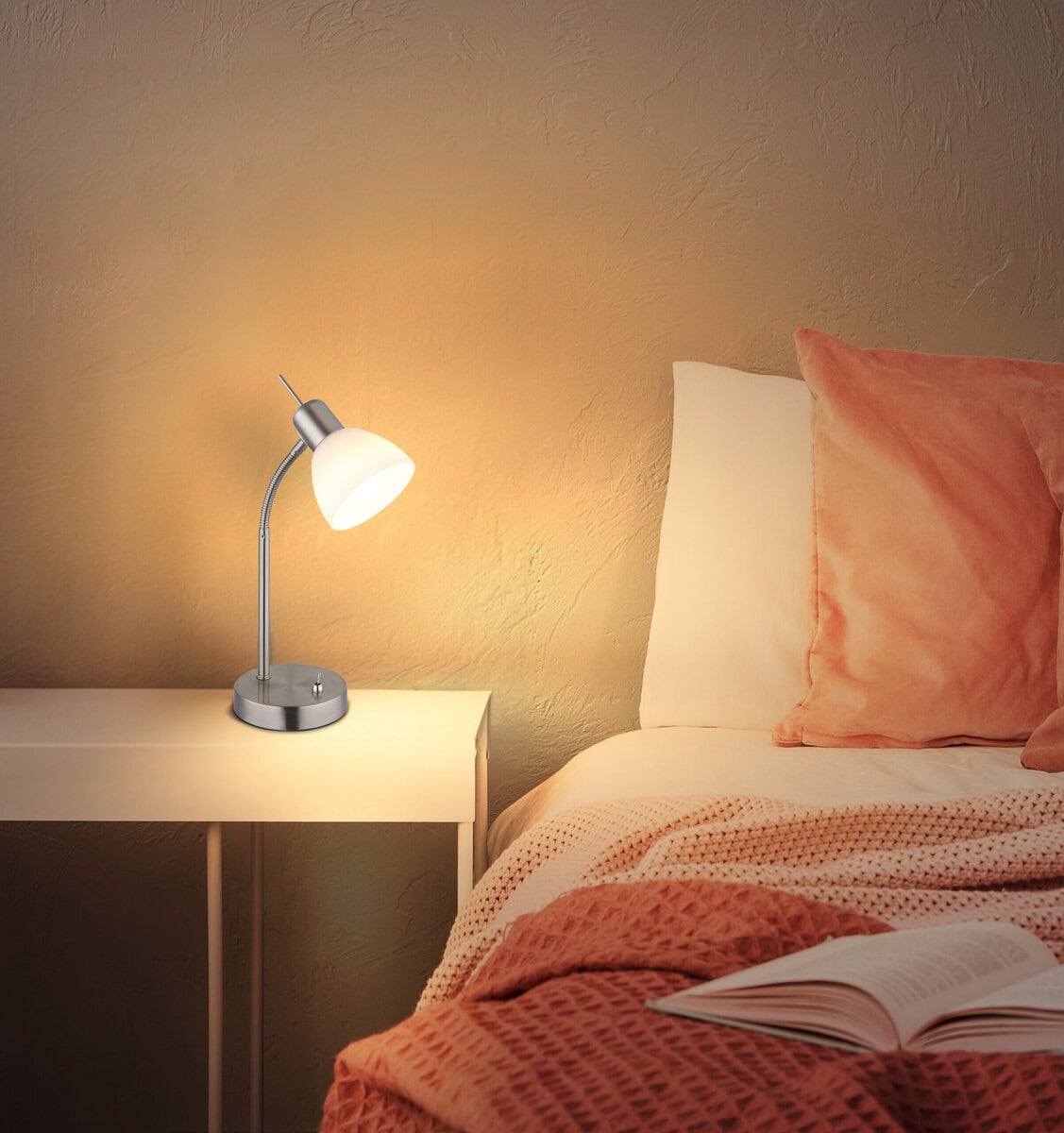Okrugla stolna lampa MALTE kombinuje moderan dizajn sa praktičnom funkcionalnošću. Njegovo mat metalno kućište boje nikla odiše bezvremenskom elegancijom i pruža savršenu osnovu za sjenilo od opalnog stakla, koje stvara meko svjetlo bez odsjaja. Fleksibilni reflektor, dužine 170 mm i širine 120 mm, omogućava individualno podešavanje svjetla i osigurava ciljano osvjetljenje upravo tamo gdje je potrebno. Opremljen integriranom E14 LED sijalicom, MALTE isporučuje 365 lumena pri toploj bijeloj 3000 Kelvina – idealno za ugodan rad ili prostor za čitanje. Lako rukovanje je osigurano praktičnim prekidačem koji se nalazi direktno na lampi. Kombinacija funkcionalnosti i elegantnog dizajna čini MALTE svestranom stolnom lampom koja se savršeno uklapa u moderne životne i radne prostore. Bilo kao lampa za čitanje ili akcentno svjetlo—MALTE donosi svjetlo upravo tamo gdje je potrebno.