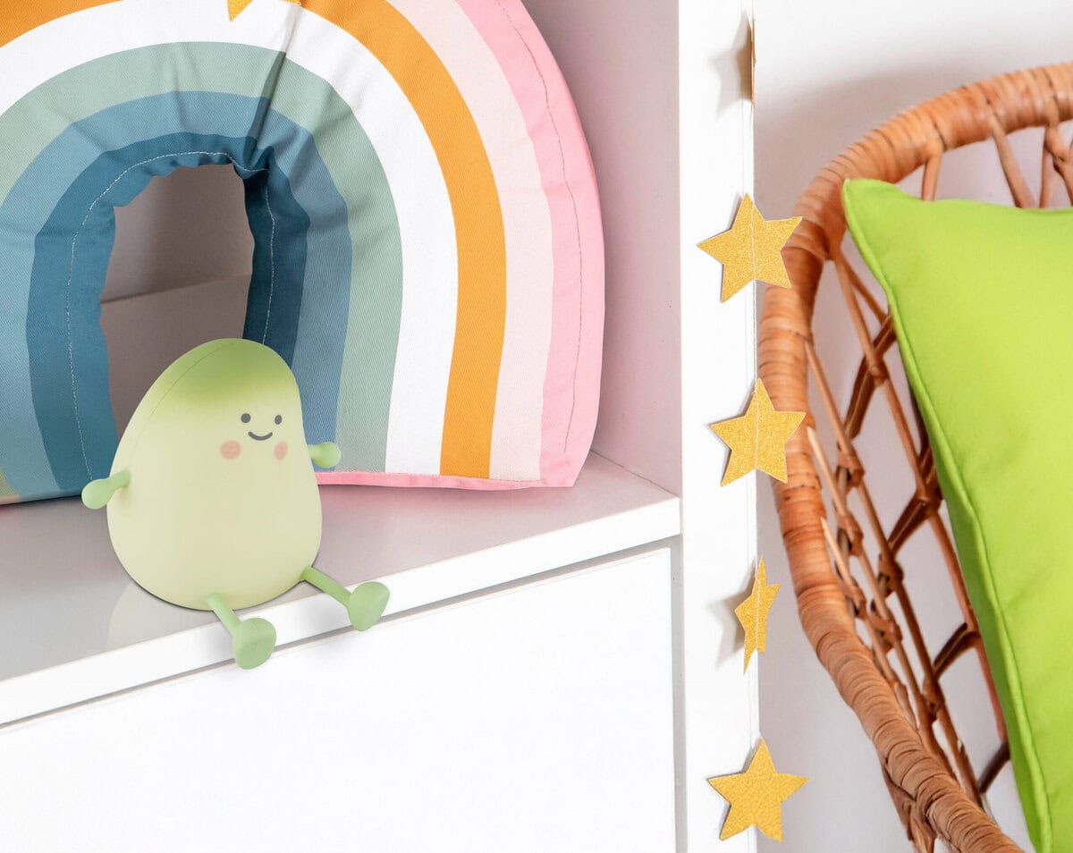Sedeći mango “MANGI” kombinuje organski dizajn sa pametnom funkcionalnošću. Kao noćno svjetlo ili stolna lampa, donosi toplo, ugodno osvjetljenje u svaku dječju sobu, spavaću sobu ili dnevni boravak. Tijelo je izrađeno od visokokvalitetne mat plastike. Integrisani LED sa 35 lumena emituje toplo belo svetlo (3000 K) koje nežno osvetljava okolinu. Dva praktična klizna prekidača omogućavaju individualno podešavanje svjetline i tajmer (15 ili 30 minuta). Zahvaljujući funkciji Touch On/Off, MANGI je jednostavan za rukovanje. Trajanje svjetla je oko 5 sati, vrijeme punjenja oko 4 sata – a najbolji dio: lampa ostaje upaljena dok se puni. Uključeni su USB kabl za punjenje (D: 123 mm, Š: 122 mm) i adapter.