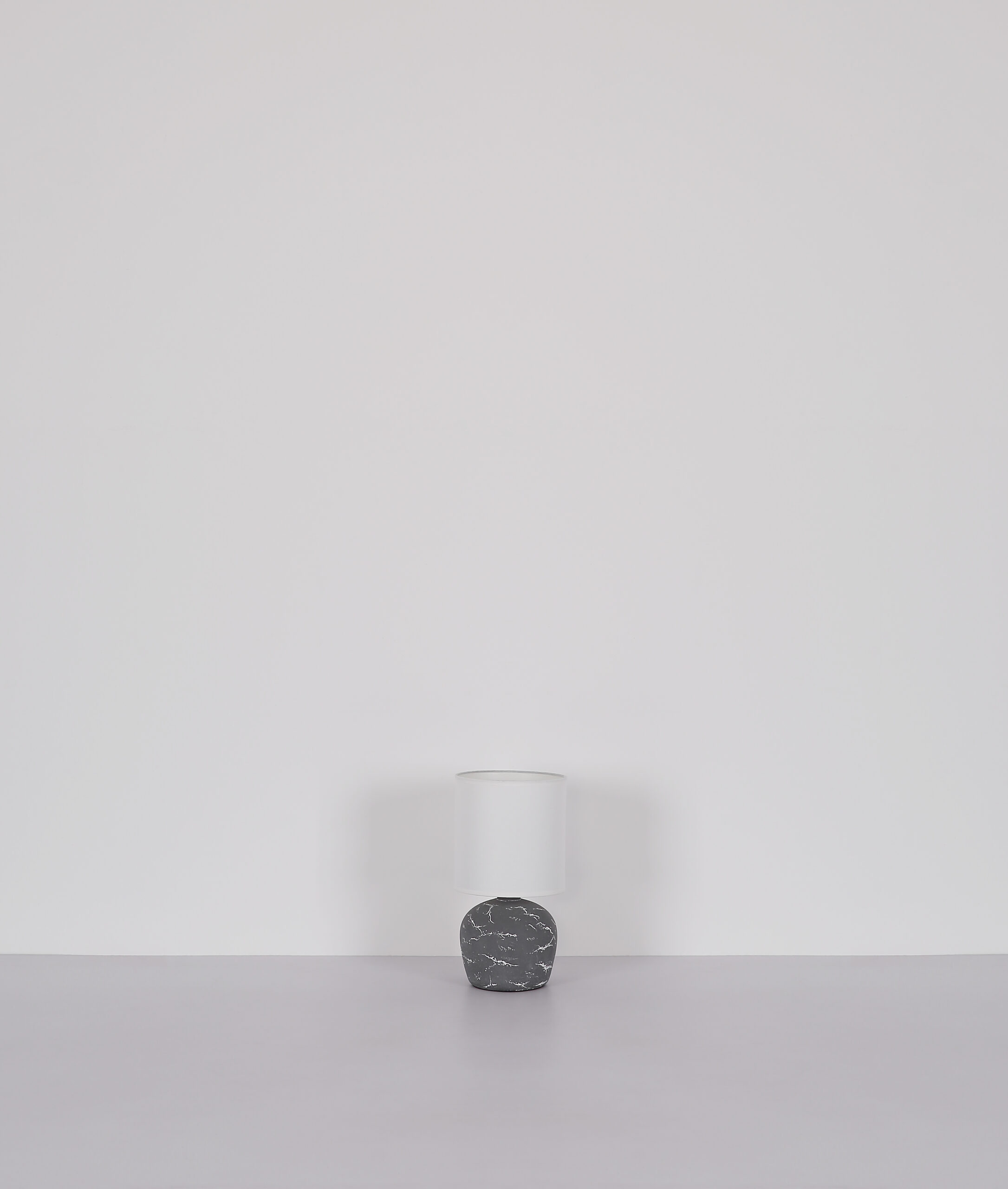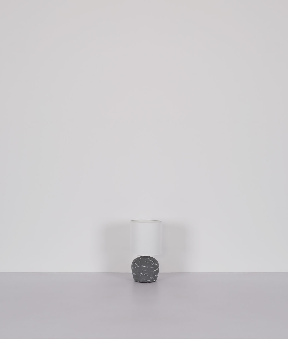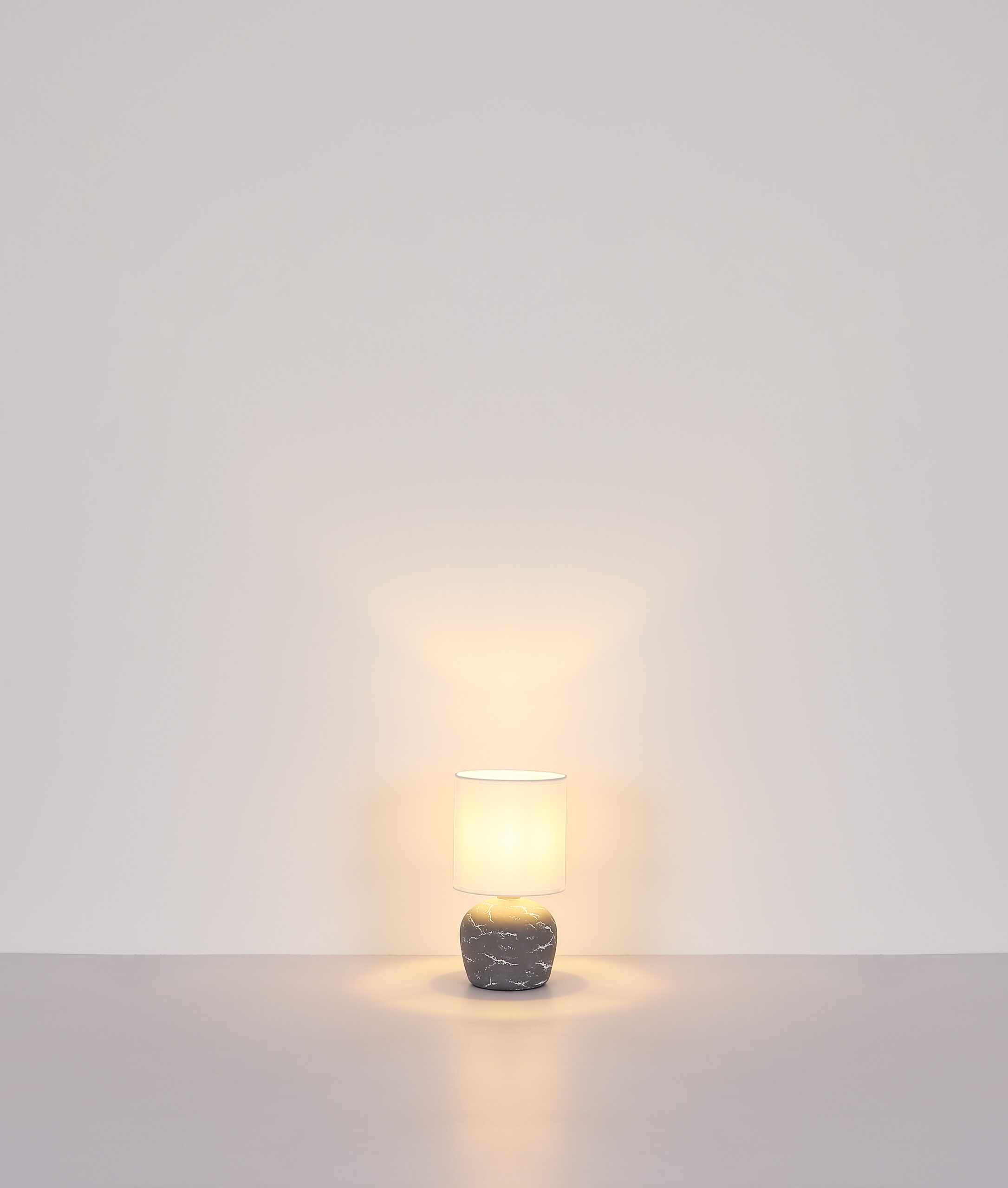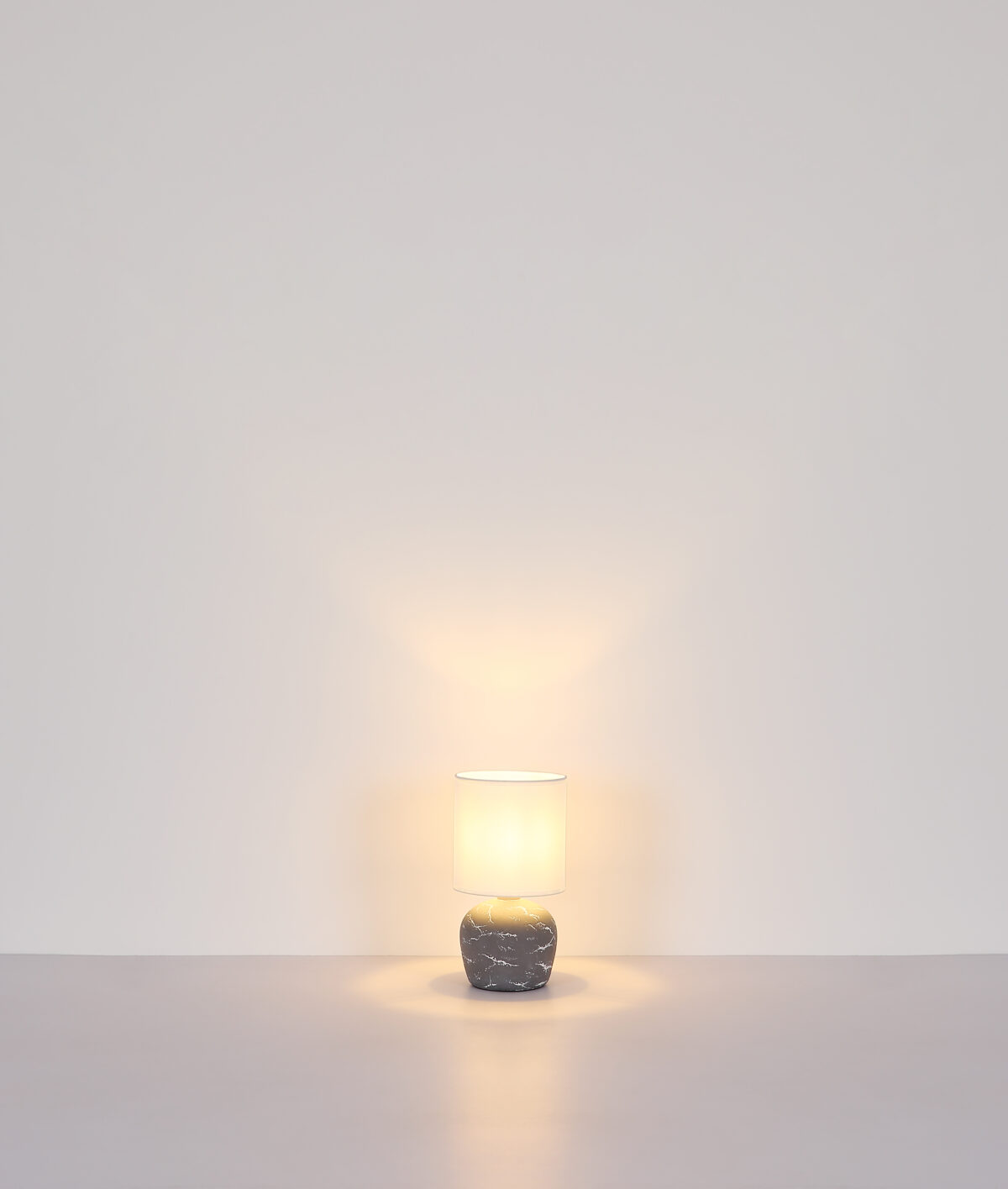 MARBLE stolna lampa kombinuje elegantnu eleganciju sa praktičnom funkcionalnošću. Lubučasto postolje od sive keramike impresionira svojom teksturiranom površinom koja lampi daje suptilnu sofisticiranost. Cilindrična platnena nijansa u svijetlo bijeloj boji osigurava nježnu, ujednačenu distribuciju svjetlosti i harmonično pristaje uz tijelo. Sa prečnikom od Ø:160 mm, MARBLE stolna lampa nudi izdašan izvor svetlosti, idealan za životne i radne prostore. Integrisani prekidač na kablu omogućava lako i praktično rukovanje svetiljkom. Opremljena sa grlom E14, MARBLE lampa se može kombinovati sa različitim sijalicama kako bi zadovoljila vaše individualne potrebe za osvetljenjem. Ova stolna lampa nije samo funkcionalna, već je i moderan dodatak koji će dodati elegantan štih svakoj prostoriji.