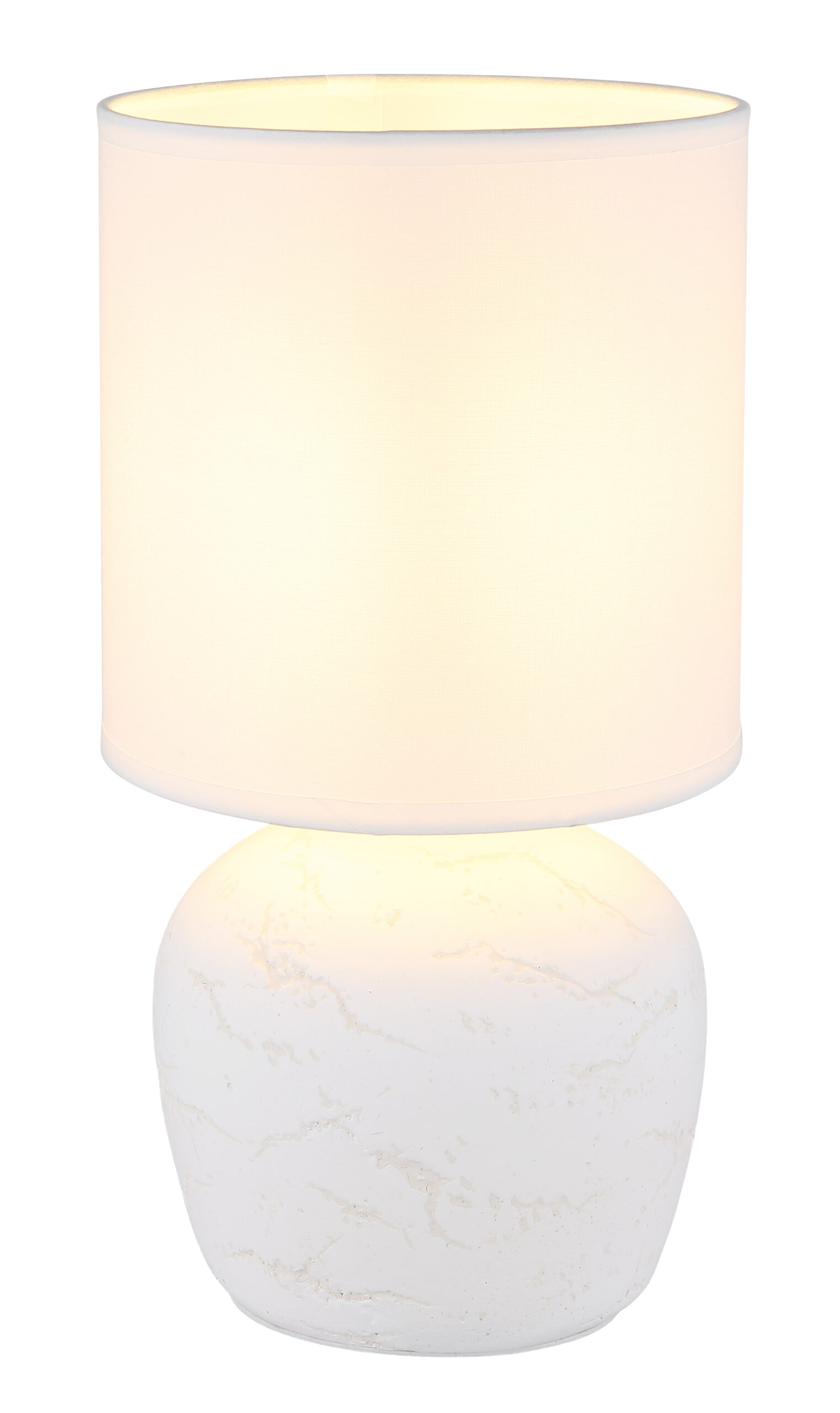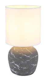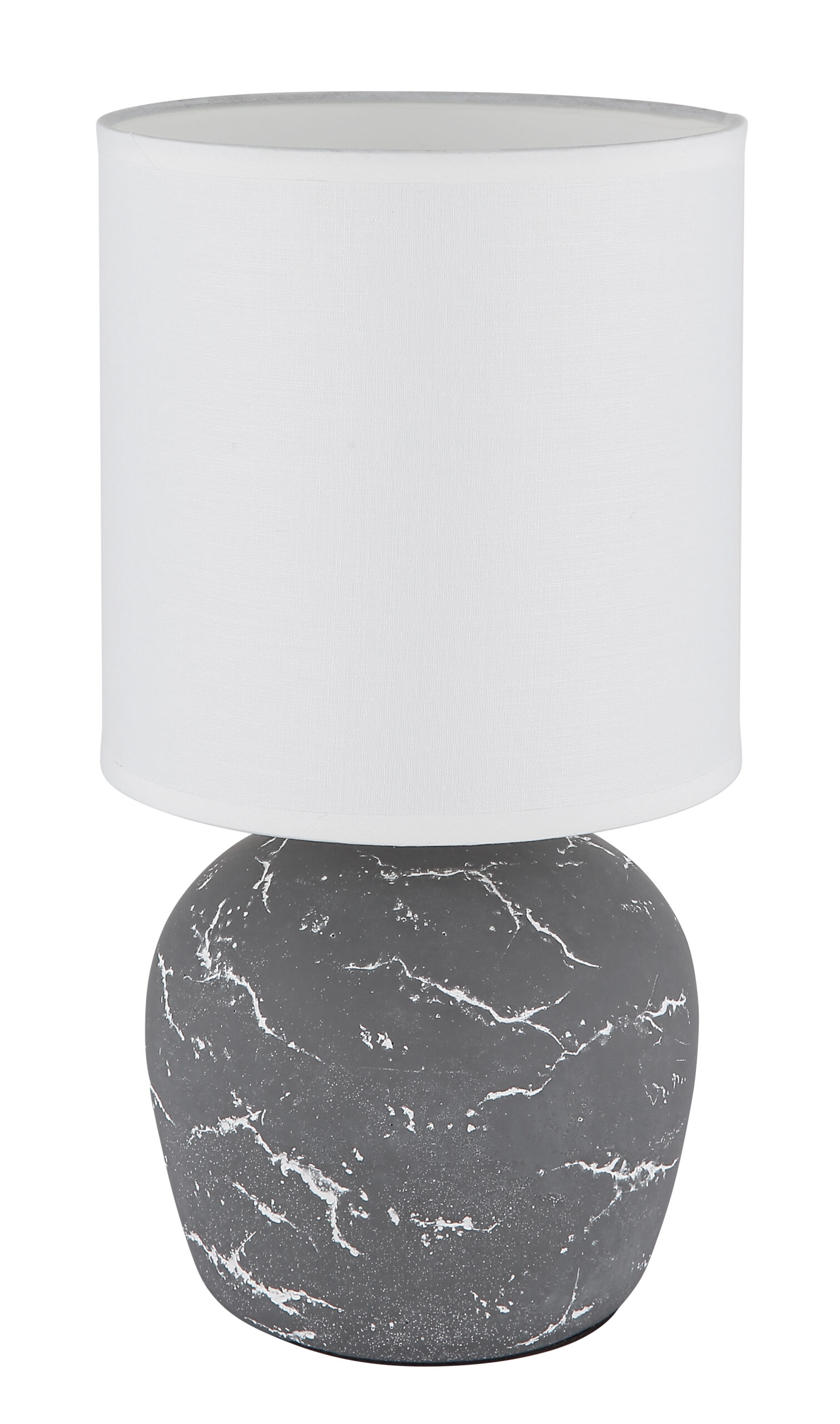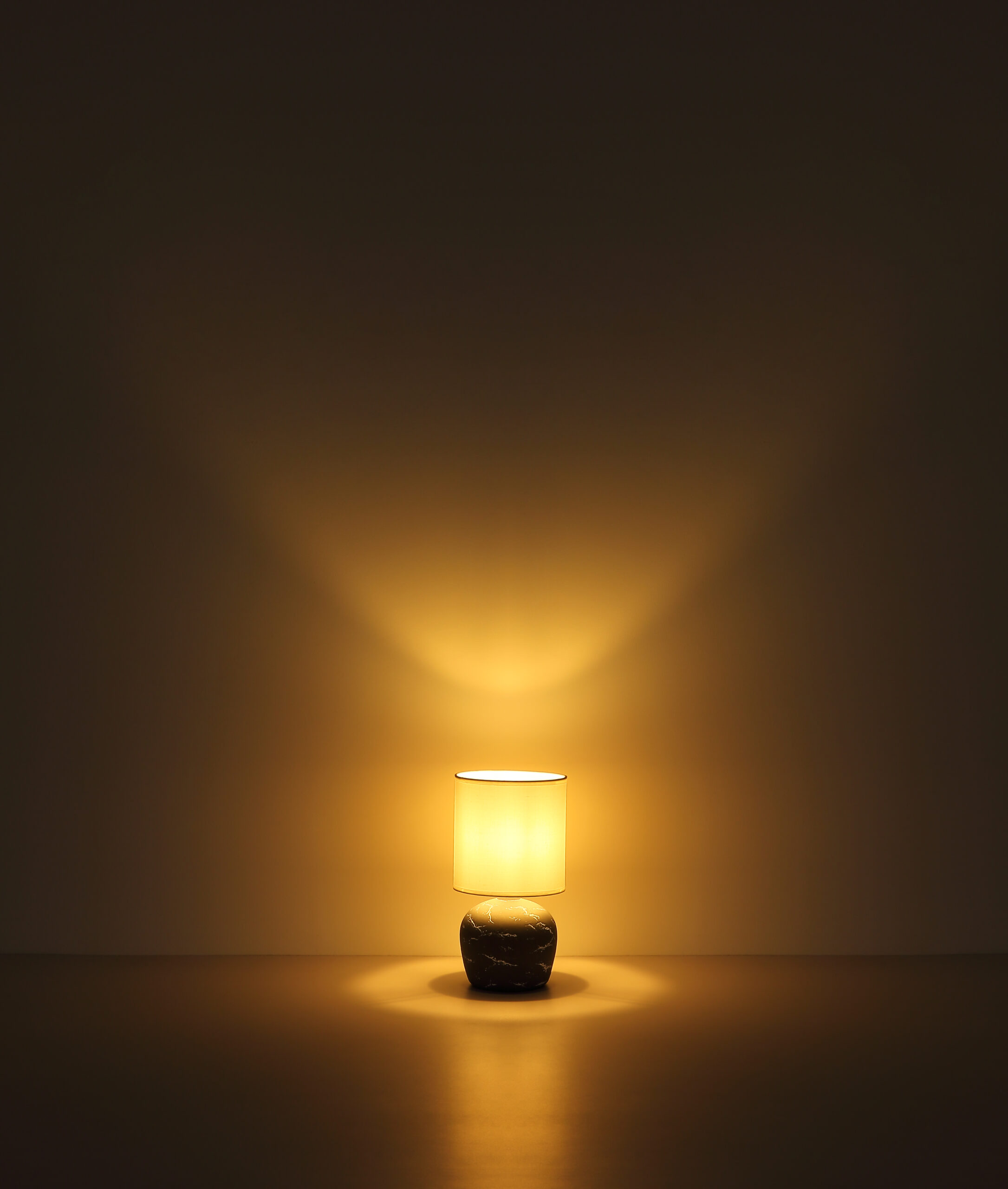 MARBLE stolna lampa kombinuje elegantnu eleganciju sa praktičnom funkcionalnošću. Lubučasto postolje od sive keramike impresionira svojom teksturiranom površinom koja lampi daje suptilnu sofisticiranost. Cilindrična platnena nijansa u svijetlo bijeloj boji osigurava nježnu, ujednačenu distribuciju svjetlosti i harmonično pristaje uz tijelo. Sa prečnikom od Ø:160 mm, MARBLE stolna lampa nudi izdašan izvor svetlosti, idealan za životne i radne prostore. Integrisani prekidač na kablu omogućava lako i praktično rukovanje svetiljkom. Opremljena sa grlom E14, MARBLE lampa se može kombinovati sa različitim sijalicama kako bi zadovoljila vaše individualne potrebe za osvetljenjem. Ova stolna lampa nije samo funkcionalna, već je i moderan dodatak koji će dodati elegantan štih svakoj prostoriji.