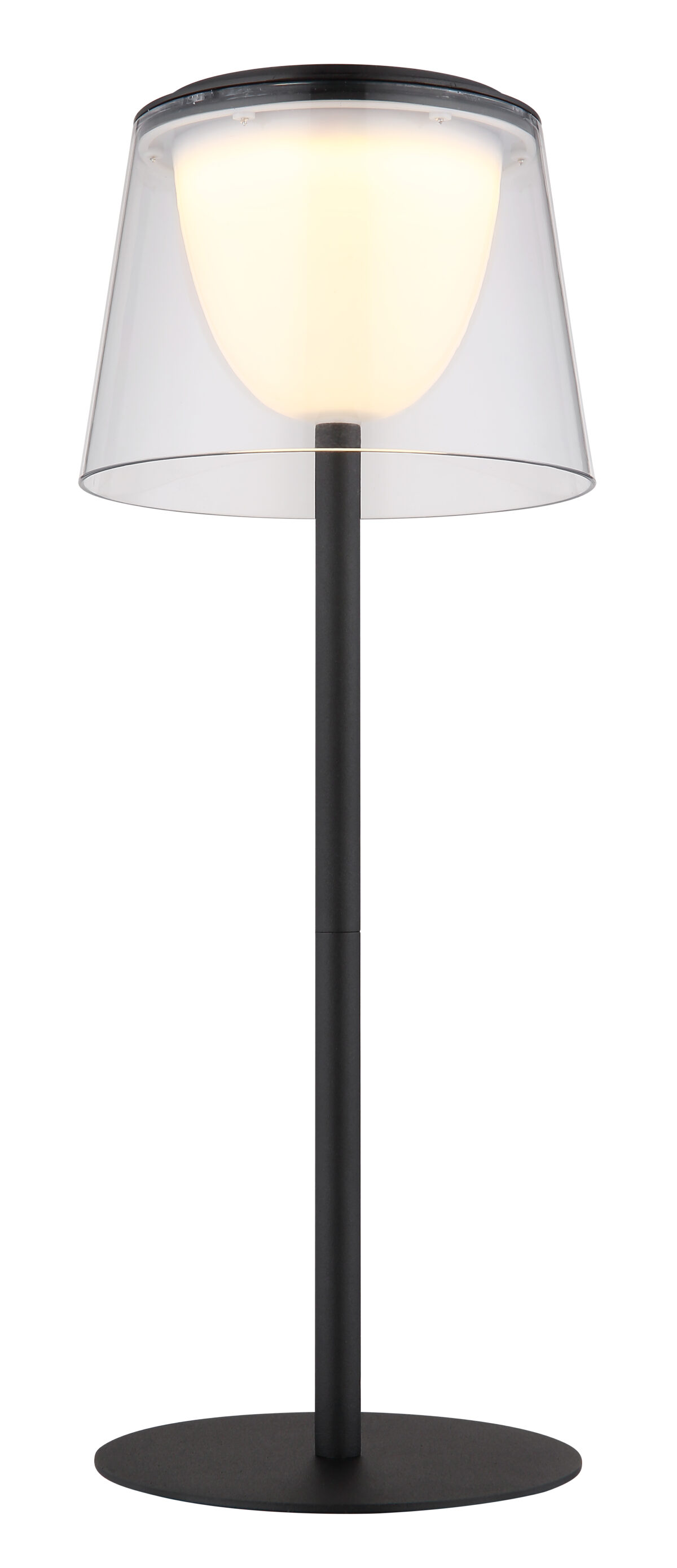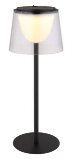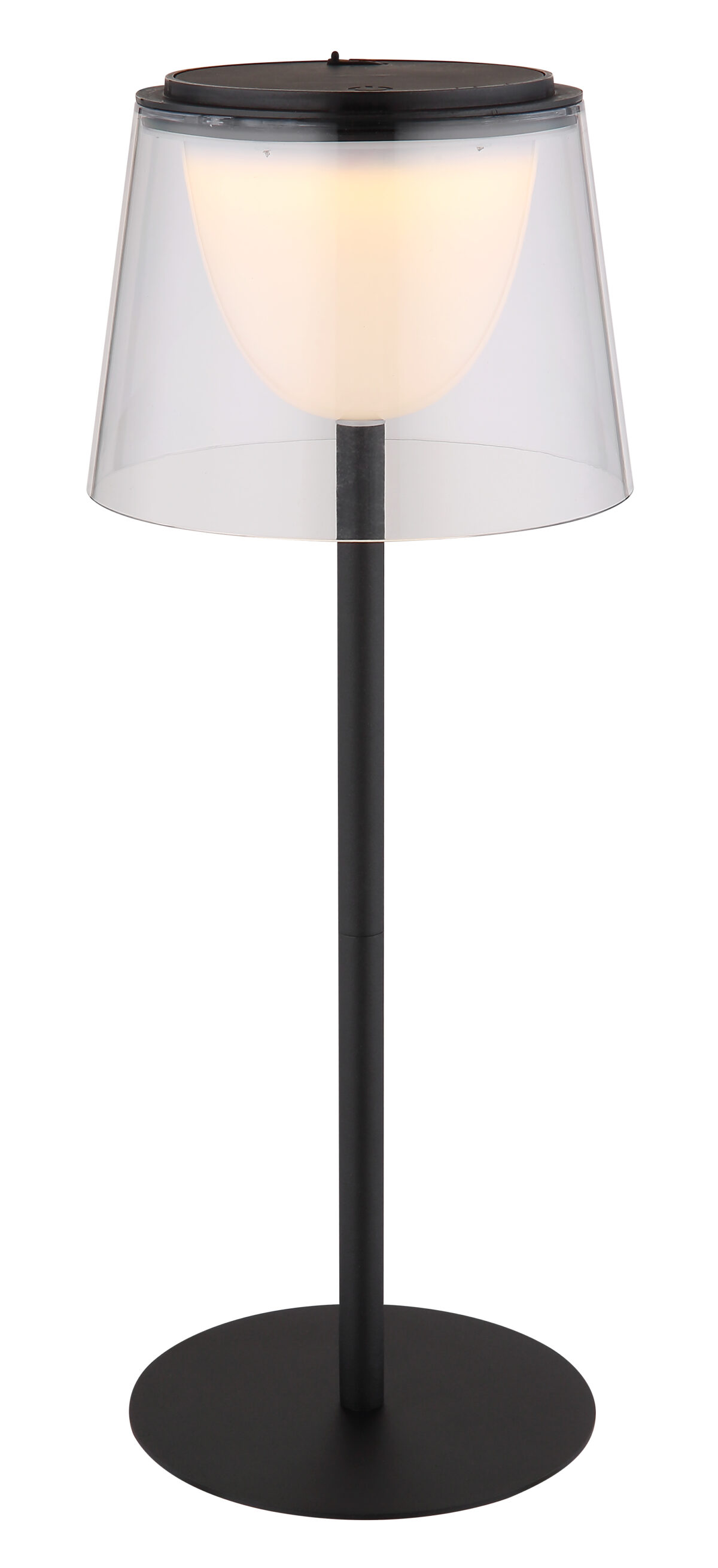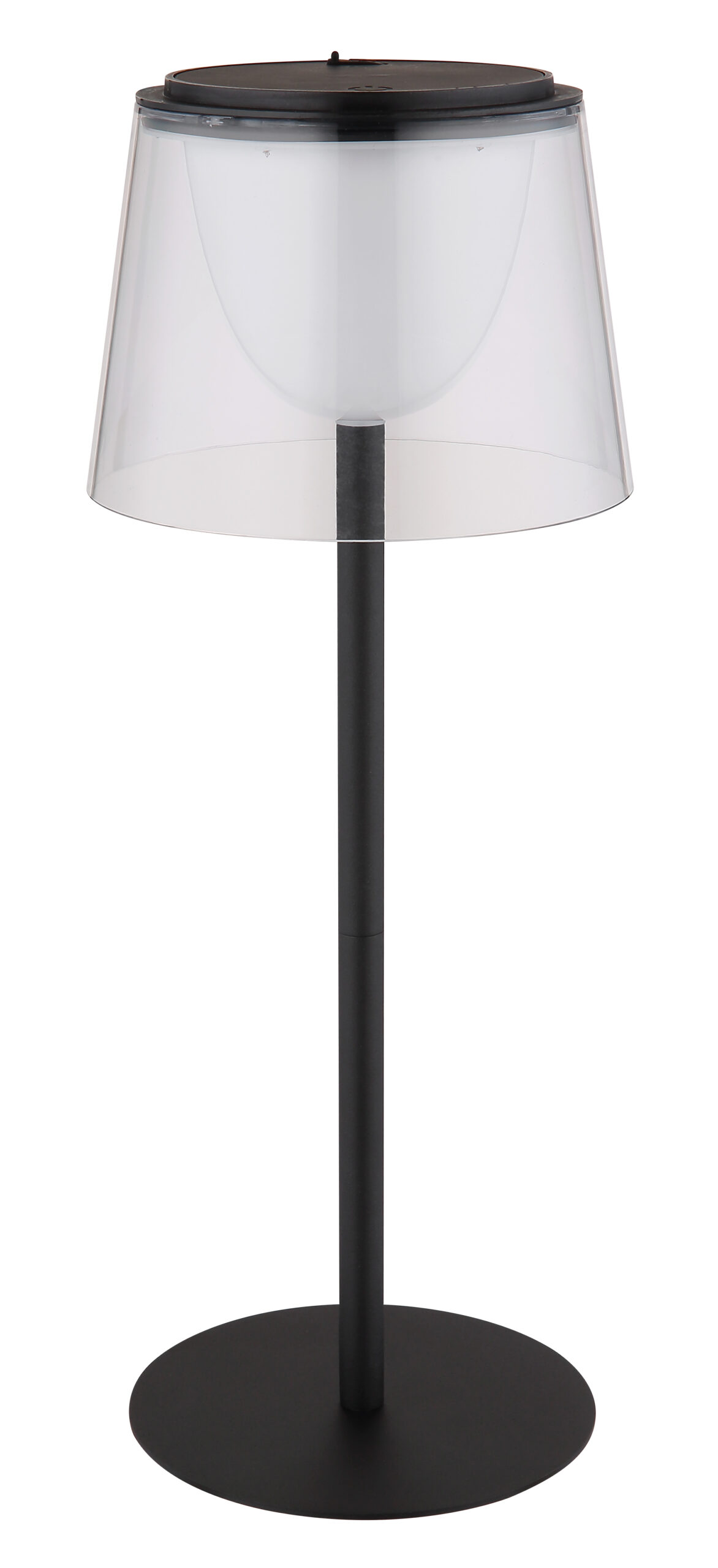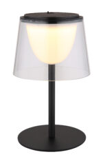 Stolna lampa MARIAM kombinuje moderan dizajn i visoku funkcionalnost u elegantnom okruglom formatu. Sa svojom ravnom cijevi od mat crnog metala i prozirnom, mat crnom plastičnom sjenilom, postavlja stilski akcent na svakom stolu. Svetiljka koja se može zatamniti nudi beskonačni dimer na dodir s praktičnom memorijskom funkcijom koja pohranjuje željeni intenzitet svjetla. Rukovanje je intuitivno preko funkcije dodira/isključivanja. Uključujući adapter i USB kabl za punjenje, MARIAM omogućava praktičnu upotrebu tokom procesa punjenja. Potrebno je oko 3 sata da se potpuno napuni, a zatim nudi do 3 sata vremena gorenja sa svjetlosnim učinkom od 150 lumena pri temperaturi boje od 3000 K. Zahvaljujući IP44 ocjeni, svjetlo je otporno na prskanje i pogodno za zatvorene prostore i zaštićene vanjske površine.