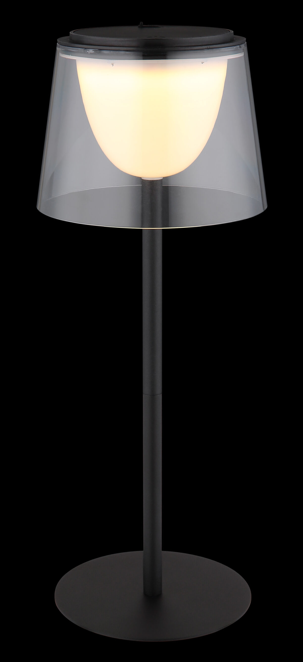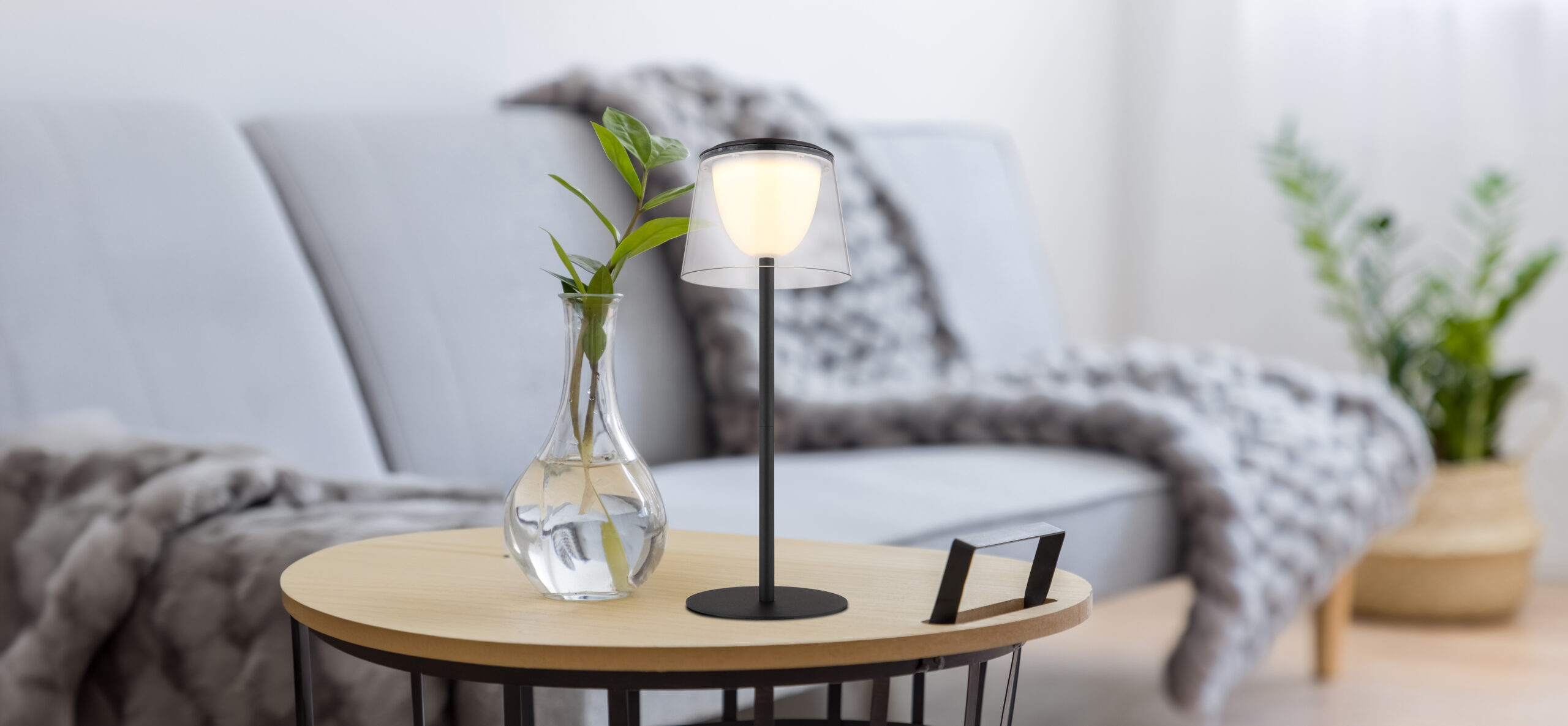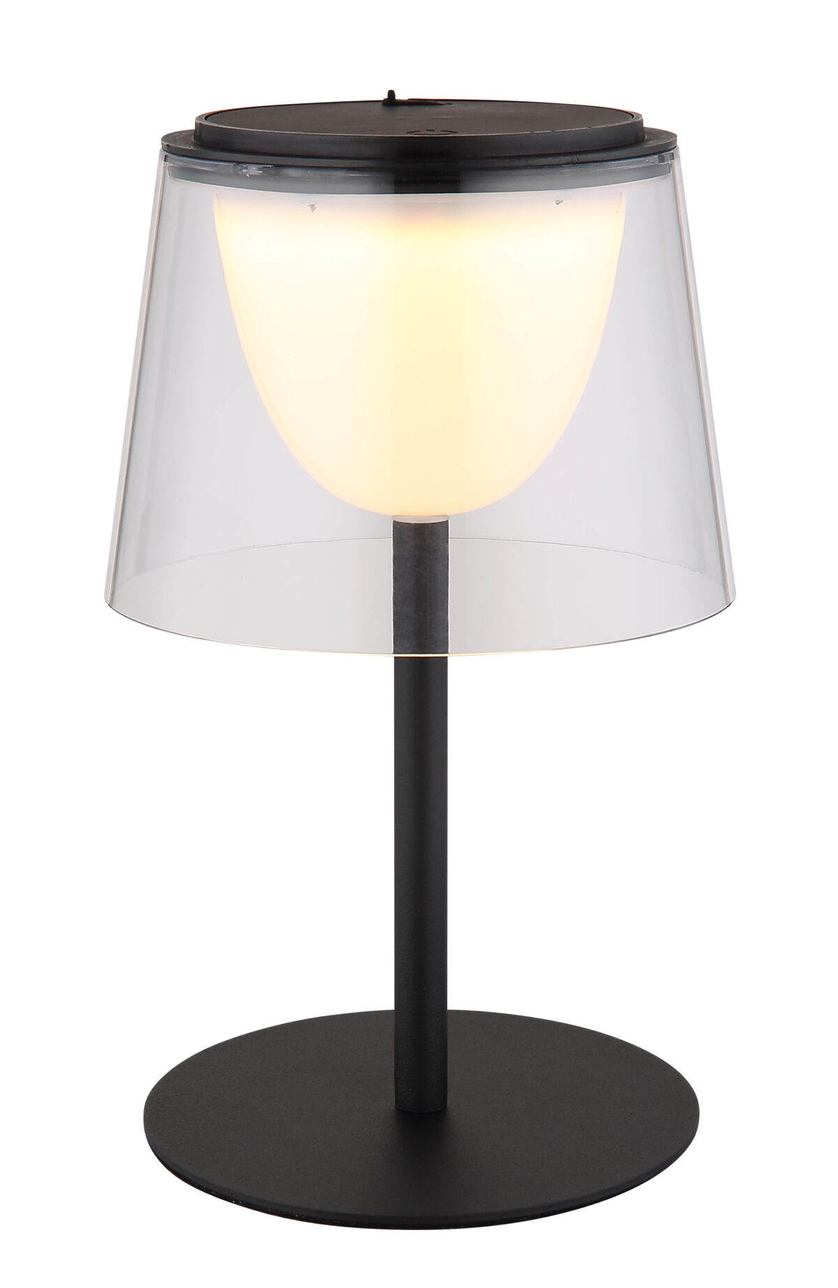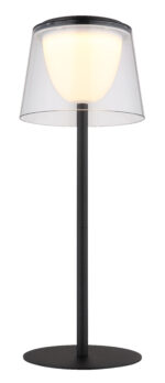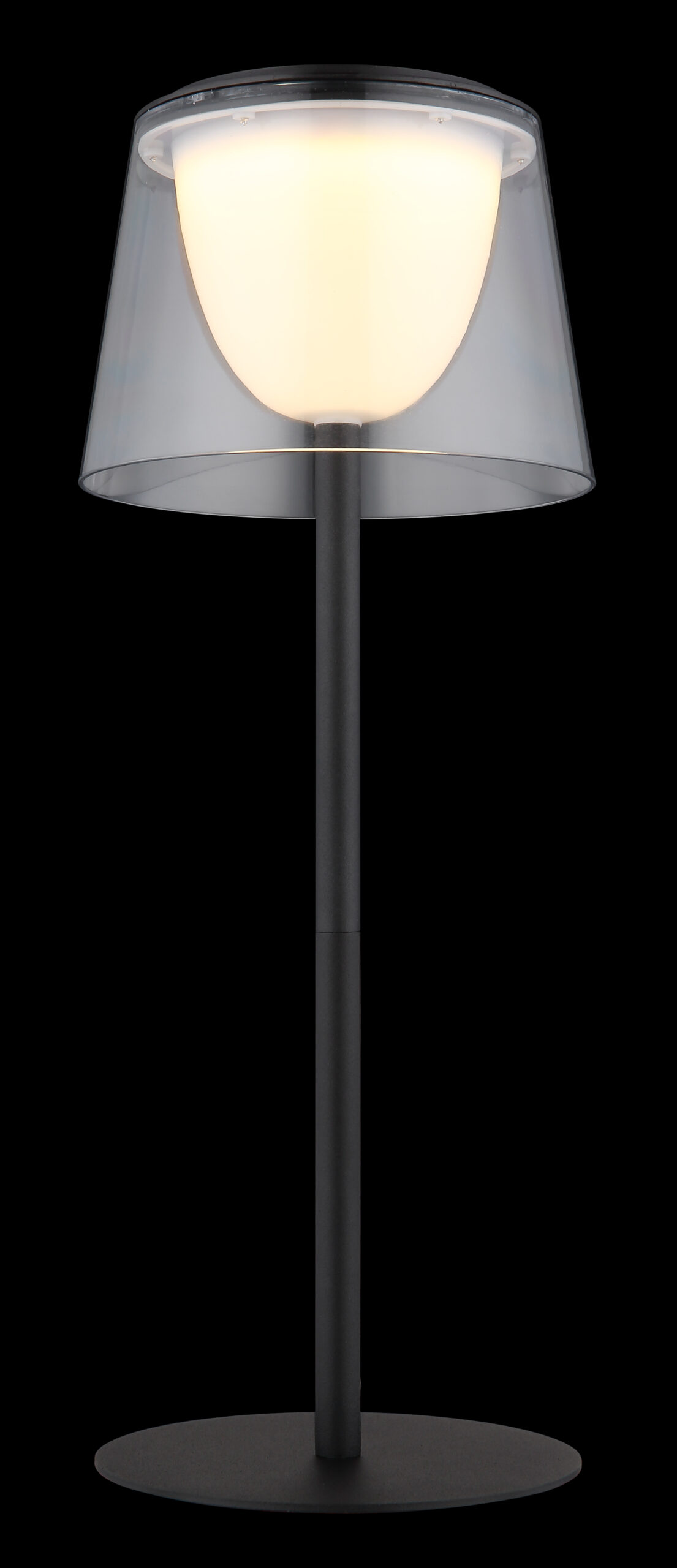 Stolna lampa MARIAM kombinuje moderan dizajn i visoku funkcionalnost u elegantnom okruglom formatu. Sa svojom ravnom cijevi od mat crnog metala i prozirnom, mat crnom plastičnom sjenilom, postavlja stilski akcent na svakom stolu. Svetiljka koja se može zatamniti nudi beskonačni dimer na dodir s praktičnom memorijskom funkcijom koja pohranjuje željeni intenzitet svjetla. Rukovanje je intuitivno preko funkcije dodira/isključivanja. Uključujući adapter i USB kabl za punjenje, MARIAM omogućava praktičnu upotrebu tokom procesa punjenja. Potrebno je oko 3 sata da se potpuno napuni, a zatim nudi do 3 sata vremena gorenja sa svjetlosnim učinkom od 150 lumena pri temperaturi boje od 3000 K. Zahvaljujući IP44 ocjeni, svjetlo je otporno na prskanje i pogodno za zatvorene prostore i zaštićene vanjske površine.