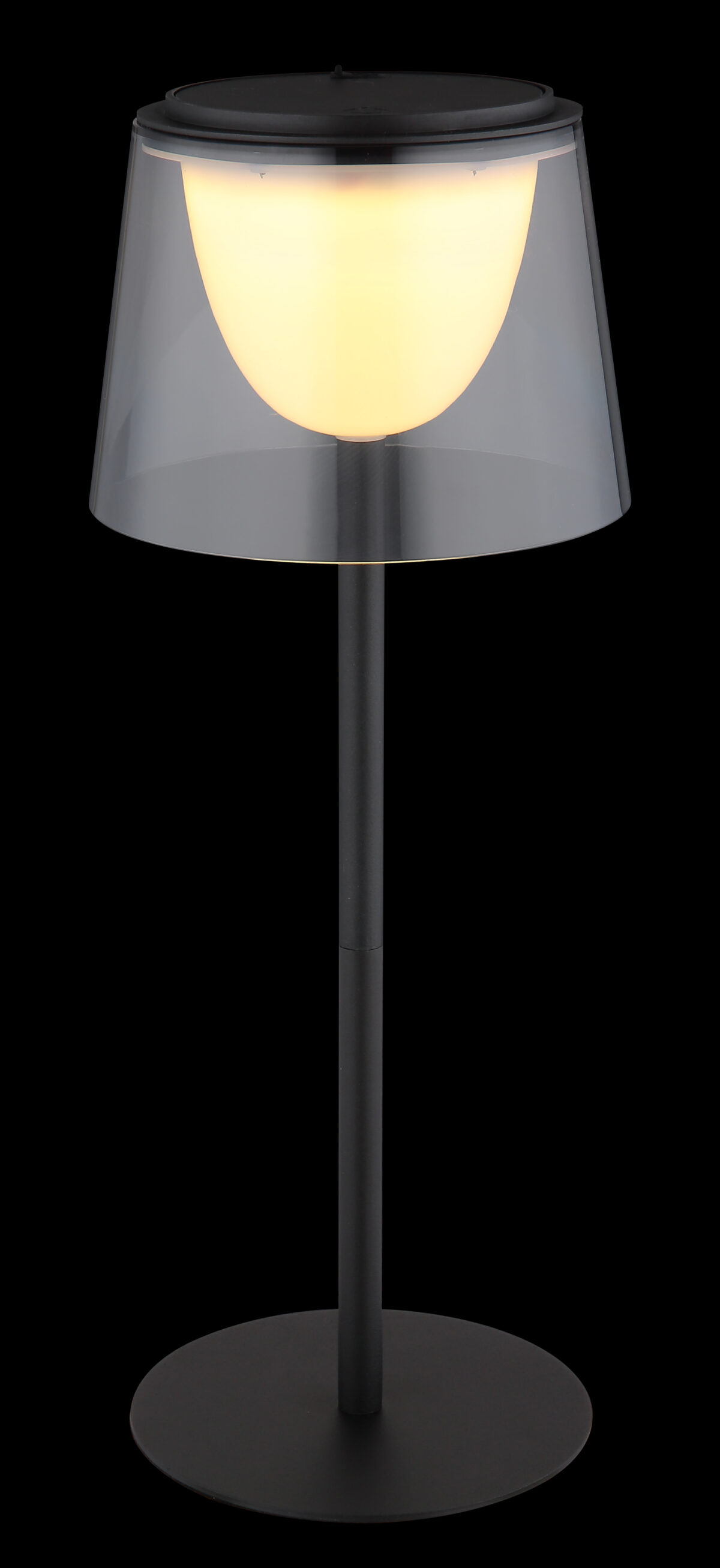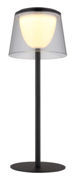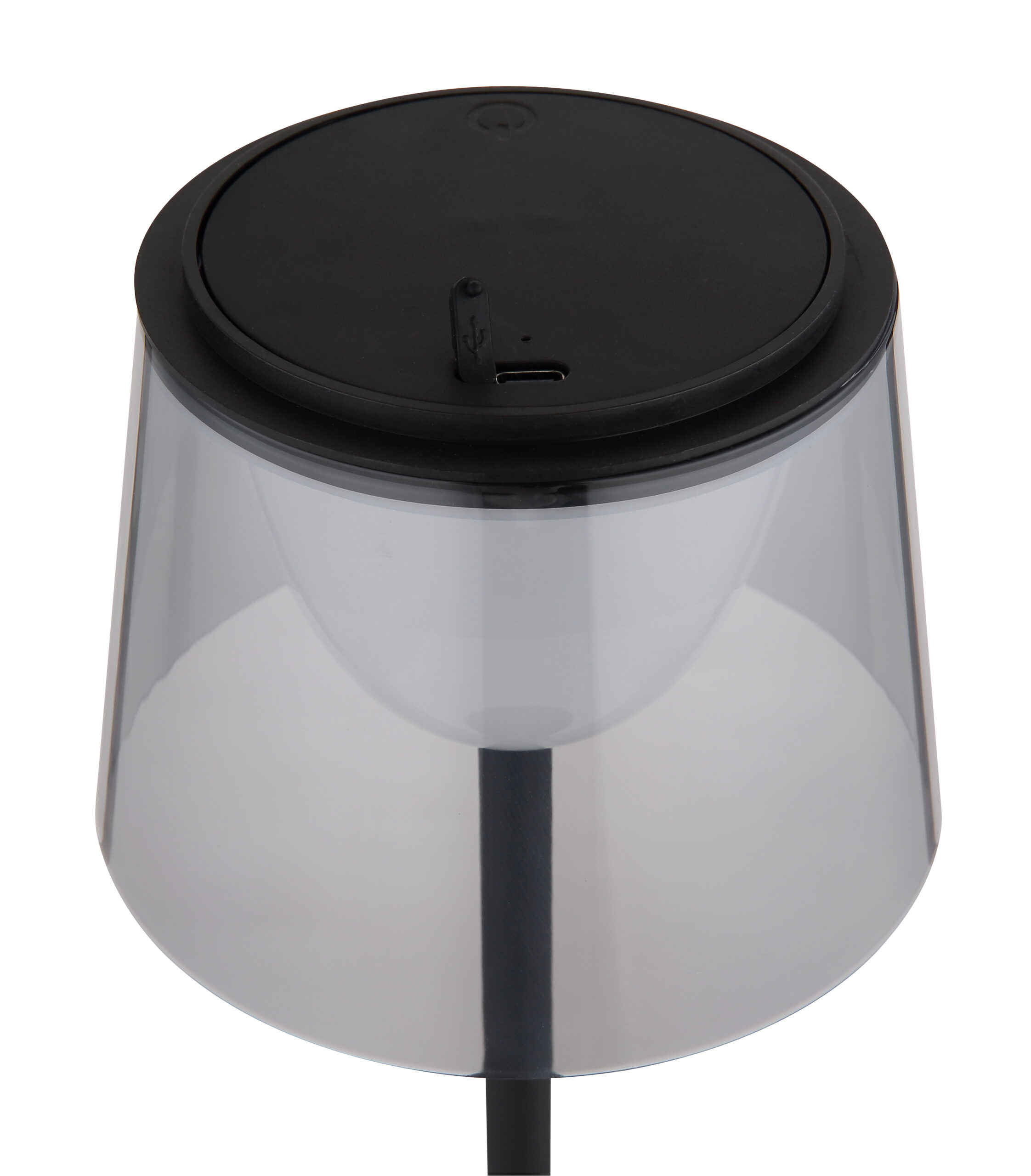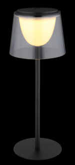 Stolna lampa MARIAM kombinuje moderan dizajn sa raznovrsnom funkcionalnošću. Odlikuje ga ravno metalno kućište u elegantnom crnom mat izgledu i dopunjeno je plastičnom nijansom boje dima, koja u kombinaciji sa crnom, mat plastikom daje savremenu estetiku. Svetiljka se može prigušiti i nudi beskonačni dimer na dodir s praktičnom memorijskom funkcijom koja pohranjuje željeni intenzitet svjetla. Intuitivno uključivanje/isključivanje čini ga lakim za upotrebu. MARIAM dolazi sa adapterom i USB kablom za punjenje. Ima vrijeme punjenja od oko 3 sata i nudi vrijeme gorenja od oko 3 sata, dok nastavlja svijetliti tokom punjenja. Sa svjetlosnom efikasnošću od 150 lumena i temperaturom boje od 3000 K, idealan je za atmosfersko osvjetljenje. Klasa zaštite IP44 osigurava da je svjetiljka otporna na prskanje i stoga se može koristiti iu zaštićenim vanjskim prostorima.