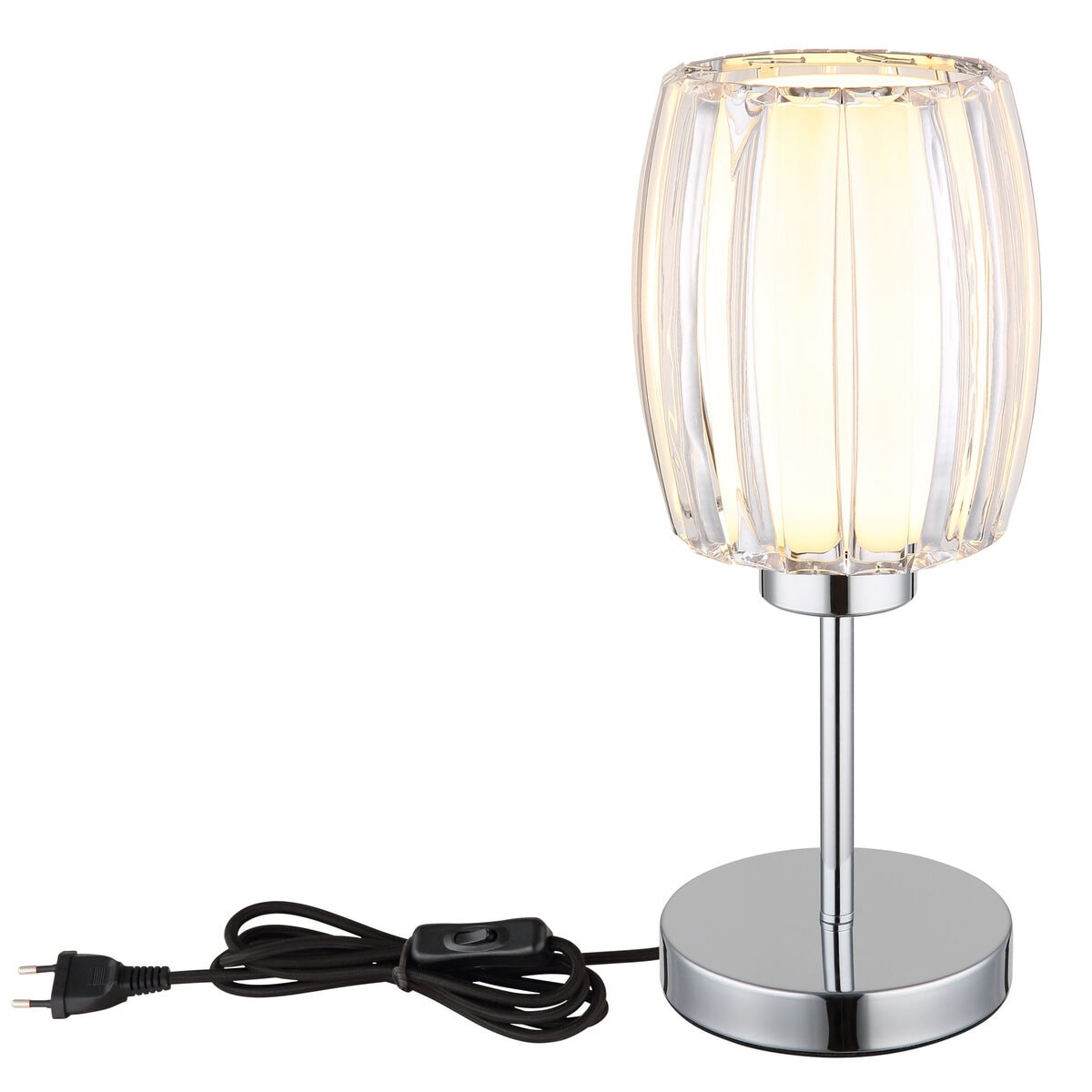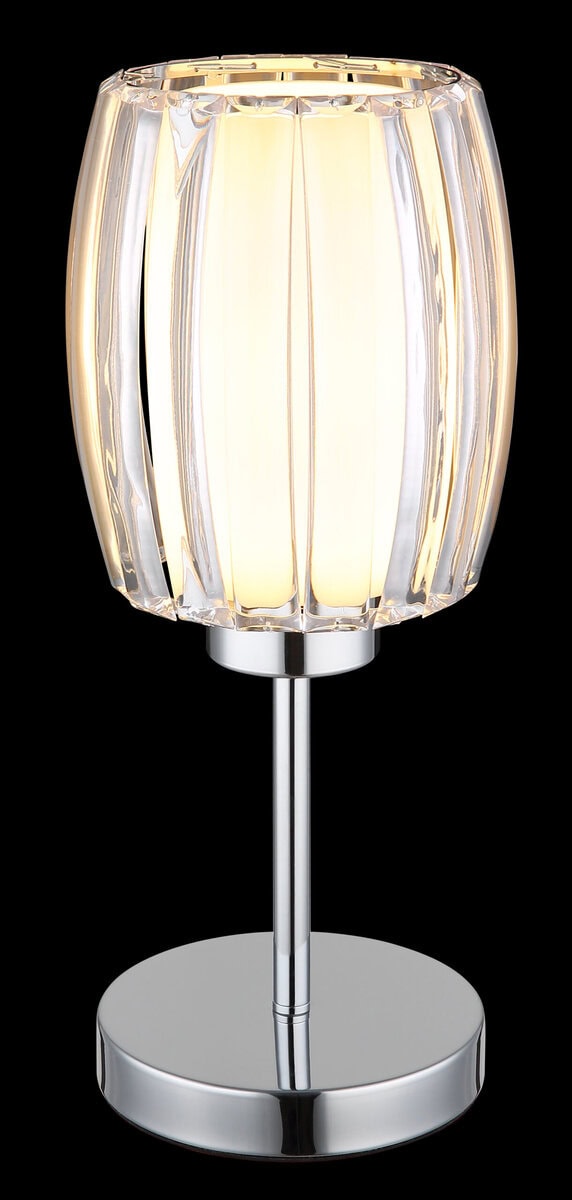Okrugla stolna lampa MARIBEL impresionira modernim i elegantnim dizajnom koji svakoj prostoriji dodaje stilski naglasak. Hromirano metalno kućište daje lampi kvalitetan, sjajan izgled, dok je sjenilo napravljeno od savijenih, prozirnih akrilnih traka sa vanjske strane. Unutrašnjost, opalno staklo pruža meko i ravnomjerno svjetlo koje stvara ugodnu atmosferu. Sa prečnikom od 180 mm, stona lampa MARIBEL je kompaktna i raznovrsna – idealna za radne stolove, noćne ormariće ili kao dodatno osvetljenje u dnevnoj sobi. Lampa ima praktičan prekidač na kablu za lakši rad. MARIBEL serija takođe uključuje odgovarajuće viseće lampe koje upotpunjuju harmoničan dizajn. Stona lampa je dizajnirana za sijalicu E27 (sijalica nije uključena), nudeći fleksibilne opcije za izvor svjetlosti. Funkcionalnost i bezvremenski dizajn čine MARIBEL vrhunac u svakom interijeru.