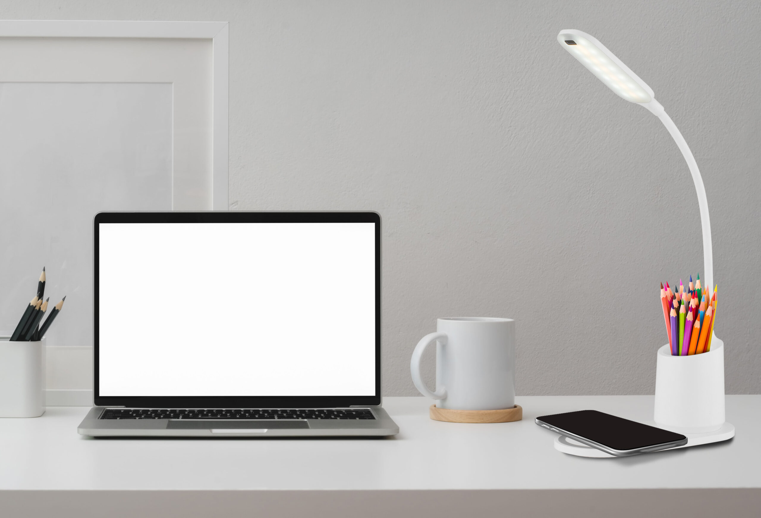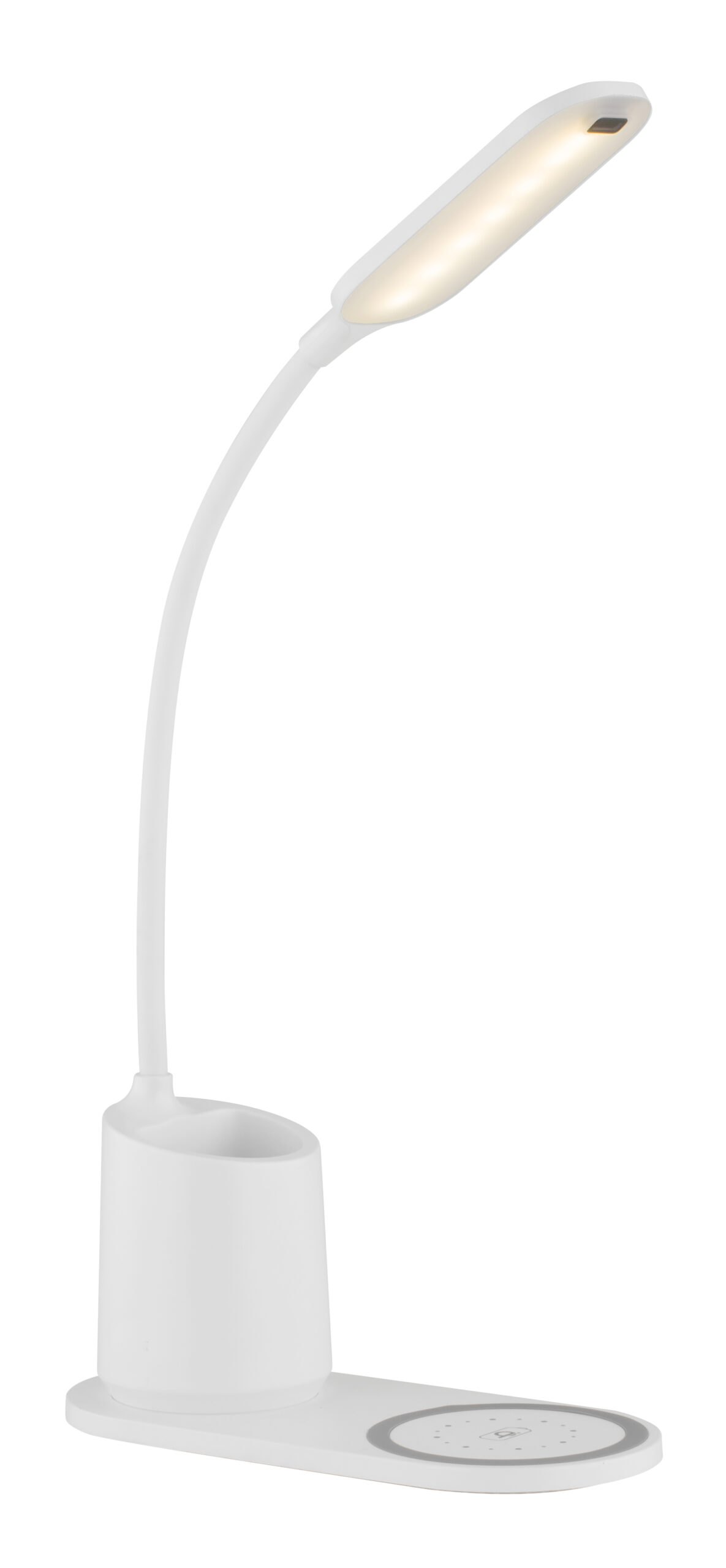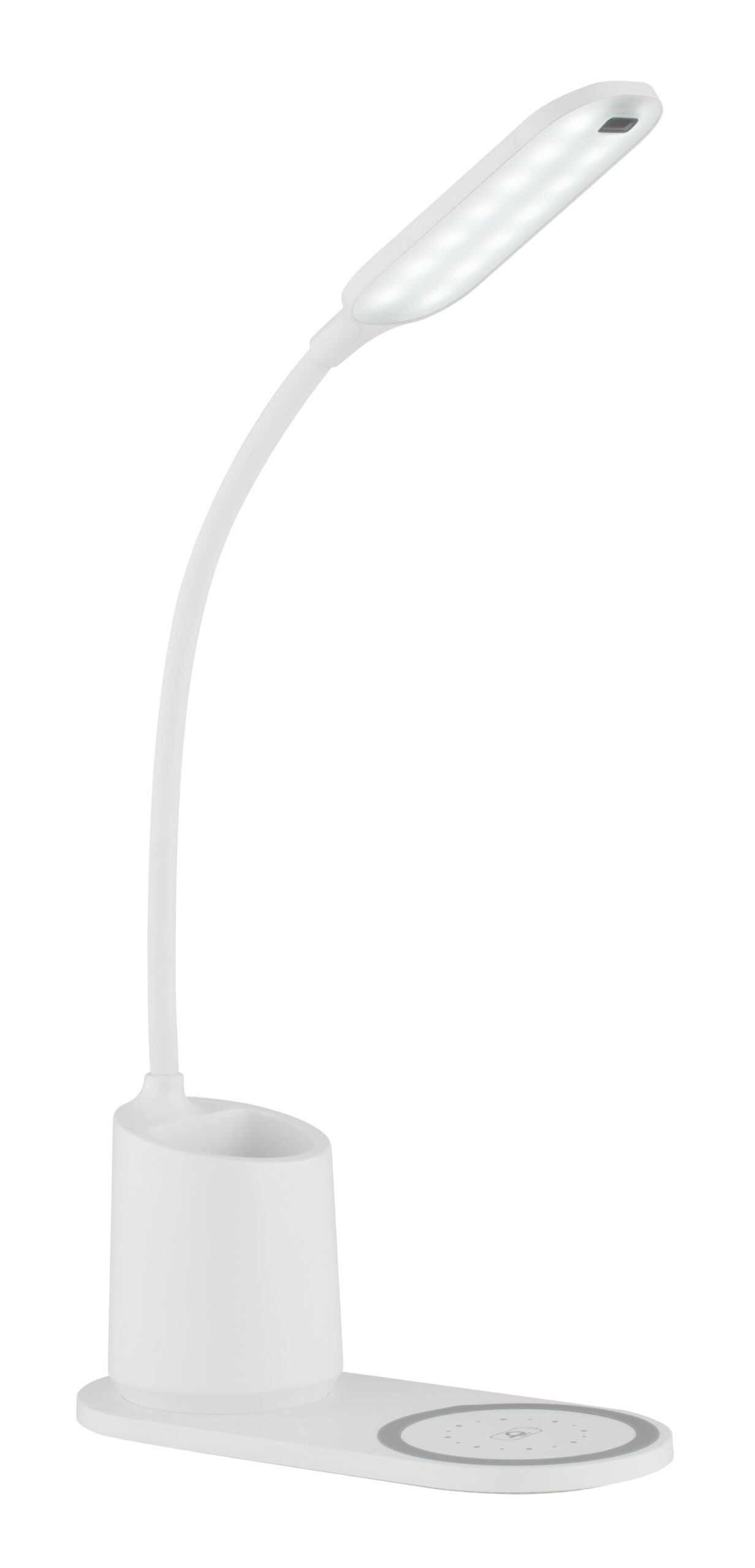Ova stolna lampa iz Melli serije može dodati elegantan izvor svjetlosti vašem radnom mjestu. Napravljena od bijele plastike, stolna lampa se sastoji od fleksibilne šipke sa opal plastikom na vrhu. Ovo pokriva uključene LED sijalice koje pružaju 190 lumena jakog svjetla. Osim toga, svjetiljka se ne može samo prigušiti, možete podesiti i boju svjetla u nekoliko nivoa (2700, 4500 i 6000 Kelvina) između tople bijele i hladne bijele, a također ima funkciju bežičnog punjenja. Sa više artikala iz iste serije možete stvoriti stilski ambijent u svom interijeru.