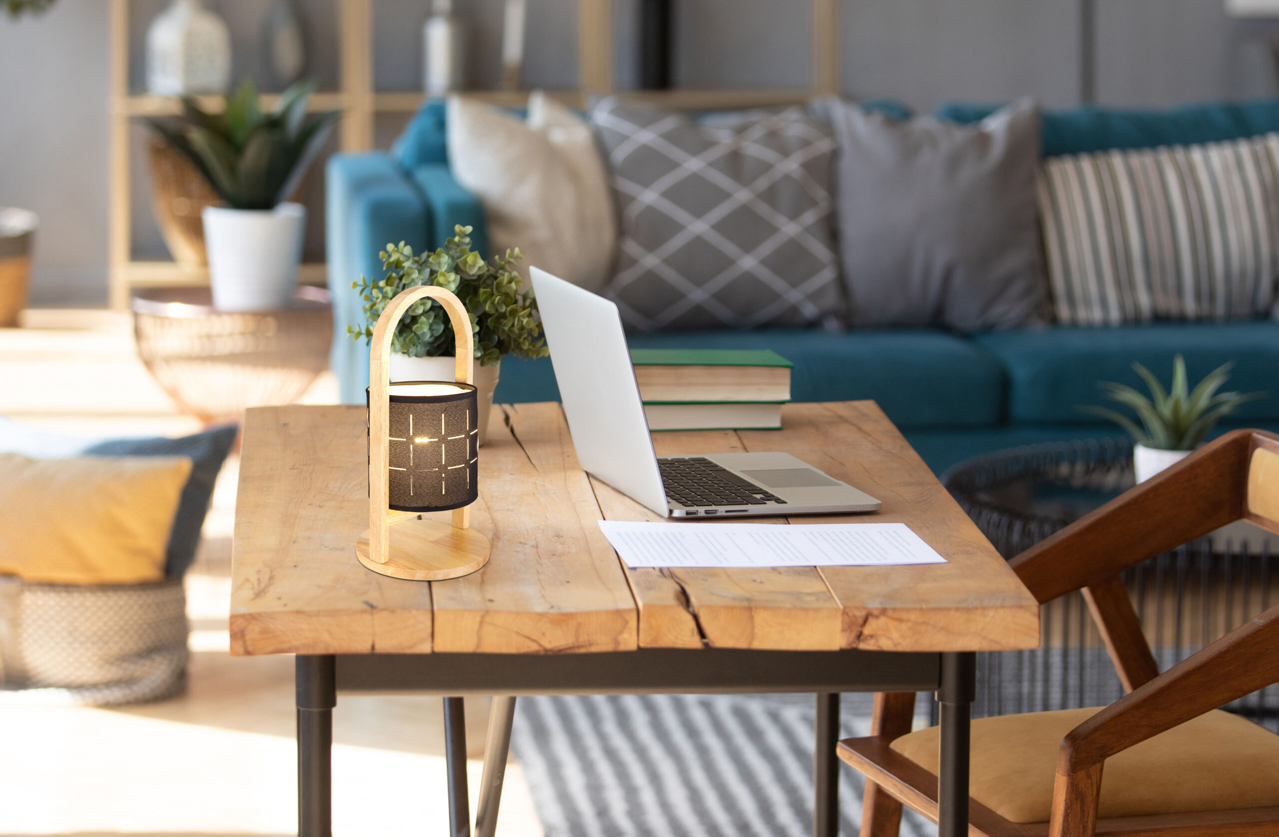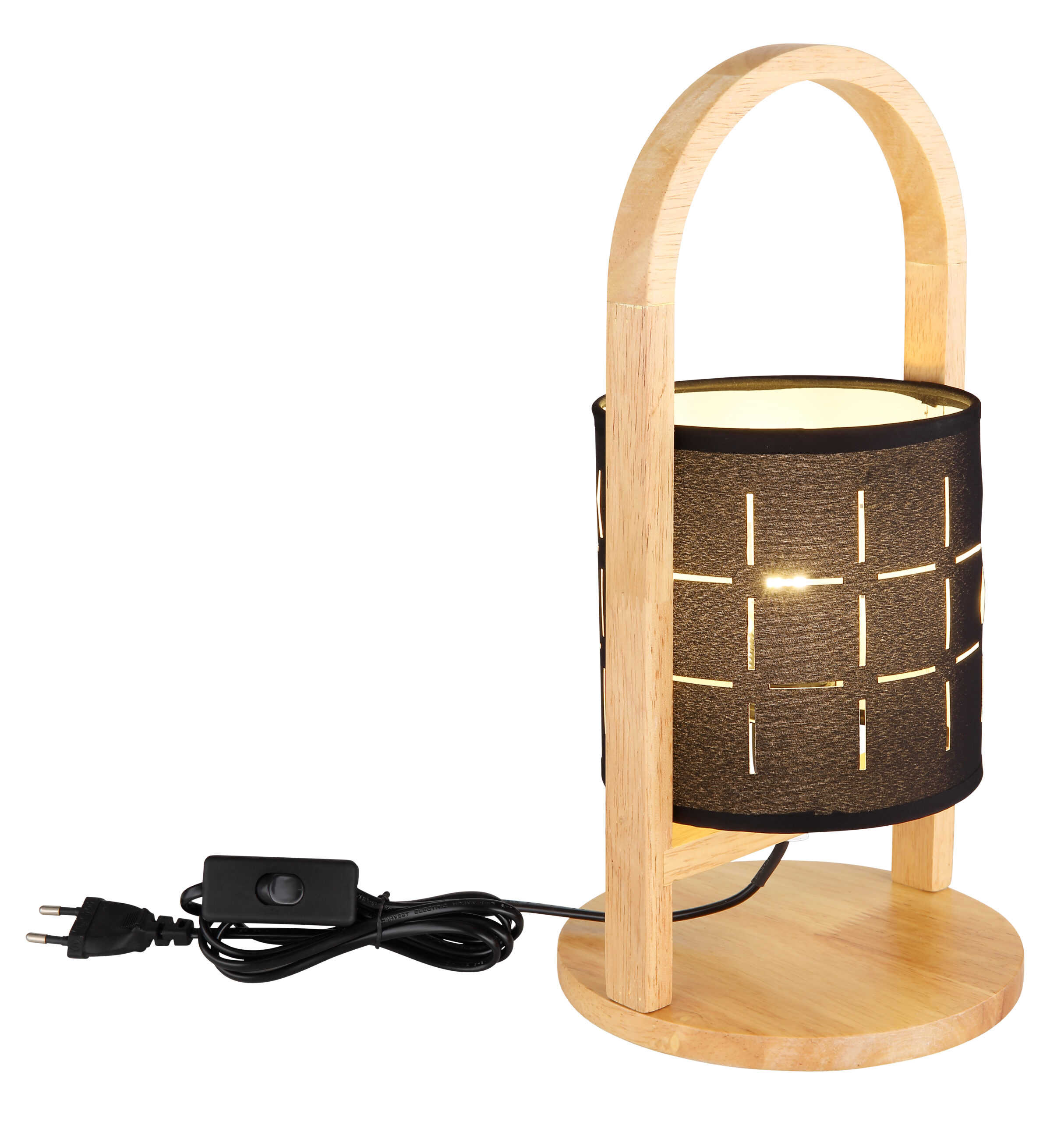 Ova sjajna stolna lampa inspirira prekrasnim dizajnom. Na lijepom drvenom okviru nalazi se okvir E14 s uzornom tekstilnom nijansom u crnoj boji. E14 utičnica vam omogućava da sami odredite boju i svjetlinu do maksimalne snage od 40 vati. Zbog dugotrajnosti i uštede energije preporučujemo LED sijalice.