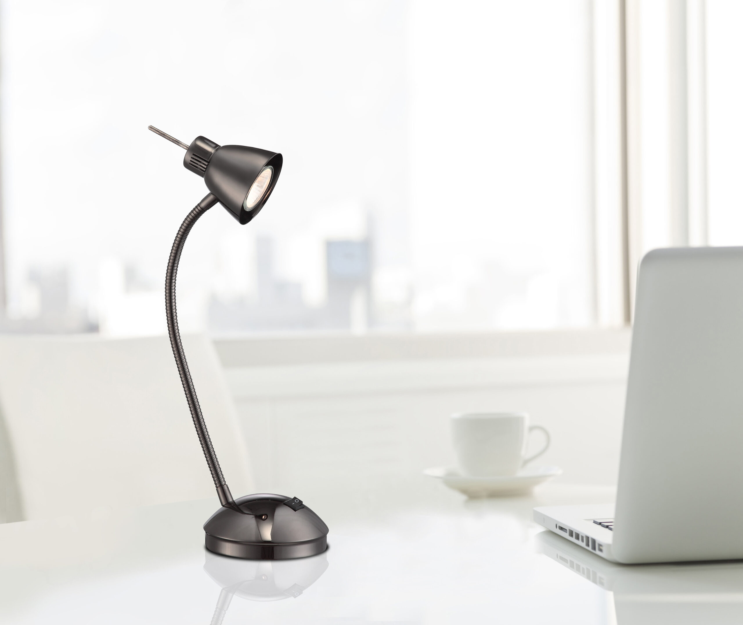 Tradicionalni stoni reflektor Nuova veličine 44 cm ističe svojim bezvremenskim, klasičnim dizajnom. Flexo ruka ovoj crnoj stolnoj lampi daje potrebnu fleksibilnost. Sijalica daje jako svjetlo od 250 lumena sa prijatnom toplom bijelom bojom svjetlosti od 3000K. U istoj seriji modela, ova stolna lampa je dostupna i u drugim bojama.