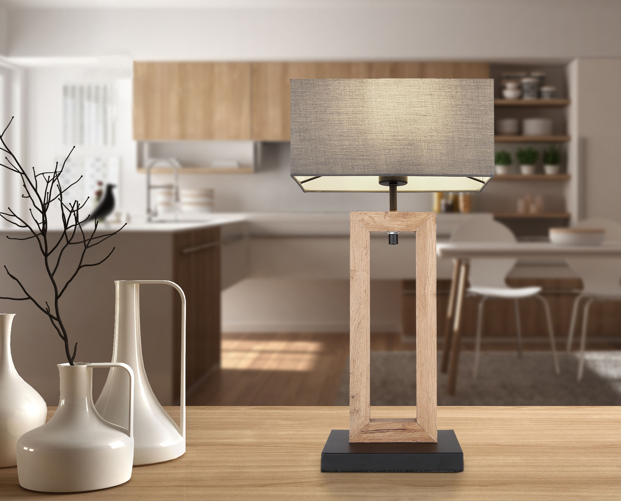 Ova prekrasna stolna lampa inspirira odličnim dizajnom. Iz crne mat pravougaone osnove viri lijepa MDF ploča u sjajnom izgledu drveta. E27 LED utičnica nalazi se ispod pravokutnog sjenila u antracit boji i izvrsno nadopunjuje stonu lampu. E27 LED utičnica vam omogućava da odredite do maksimalne snage od 9 vati, čak i prema boji svjetla i svjetlini. Sa daljnjim modelima ove serije možete savršeno upotpuniti svoj dnevni boravak. Zbog dugotrajnosti i uštede energije preporučujemo LED lampe.