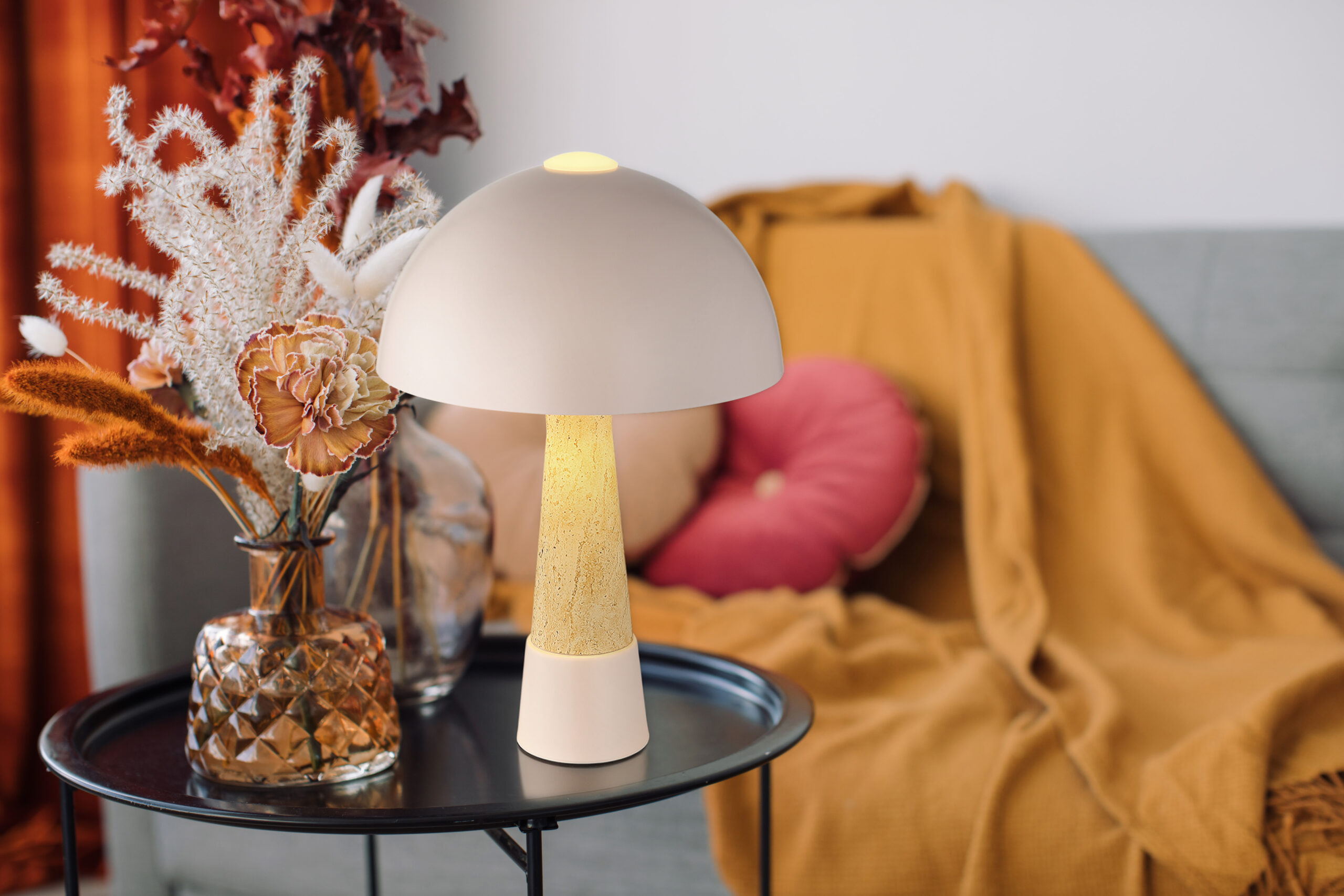 Okrugla stolna lampa PAULIN impresionira svojim prepoznatljivim oblikom pečuraka i elegantnom kombinacijom mat metala boje šampanjca i izgleda travertina. Okruglo metalno kućište u mat šampanjcu savršeno se uklapa sa jednako mat metalnim abažurom, dajući lampi moderan, topao izgled. Sa promjerom od 250 mm, PAULIN je idealan za stolove, noćne ormariće ili bočne stolove, stvarajući ugodno, atmosfersko svjetlo. Praktičan prekidač na kablu omogućava udoban i lak rad. Opremljen grlom E27 (sijalica nije uključena), PAULIN nudi maksimalnu fleksibilnost u odabiru pravog izvora svjetlosti—bilo toplo ili neutralno bijelo, prema individualnim potrebama. Visokokvalitetna izrada i promišljen dizajn čine PAULIN elegantnim vrhuncem u svakoj prostoriji. Bilo da se radi o funkcionalnoj rasvjeti za zadatke ili ugodnom akcentnom osvjetljenju—PAULIN savršeno kombinuje estetiku i funkcionalnost.