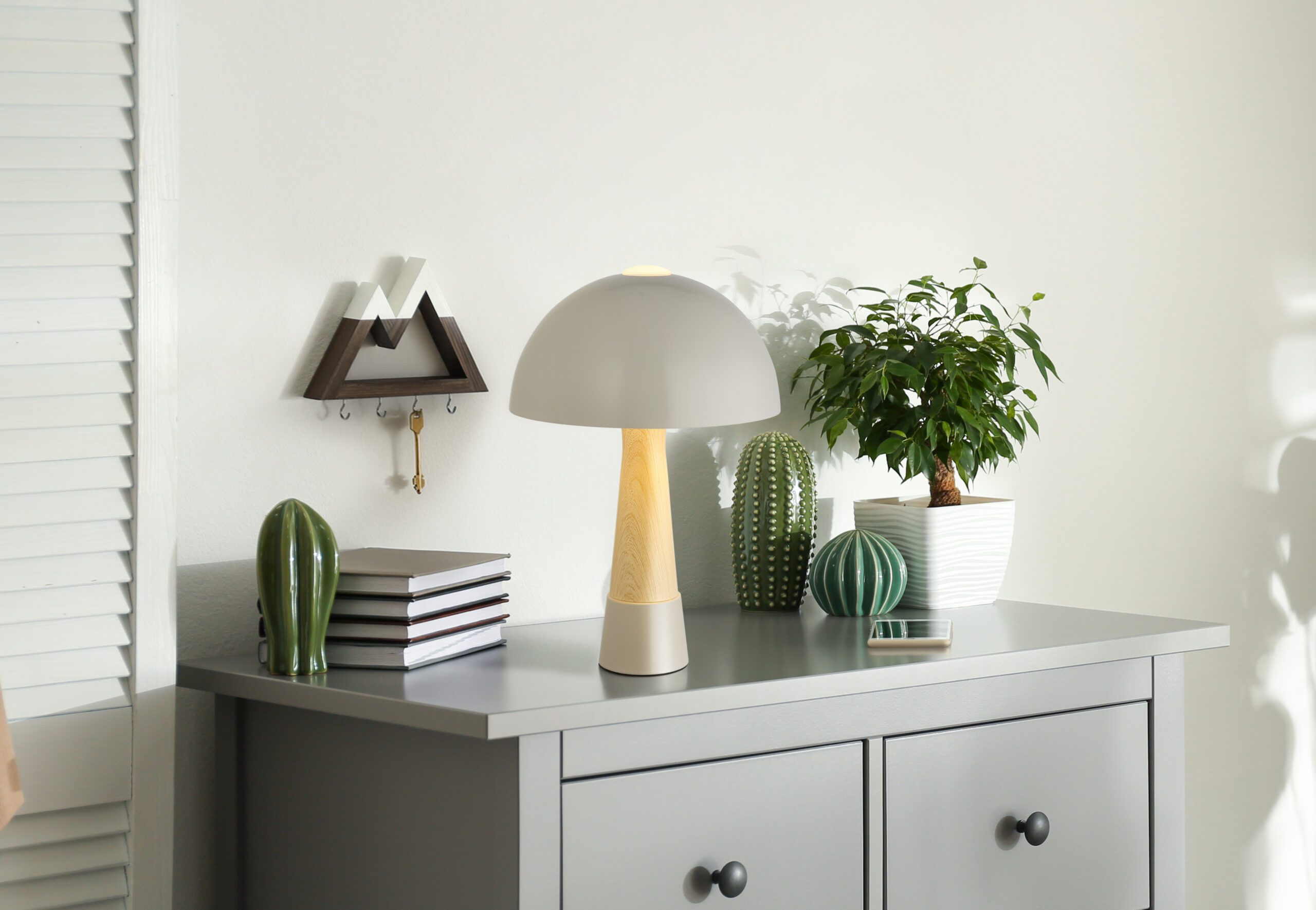 Stolna lampa PAULIN inspiriše svojim nepogrešivim dizajnom u obliku pečurke i daje vašem domu moderan akcenat. Okruglo kućište od sivog, mat metala i izgleda drveta ne samo da privlači poglede, već je i posebno izdržljivo i lako se čisti. S promjerom od 250 mm, lampa se savršeno uklapa u noćne ormariće, police ili stolove. Nijansa, koja je također mat siva, osigurava ravnomjernu distribuciju svjetlosti i stvara ugodnu atmosferu, idealnu za čitanje ili opuštanje. Praktičan prekidač na kablu omogućava praktično uključivanje i isključivanje. Imajte na umu da potrebna sijalica E27 nije uključena, tako da možete odabrati boju svjetla prema vašim ličnim željama. Sa PAULIN stolnom lampom ne samo da dodajete svjetlost svojoj sobi, već i stilski dizajn – savršen za kreativne životne prostore i moderan stil života!