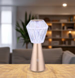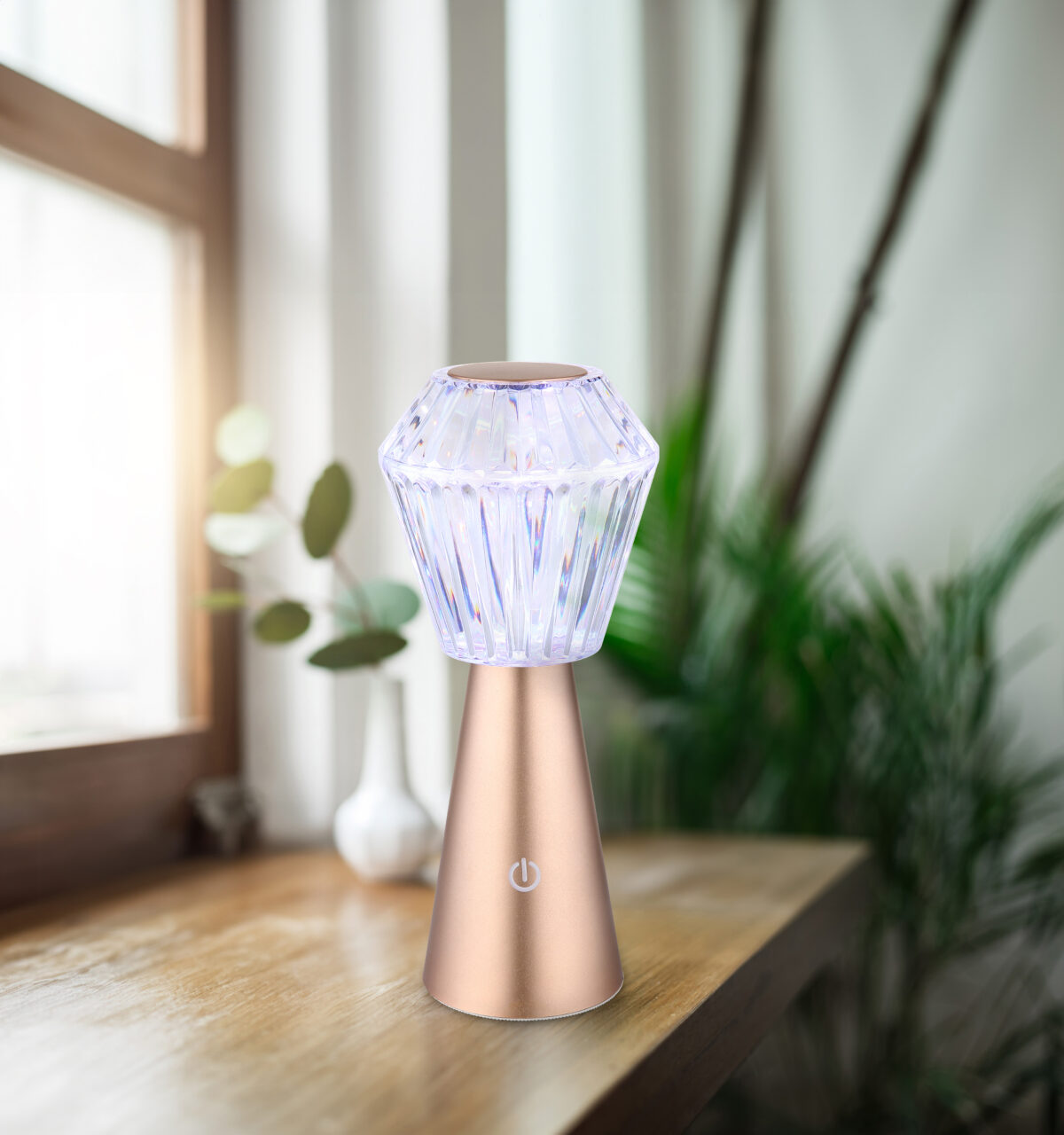 Otkrijte elegantnu stolnu lampu POLIMI – elegantan dodatak koji će svakoj prostoriji dodati dašak glamura. Lampa se predstavlja u atraktivnom obliku okrugle čaše i ima glamurozni kristalni efekt na vrhu. Mat kućište od plastike boje šampanjca savršeno se uklapa u prozirni vizir, dok srebrni metalni detalji daju moderan naglasak. Vrhunac stolne lampe POLIMI je integrirana RGB promjena boje, koja vašoj rasvjeti daje kreativan dodir. Ne samo da možete promijeniti boje, već ih i popraviti, uz praktičnu memorijsku funkciju koja čuva vašu omiljenu boju. Svjetlo dolazi s adapterom i USB kablom za punjenje i njime se može jednostavno upravljati putem dodira za uključivanje/isključivanje. Sa vremenom punjenja od samo 4 sata i vremenom sagorevanja do 6 sati, kao i sa 15 lumena snage, savršen je pratilac za atmosferske večeri – pa čak i svijetli tokom punjenja.
