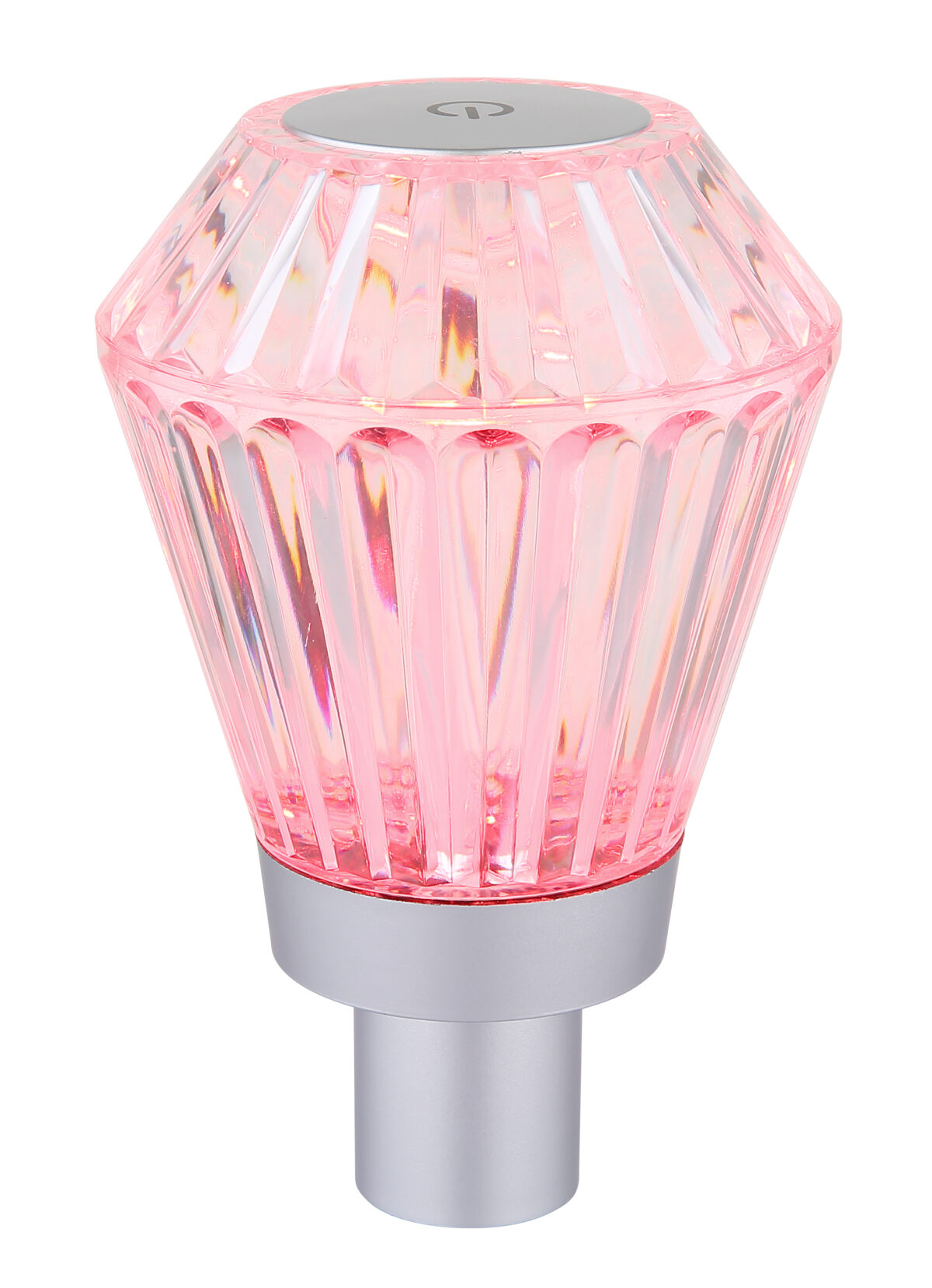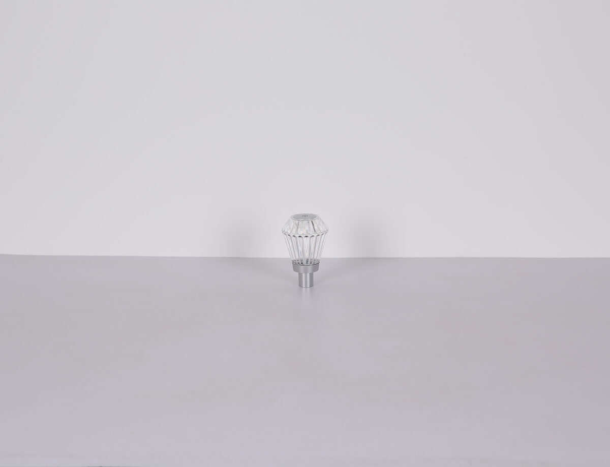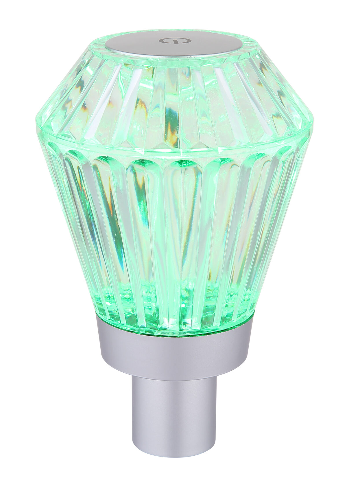 Doživite elegantnu stolnu lampu POLIMI, koja oduševljava svojim jedinstvenim dizajnom u obliku kristala. Ova inovativna lampa je posebno dizajnirana za postavljanje na boce i pretvara svaku bočicu u blistav sjaj. Mat plastično kućište srebrne boje i prozirno sjenilo s kristalnim efektom daju lampi moderan i elegantan izgled. Stolna lampa POLIMI nudi fascinantnu promjenu RGB boje, tako da možete prilagoditi boju ovisno o vašem raspoloženju. Osim toga, možete popraviti RGB boje i podsjetiti vas na svoje favorite zahvaljujući praktičnoj funkciji memorije. Rukovanje je jednostavno i intuitivno preko funkcije dodira/isključivanja. Lampa je praktičnog prečnika 110 mm i dolazi sa adapterom i USB kablom za punjenje. Nakon vremena punjenja od samo 4 sata, pruža do 6 sati atmosferskog svjetla sa snagom od 15 lumena. Posebno praktično: POLIMI takođe svetli tokom punjenja. Dodajte magični štih svojim večerima uz svestranu stolnu lampu POLIMI!