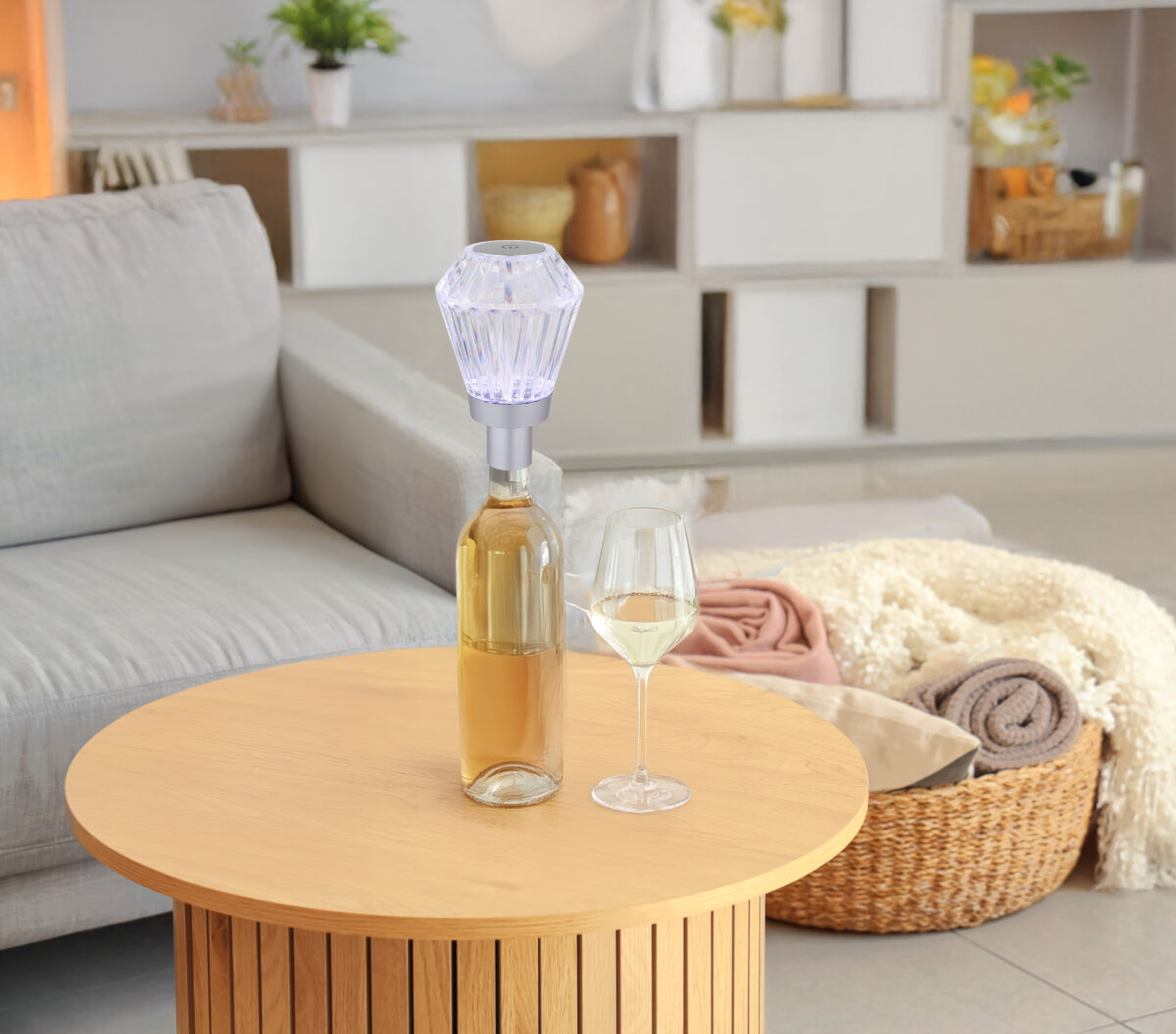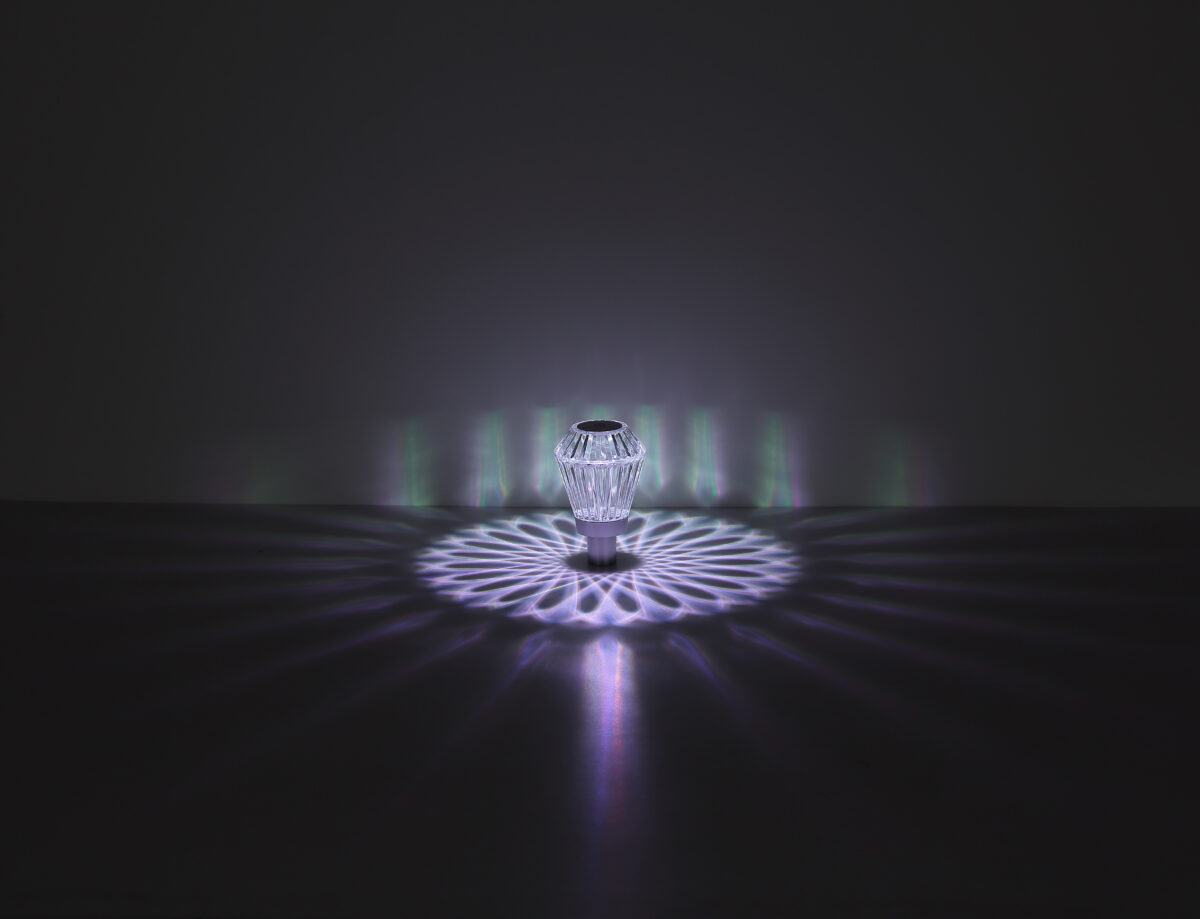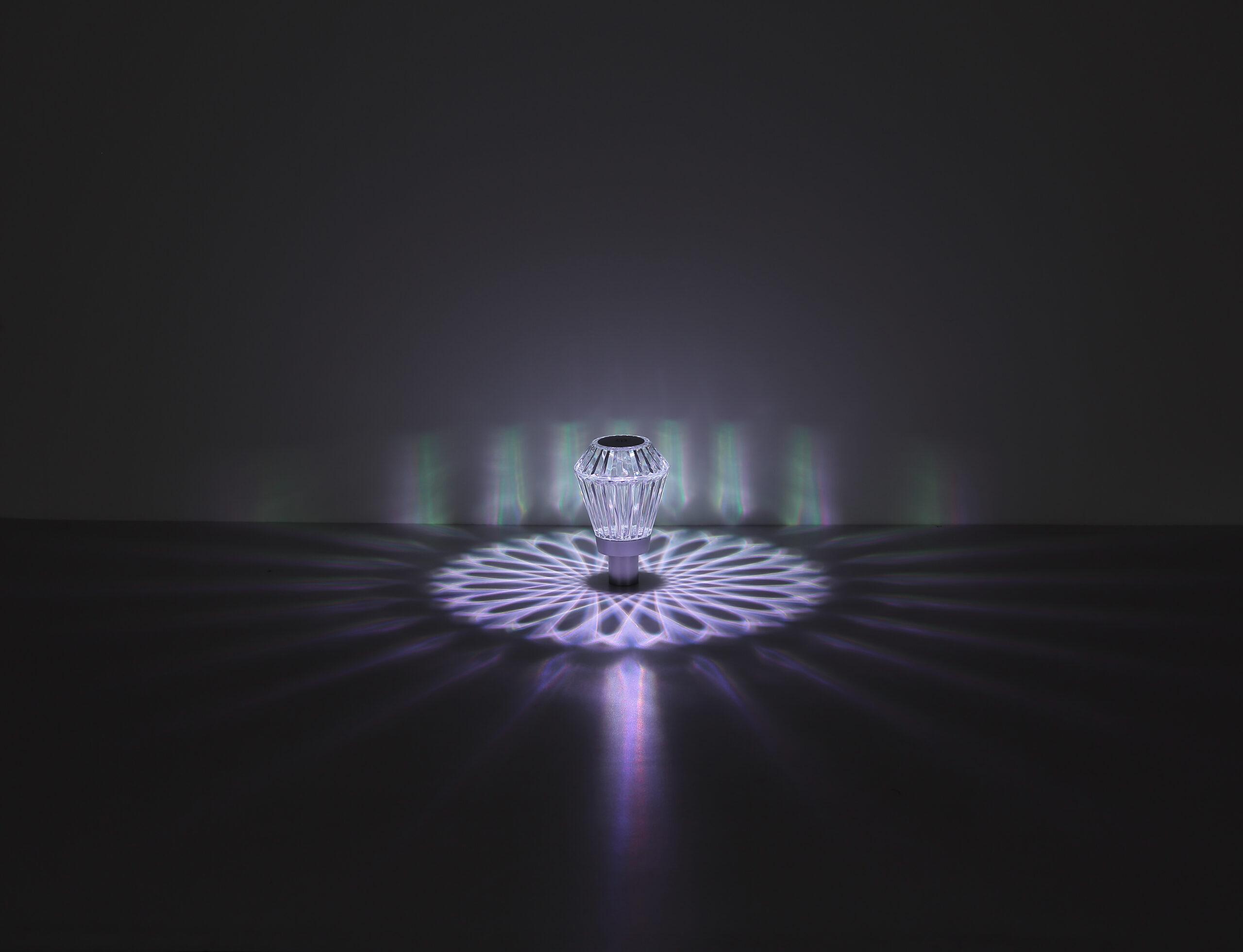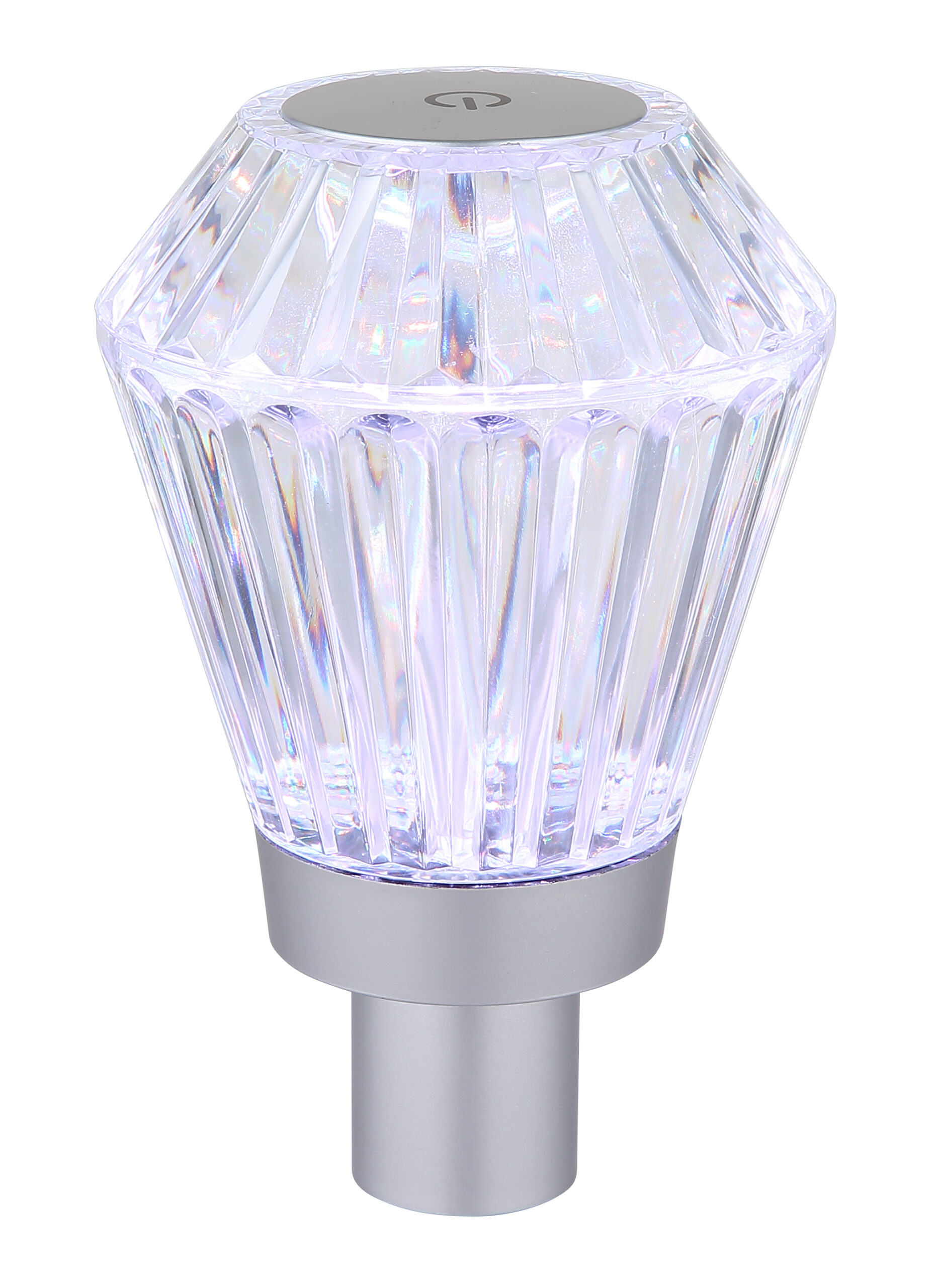 Doživite elegantnu stolnu lampu POLIMI, koja oduševljava svojim jedinstvenim dizajnom u obliku kristala. Ova inovativna lampa je posebno dizajnirana za postavljanje na boce i pretvara svaku bočicu u blistav sjaj. Mat plastično kućište srebrne boje i prozirno sjenilo s kristalnim efektom daju lampi moderan i elegantan izgled. Stolna lampa POLIMI nudi fascinantnu promjenu RGB boje, tako da možete prilagoditi boju ovisno o vašem raspoloženju. Osim toga, možete popraviti RGB boje i podsjetiti vas na svoje favorite zahvaljujući praktičnoj funkciji memorije. Rukovanje je jednostavno i intuitivno preko funkcije dodira/isključivanja. Lampa je praktičnog prečnika 110 mm i dolazi sa adapterom i USB kablom za punjenje. Nakon vremena punjenja od samo 4 sata, pruža do 6 sati atmosferskog svjetla sa snagom od 15 lumena. Posebno praktično: POLIMI takođe svetli tokom punjenja. Dodajte magični štih svojim večerima uz svestranu stolnu lampu POLIMI!