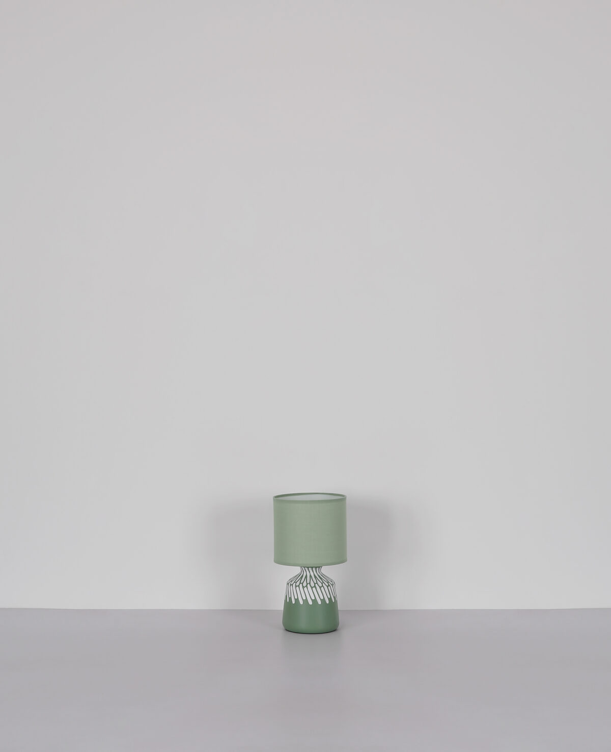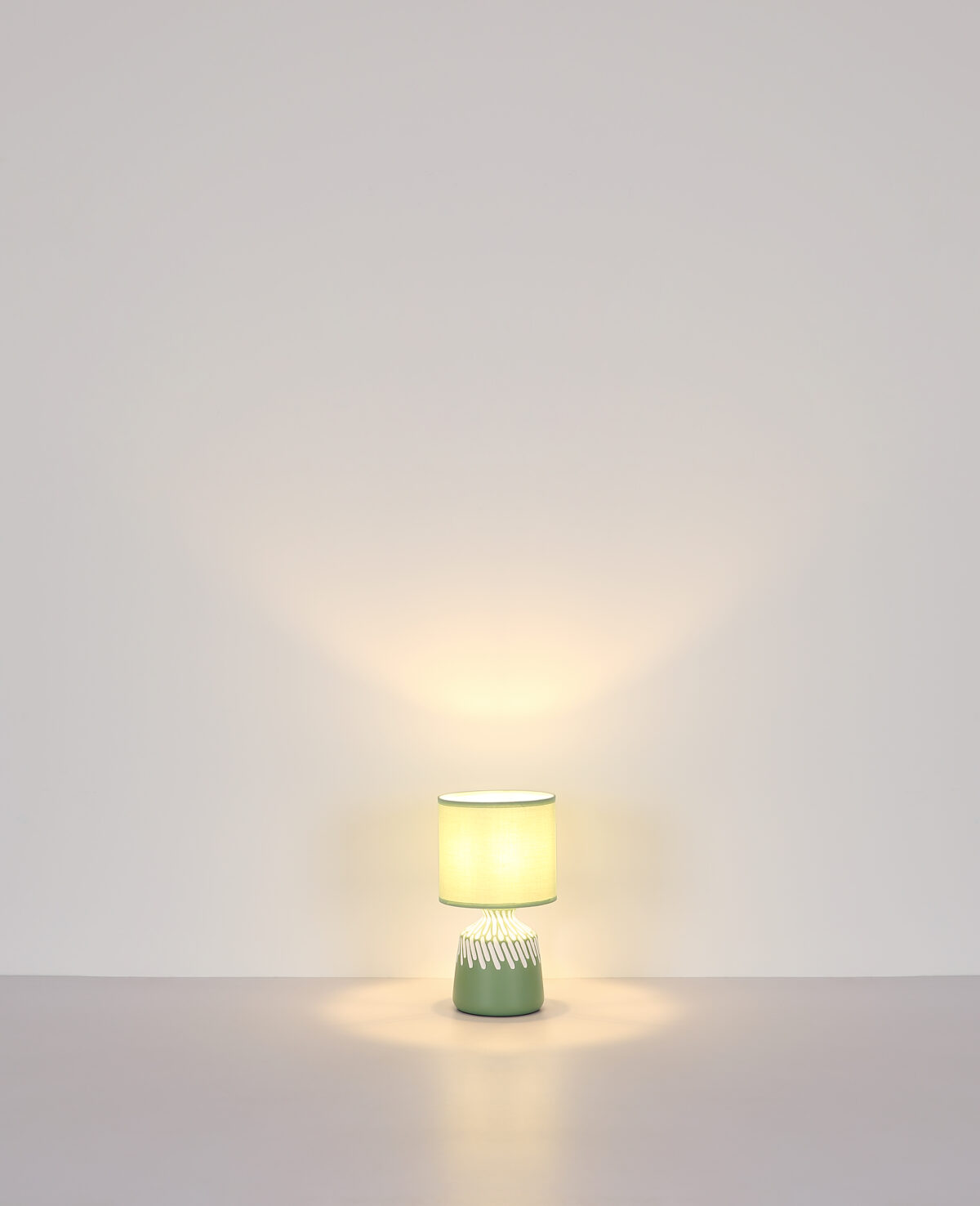 RELA stolna lampa je stilski vrhunac za svaki interijer. Njegova okrugla baza sa umjetničkim ukrasima čini osnovu za cilindričnu nijansu tkanine, koja je zadržana u nježnoj blijedozelenoj. Ova kombinacija keramike i tekstila daje lampi elegantnu, bezvremensku estetiku. Tijelo izrađeno od blijedozelene keramike savršeno se usklađuje sa nijansom tekstila i osigurava skladnu cjelokupnu sliku. Svjetlo ima praktičan prekidač na kablu koji ga čini lakim za korištenje. Sa prečnikom od 175 mm, RELA stona lampa je dovoljno kompaktna da se bez napora uklopi u širok spektar prostorija, dok grlo E14 nudi fleksibilnost u odabiru pravih sijalica. Idealno za svaku prostoriju u kojoj se funkcionalnost susreće sa stilskim dizajnom.
