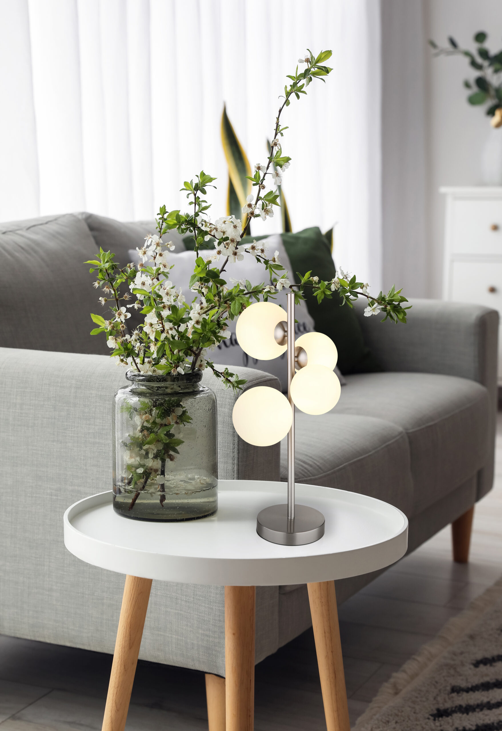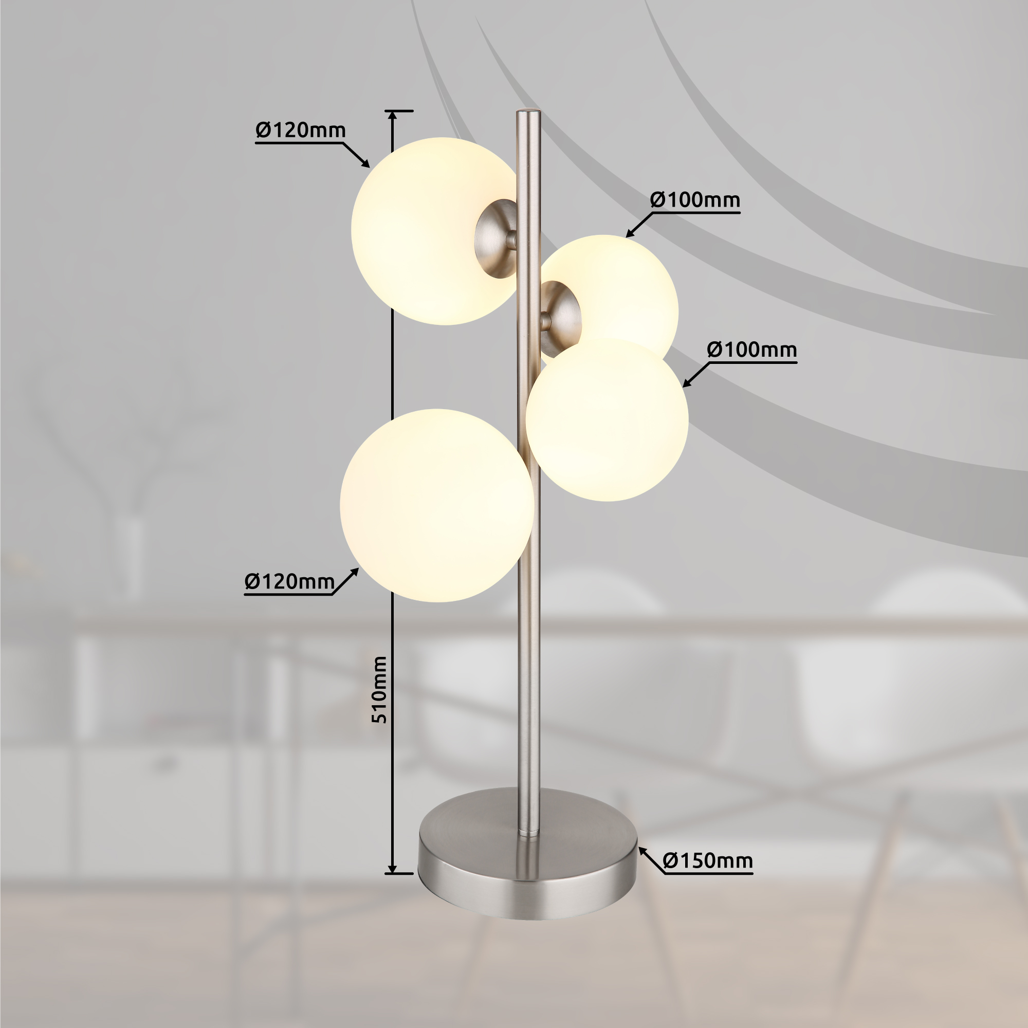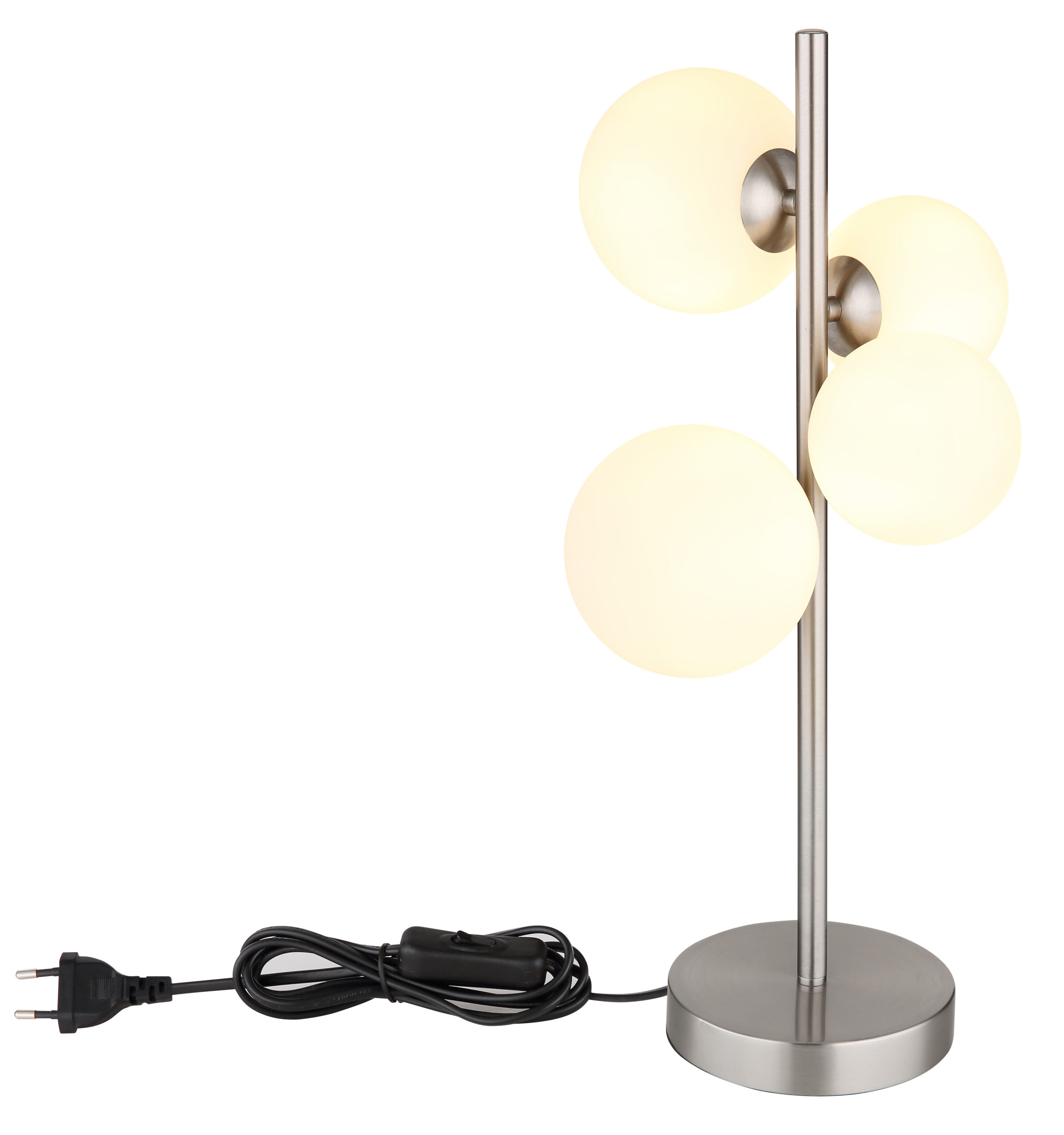 Otkrijte elegantnu stolnu lampu RIHA i dodajte dašak bezvremenske ljepote svom domu. Napravljena od mat metala nikla i opal stakla, ova lampa se neprimjetno uklapa u svaki interijer. Sa veličinom od 270x230x510mm i dužinom kabla od 1500mm, nudi raznovrsne mogućnosti postavljanja. Praktičan prekidač na kablu omogućava praktičan rad. RIHA stona lampa je opremljena sa četiri energetski efikasne G9 LED sijalice (3,5W, 230V), koje pružaju toplo, prijatno osvetljenje sa izvorom svetlosti od 350lm i izlaznom snagom od 310lm pri temperaturi boje od 3000K. Postavite elegantne akcente u svoj dom uz RIHA stonu lampu.