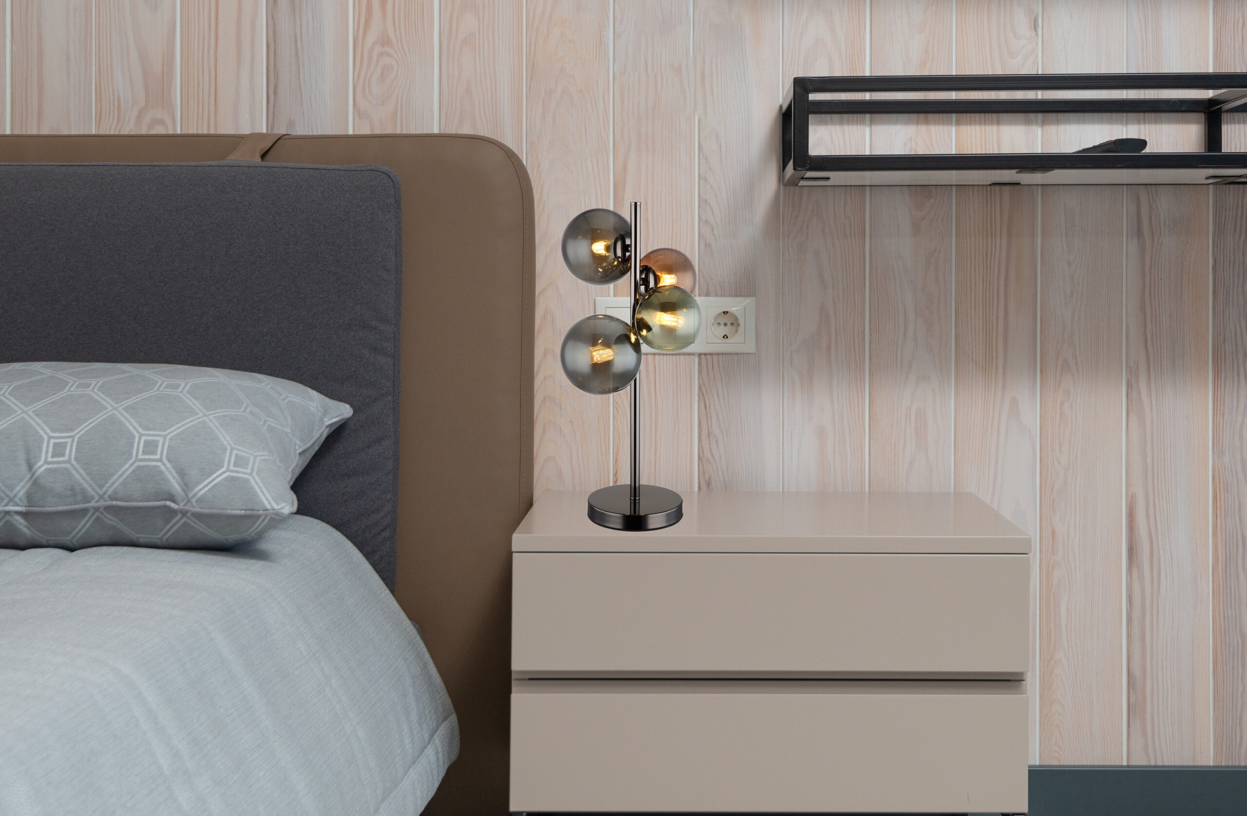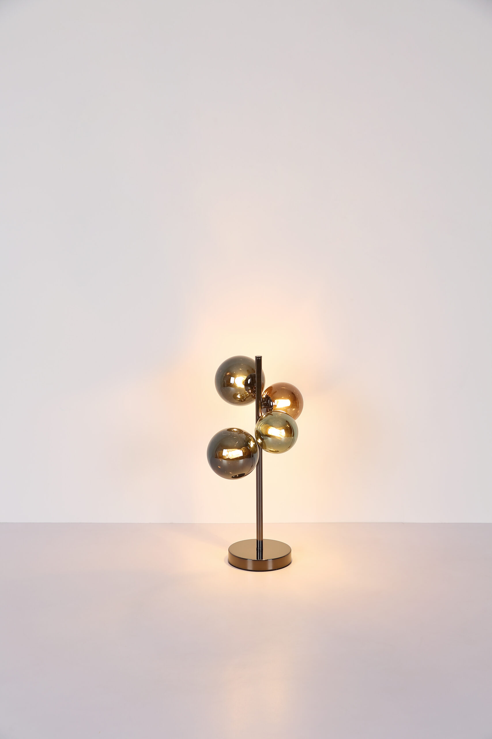 RIHA stolna lampa je pravi vrhunac dizajna. Svojim okruglim i modernim dizajnom savršeno se uklapa na svaki sto ili noćni ormarić. Različite veličine stakla daju lampi jedinstven šarm. Tijelo RIHA stolne lampe izrađeno je od mat sivog metala i daje joj plemenit izgled. Sjajne staklene kugle sjenila stvaraju ugodnu igru svjetla i stvaraju ugodnu atmosferu. Sa dimenzijama D:270 mm i Š:230 mm, RIHA privlači poglede na svakom stolu. Sa snagom od 290 lumena, RIHA stona lampa obezbeđuje dovoljnu osvetljenost u svakoj prostoriji. Boje stakla u bronzi, zelenoj i benzinskoj daju stonoj lampi ono nešto i unose boju i stil u vaš dom. Stolna lampa RIHA nije samo privlačna, već je i funkcionalna. Zahvaljujući preklopnom prekidaču na kablu, paljenje i gašenje lampe je dečija igra. Neka vaš dom zablista u novom svjetlu uz RIHA stonu lampu.