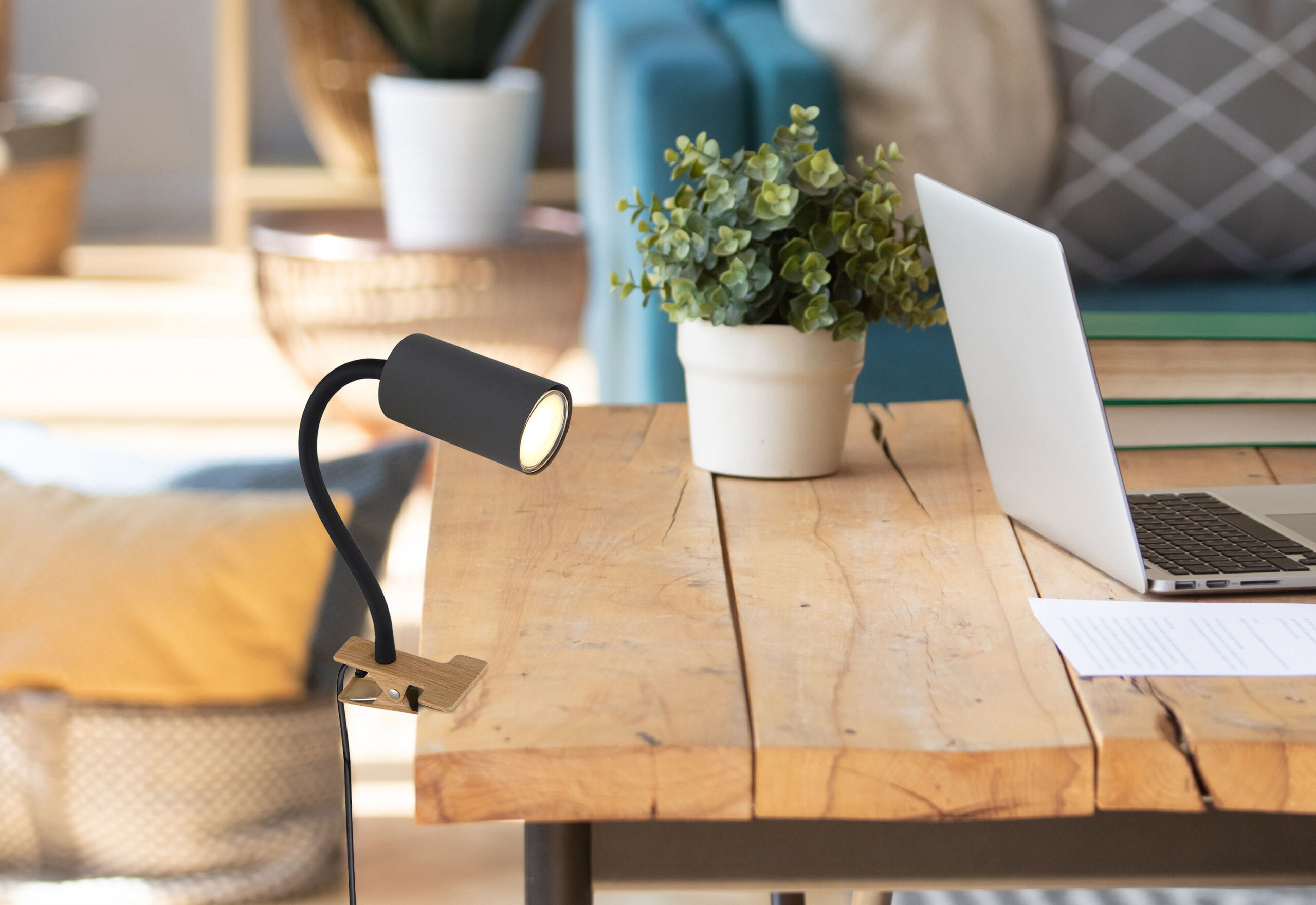 Mali klasični stezni reflektor Robby izrađen je od crne plastike sa ukrasima od drveta i mat metala u grafitu. Ima prekidač koji omogućava paljenje i gašenje lampe, a takođe je i pomičan (flexo). Utičnica GU10 ostavlja vam izbor izvora svjetlosti (maks. 25W), a time i intenziteta svjetla i boje svjetla. Zbog dugotrajnosti i uštede energije preporučujemo LED lampe.