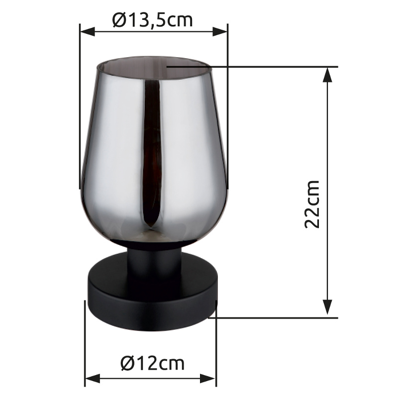 RYAN je elegantna i bezvremenska stolna lampa koja se ističe svojim zaobljenim oblicima i lukovičastim staklom sa žljebovima. Tijelo RYAN-a je izrađeno od crnog metala mat boje, dok je sjenilo napravljeno od stakla boje dima. Poseban dizajn pehara pruža ugodno i toplo osvjetljenje. Viseća lampa je ostavljena na kablu i može se lako kontrolisati zahvaljujući preklopnom prekidaču na kablu. Sa prečnikom od 135 mm, RYAN je savršen ulazak u svet elegantnih svetlosnih rešenja. Idealan je za svaku prostoriju, bilo da je spavaća soba, trpezarija ili kancelarija. RYAN je savršena kombinacija funkcije i dizajna koji će sigurno izazvati vaše interesovanje!