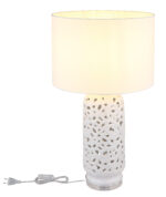 Otkrijte bezvremensku eleganciju naše nove stolne lampe: KERAMIČKA STOLNA LAMPA BIJELA. Njegov okrugli dizajn daje svakoj prostoriji harmoničnu atmosferu. Keramička baza, sa prefinjenom strukturom, daje dašak sofisticiranosti ovoj lampi. Tijelo, izrađeno od mat bijele keramike i prozirnog akrila, upotpunjeno hromiranim metalom, kombinuje stil i izdržljivost. Tekstilna nijansa u svijetlo bijeloj boji pruža meku igru svjetla i ugodno osvjetljenje. Sa preklopnim prekidačem na kablu, ovo svjetlo je jednostavno za korištenje. Sa prečnikom od 400 mm i snagom od 40W, savršen je za svaki stol. Dajte svom domu izvanredno dizajniran dodir sa STONOM SVJETOM KERAMIČNO BIJELO i uživajte u elegantnom ambijentu u svakoj prostoriji.