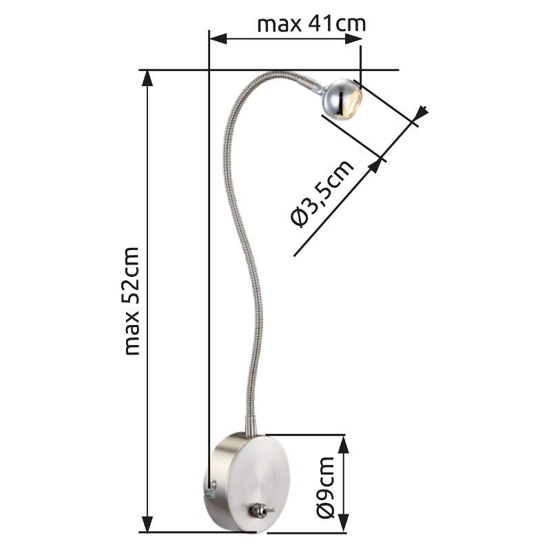 Ovaj reflektor za stezanje je vrlo jednostavan, ali ga njegov izgled čini vrlo zanimljivim. Na niklovanoj mat hromiranoj stezaljci nalazi se duga fleksibilna ruka na čijem se kraju nalazi mali reflektor. Ovo sija u jakom svjetlu od 150 lumena i toploj bijeloj svjetlosti od 3000K. Oprema lampe od 48 cm uključuje prekidač i kroz stezaljku reflektor se može pričvrstiti skoro svuda.