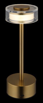 Stolna lampa SHIRA impresionira svojim modernim dizajnom i okruglim oblikom. Telo izrađeno od mat metala boje mesinga daje lampi elegantan dodir. Sjenilo je izrađeno od prozirnog akrila, akrila boje dima i opal plastike, što osigurava ugodnu difuziju svjetlosti. Stolna lampa SHIRA se može prigušiti i ima beskonačni dimer na dodir kao i mogućnost fiksiranja boja. Sa snagom od 108 lumena i varijabilnom svetlosnom temperaturom od 2700 K do 4000 K, nudi individualno osvetljenje prema vašim željama. Svjetlo dolazi s USB kabelom za punjenje i ima praktičnu funkciju za uključivanje/isključivanje na dodir za jednostavno uključivanje i isključivanje. Sa vremenom punjenja od oko 4 sata i vremenom gorenja od oko 6 sati, pouzdan je izvor svjetlosti za razne prilike. Osim toga, može se koristiti i za vrijeme punjenja, što dodatno povećava njegovu fleksibilnost.