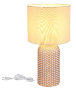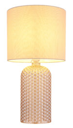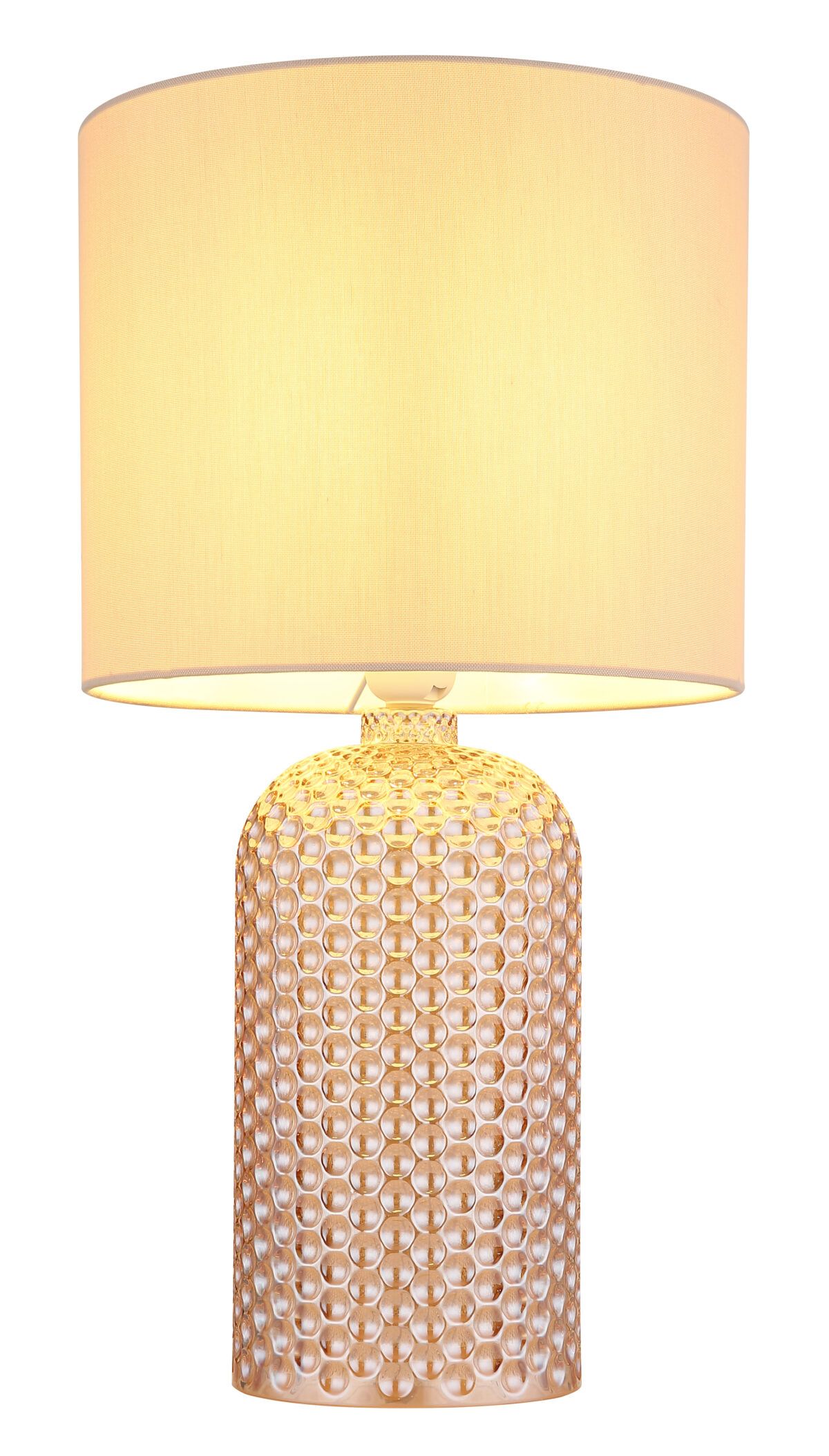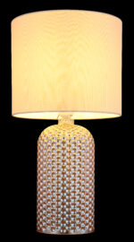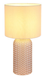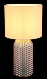 Stolna lampa SOFIA impresionira svojom elegantnom kombinacijom teksturiranog staklenog postolja i cilindričnog platnenog sjenila u bojama šampanjca. Kućište od stakla boje šampanjca daje lampi luksuzan, ali diskretan izgled koji se savršeno uklapa u različite stilove života. Odgovarajuća nijansa tkanine osigurava meku, toplu distribuciju svjetlosti i stvara ugodnu atmosferu u svakoj prostoriji. Sa prečnikom od 265 mm, SOFIA je savršen izbor za dnevne sobe ili spavaće sobe i može se lako uključiti i isključiti zahvaljujući praktičnom preklopnom prekidaču na kablu. Svetiljka je opremljena grlom E27, što omogućava korišćenje različitih sijalica za pojedinačno podešavanje intenziteta svetlosti. Bilo na pomoćnom stolu, komodi ili noćnom ormariću – stolna lampa SOFIA postavlja elegantne akcente i stvara atmosferski ambijent.